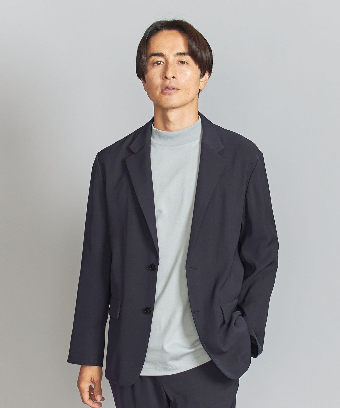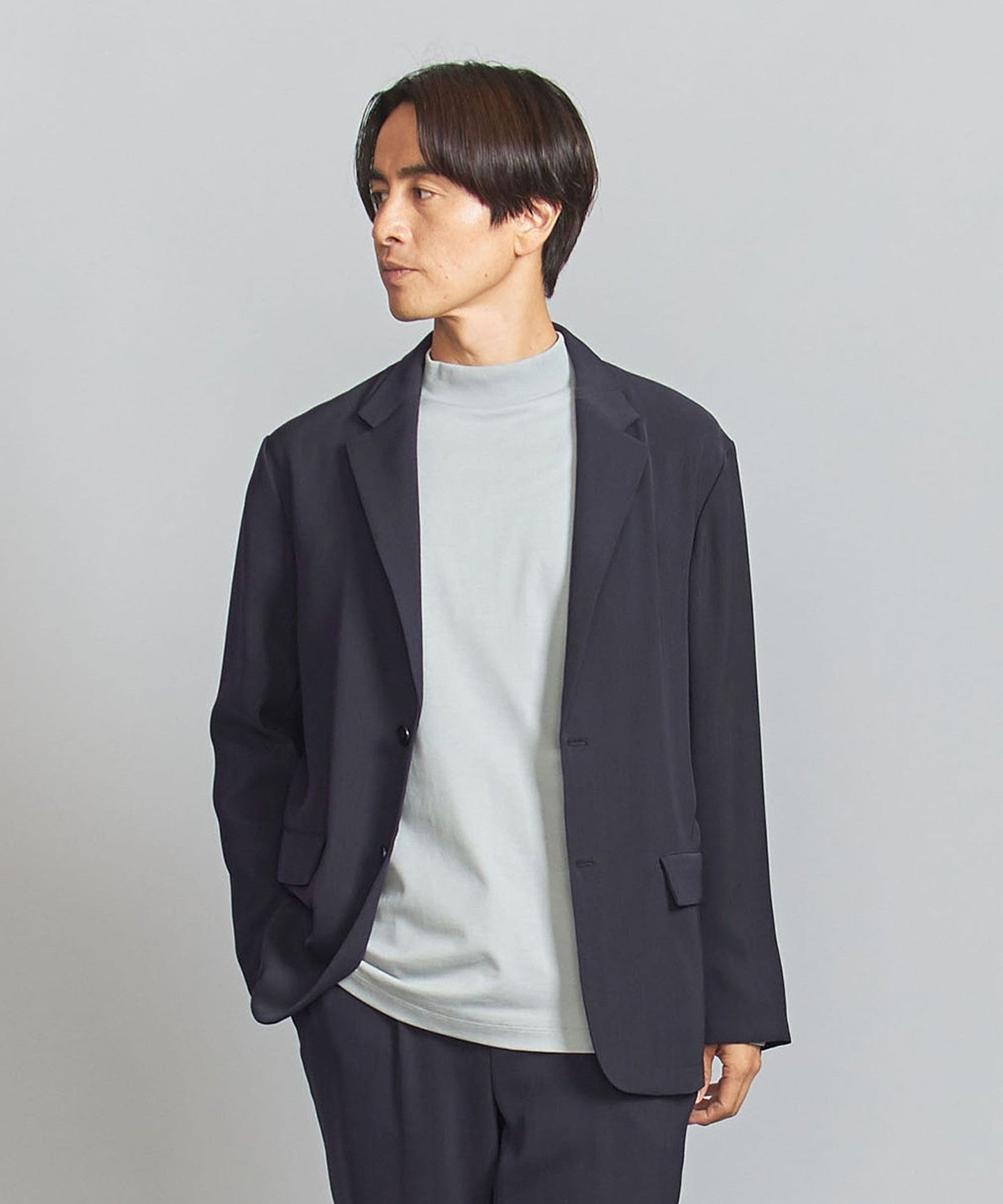 We recommend pairing it with tapered pants made from the same fabric for a set-up look.