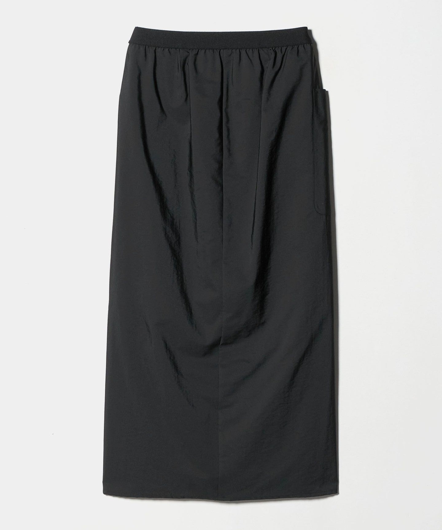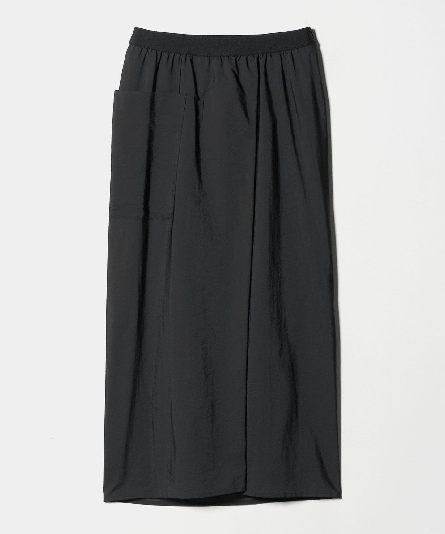 ラップ風のフロントタックが立体的な美しいフォルムを作るタイトスカート.