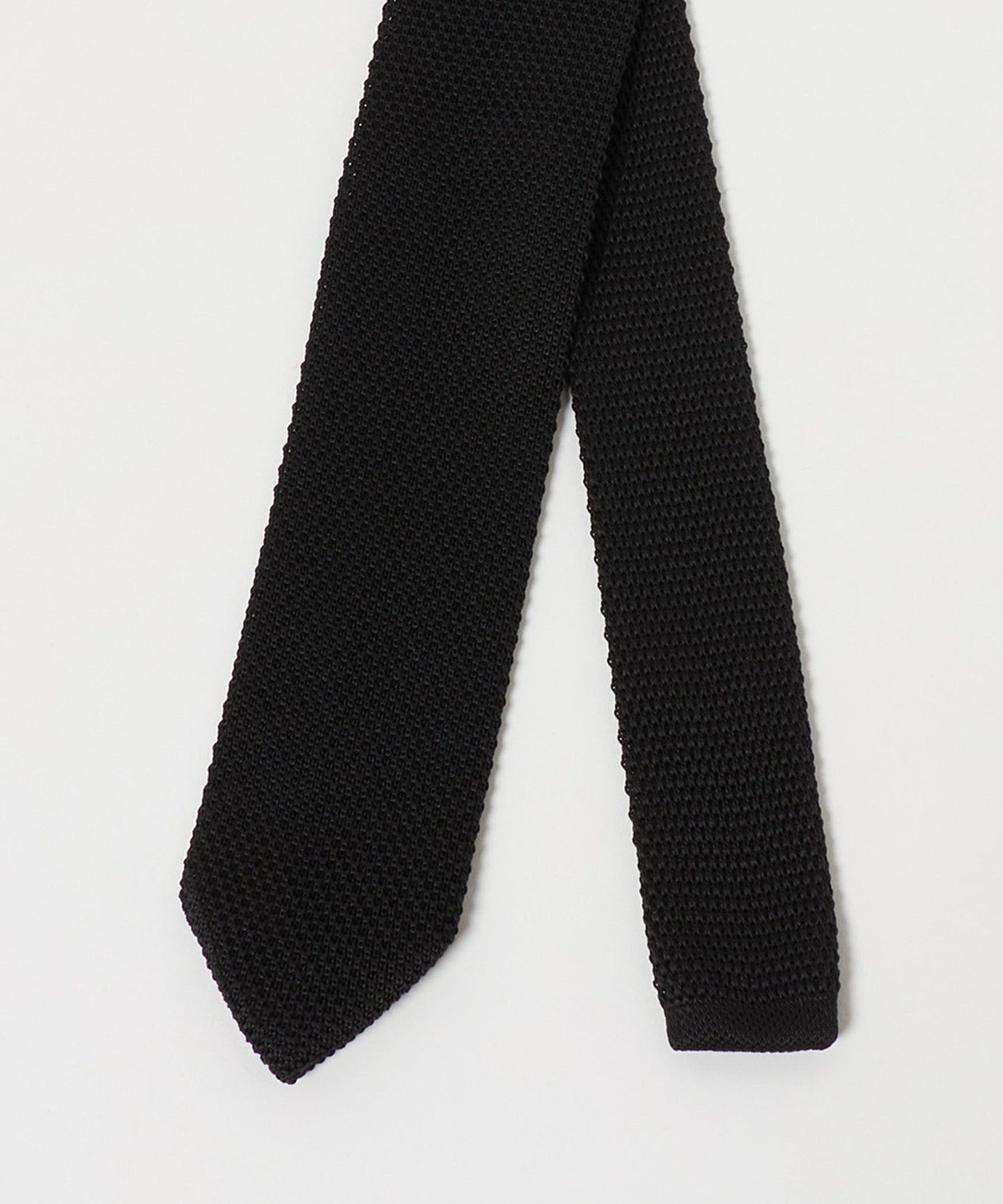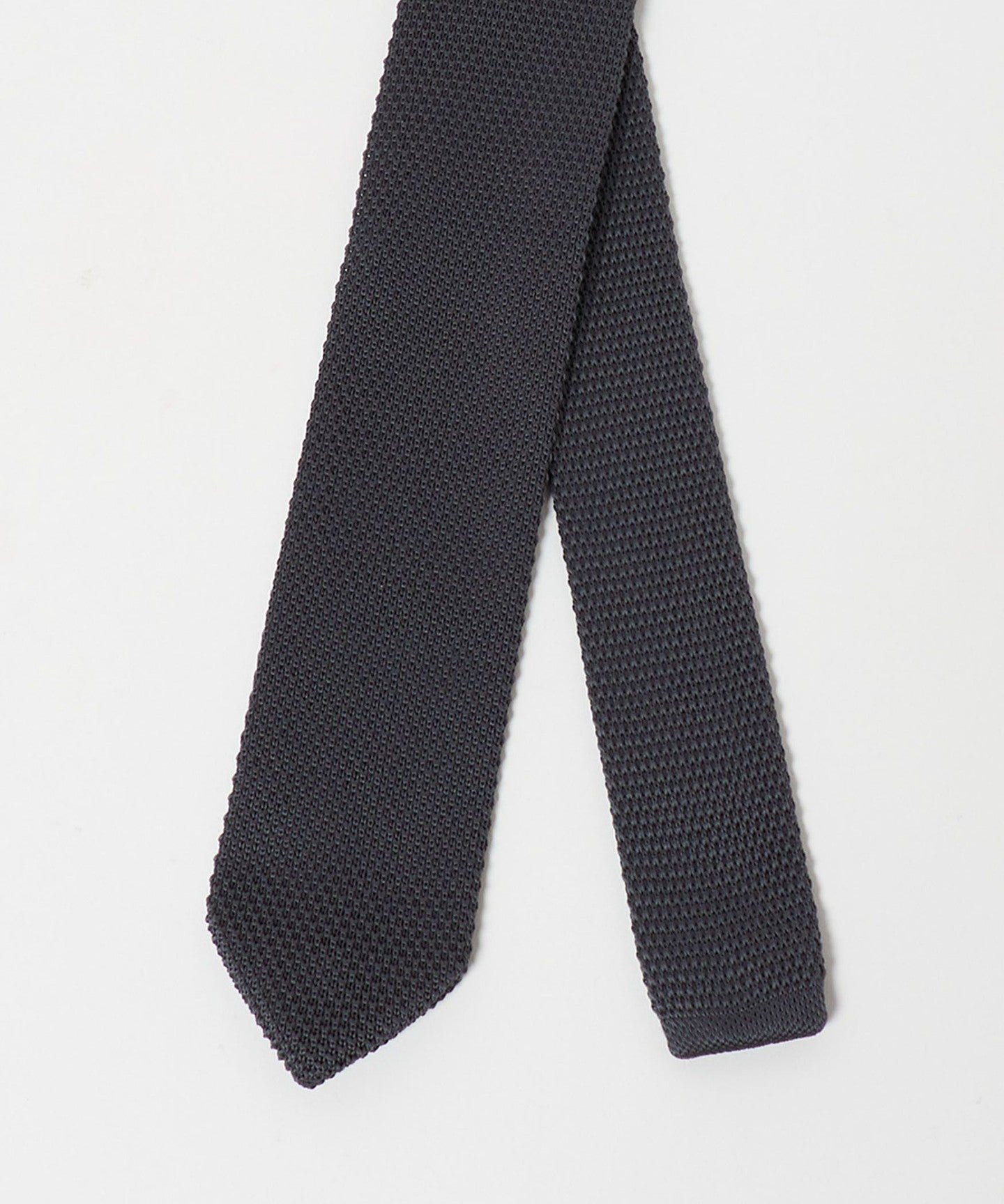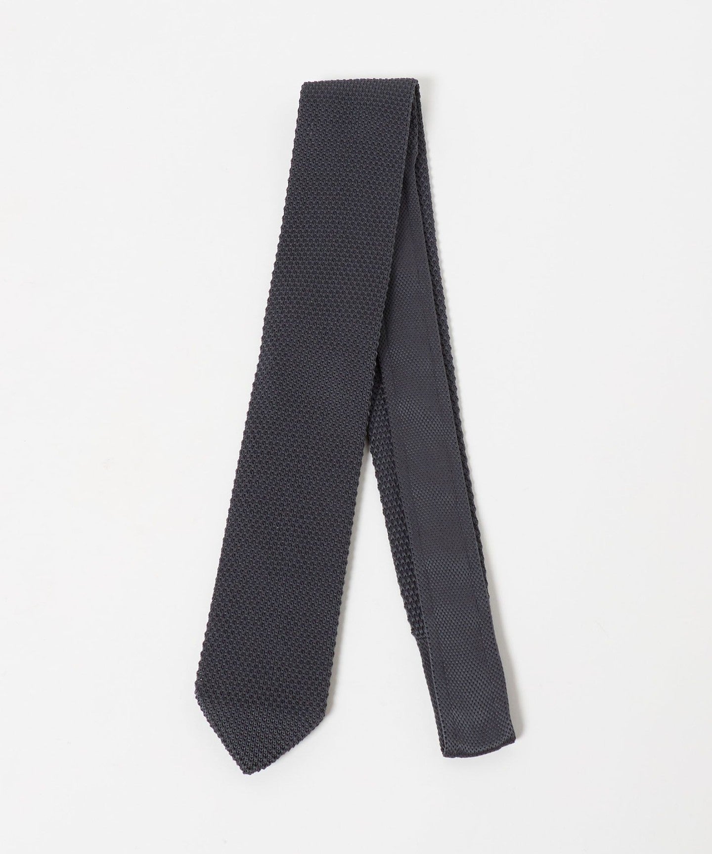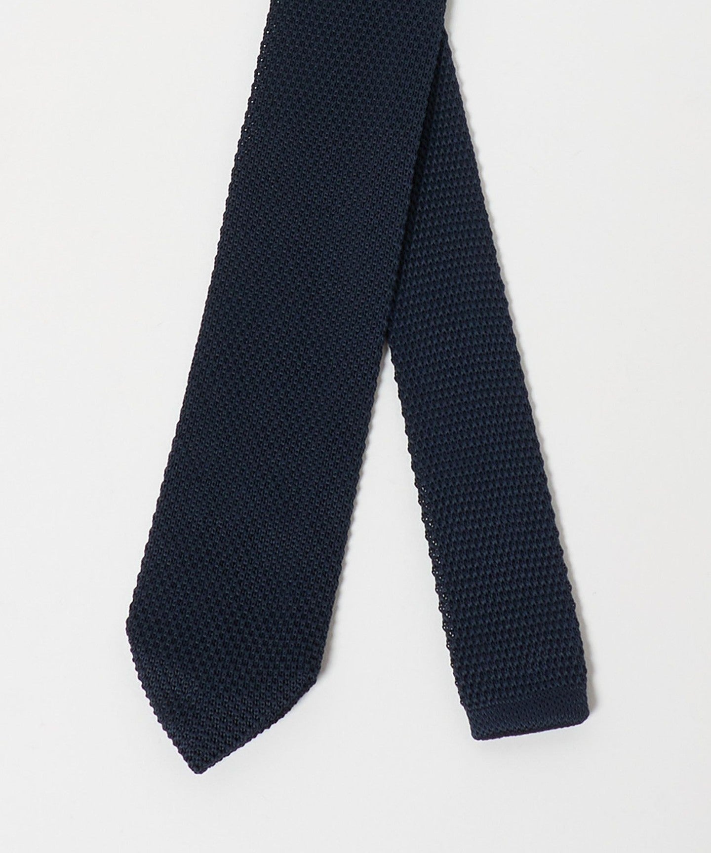 ・Eine Strickkrawatte mit einer scharfen Spitze, die ihr ein gepflegtes Aussehen verleiht