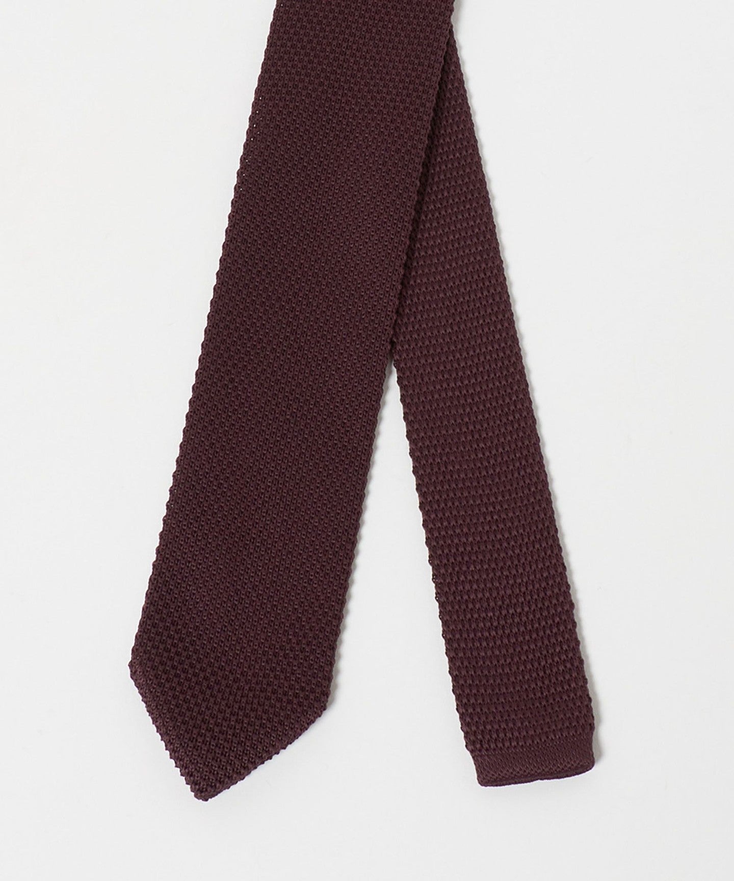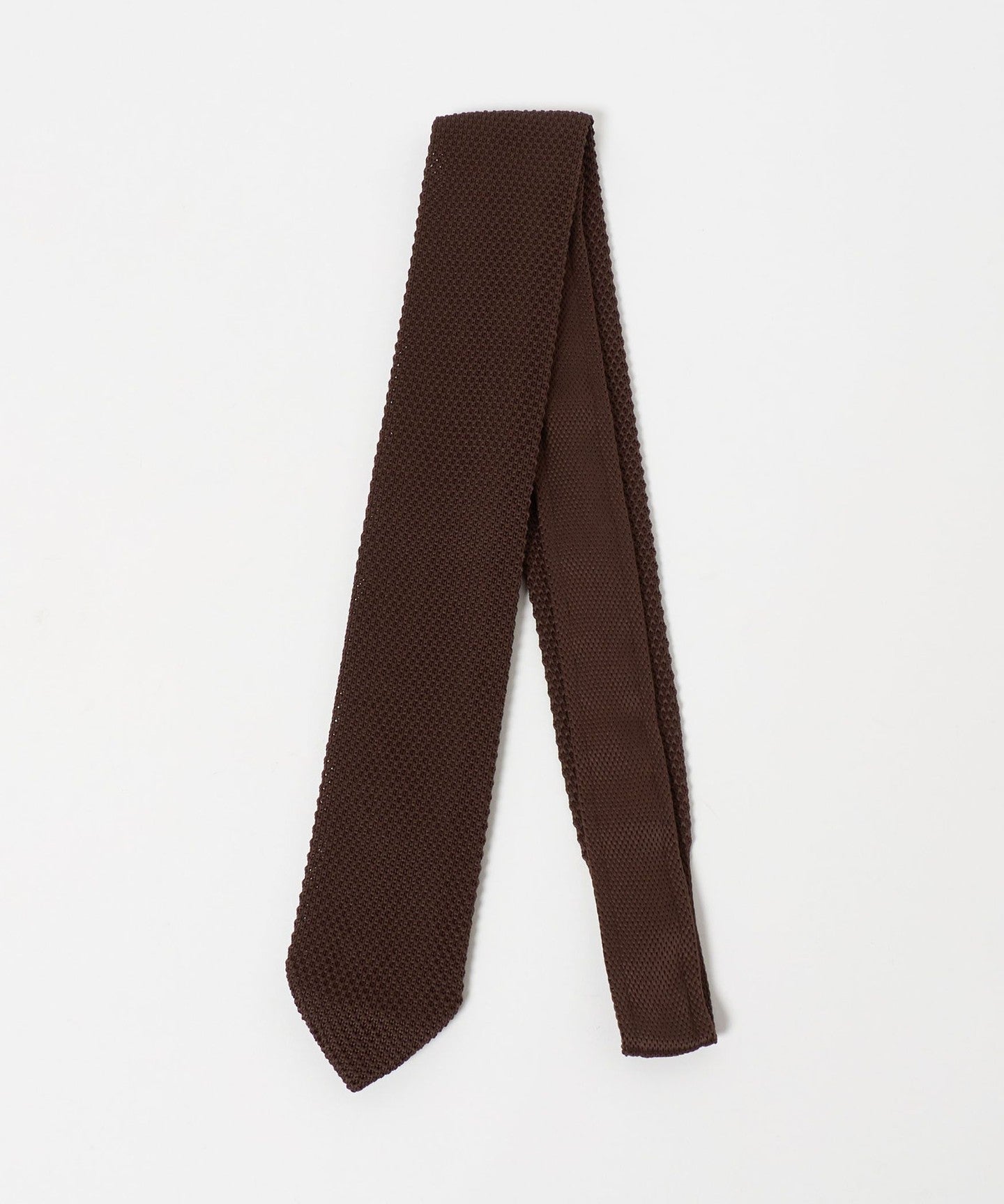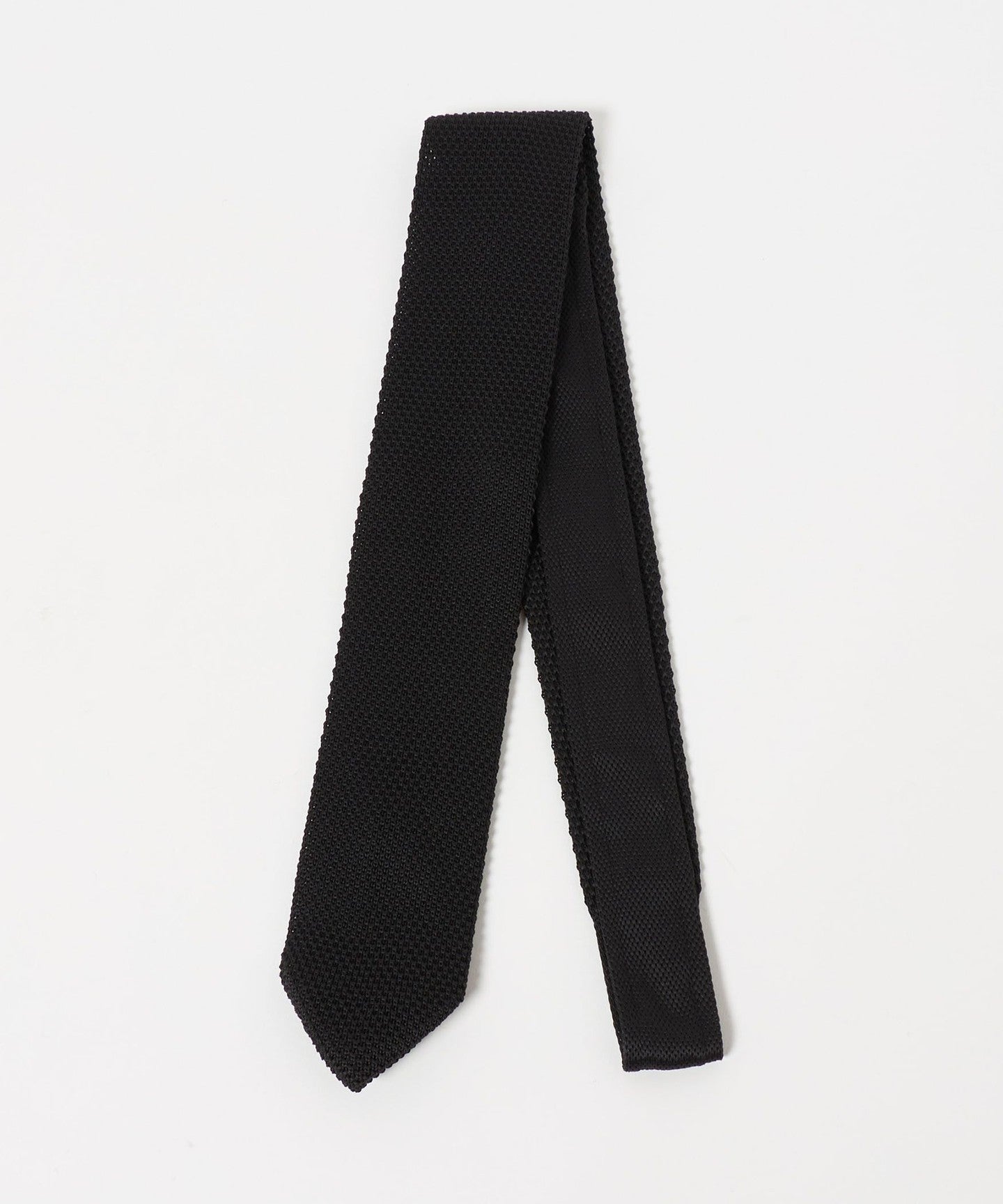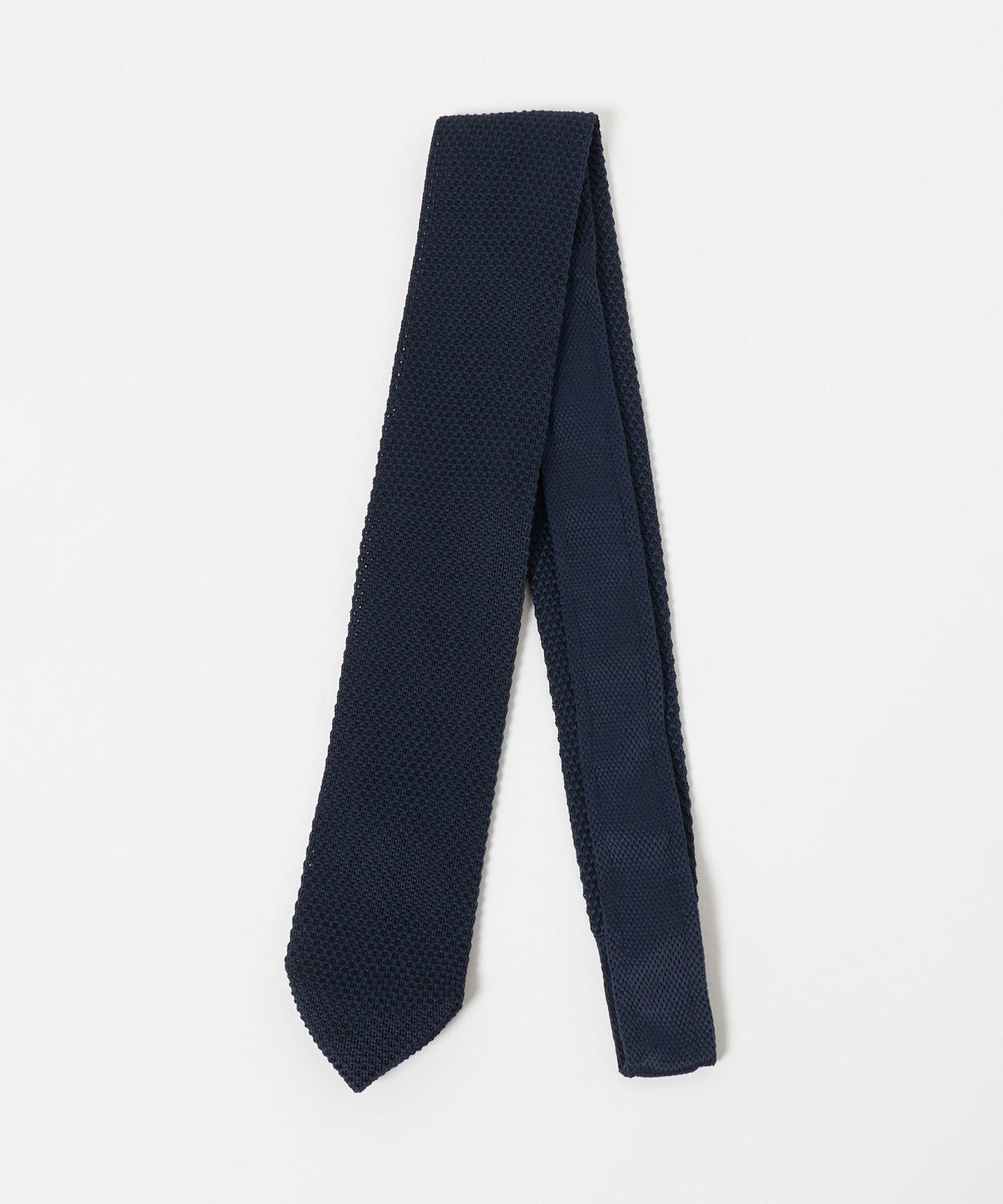 ・Eine Strickkrawatte mit einer scharfen Spitze, die ihr ein gepflegtes Aussehen verleiht