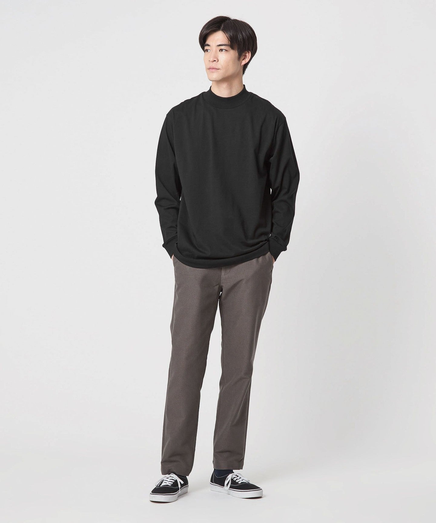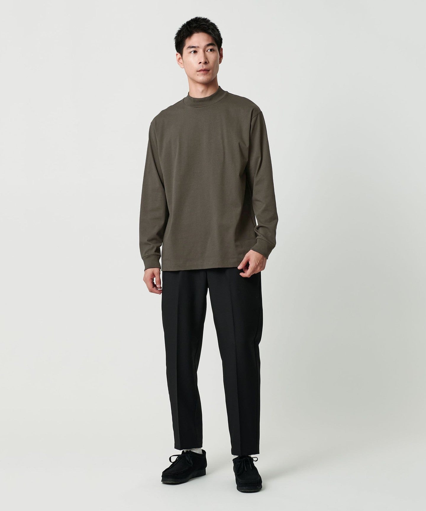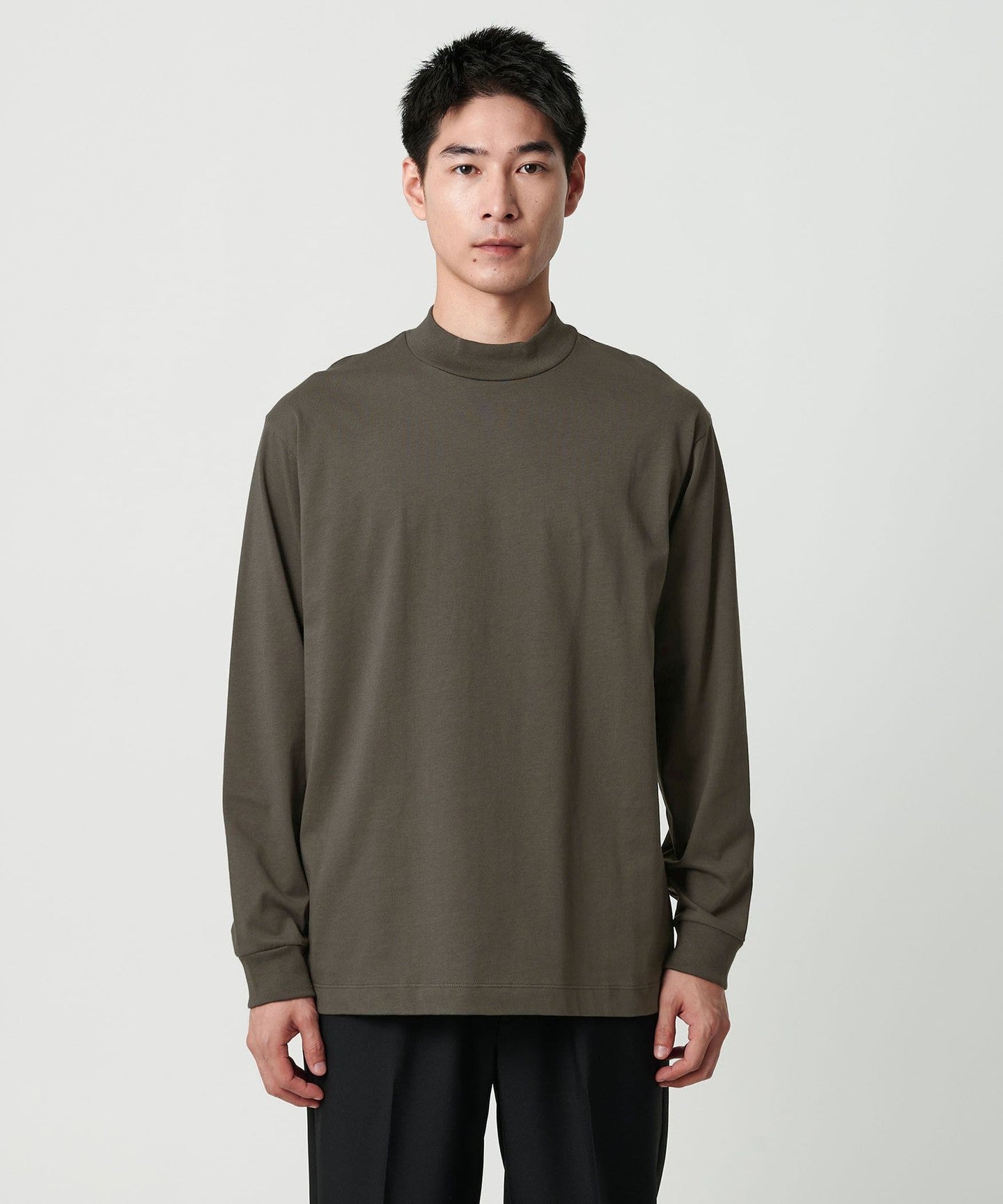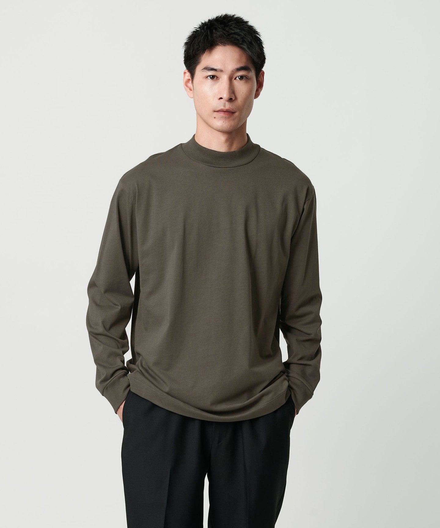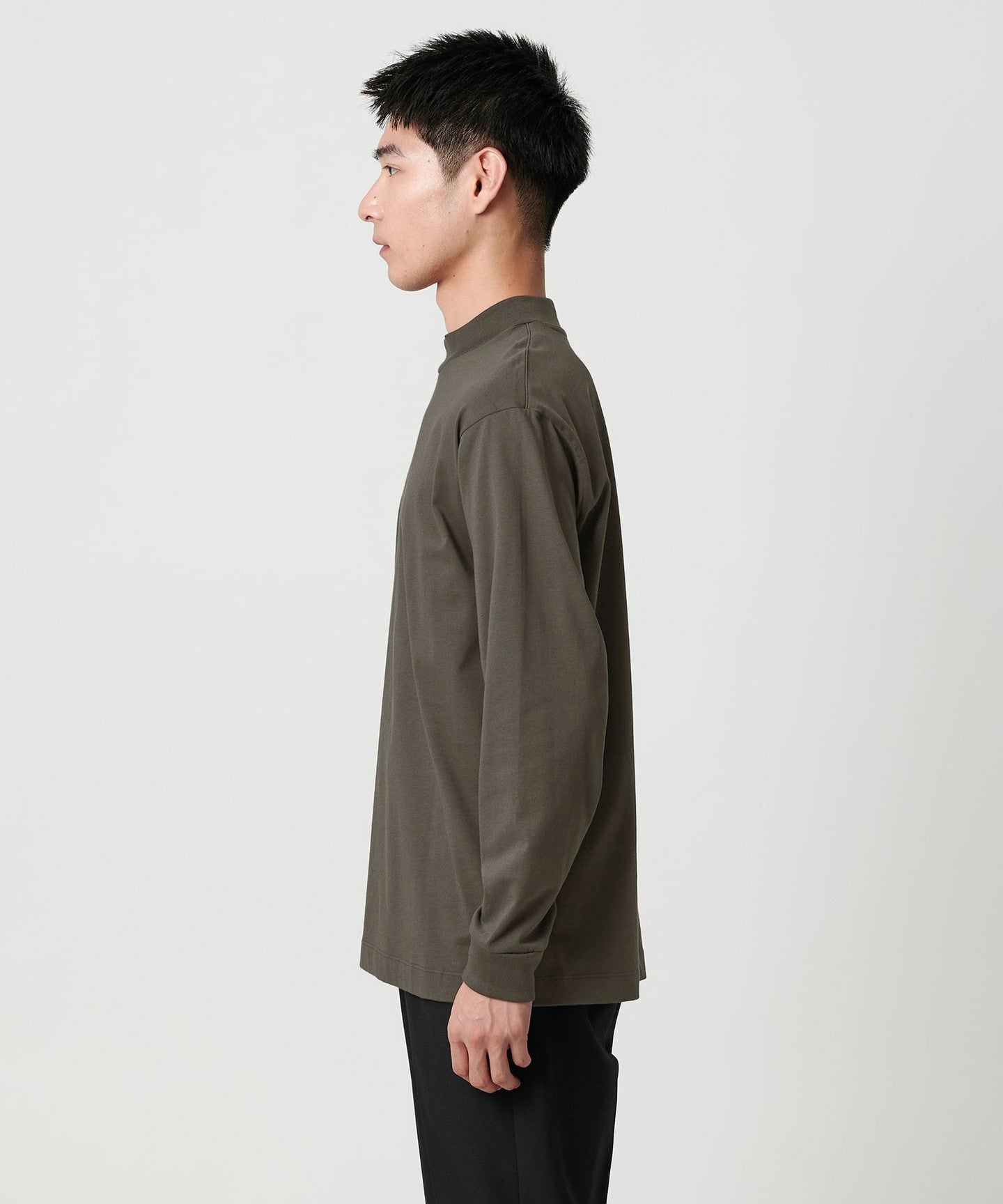 LONG FIBER COTTON Clear Mock Neck Long Sleeve T-Shirt