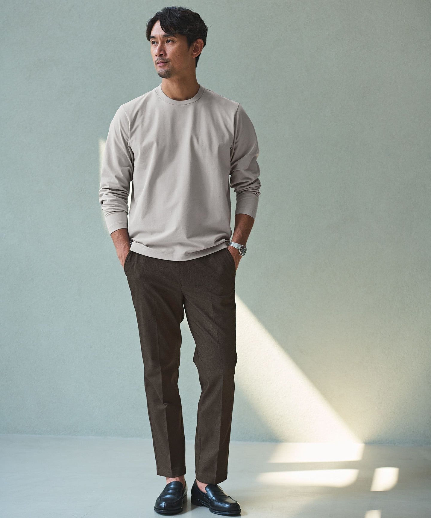 Es passt gut zu schmalen Chinos und bequemen Hosen.