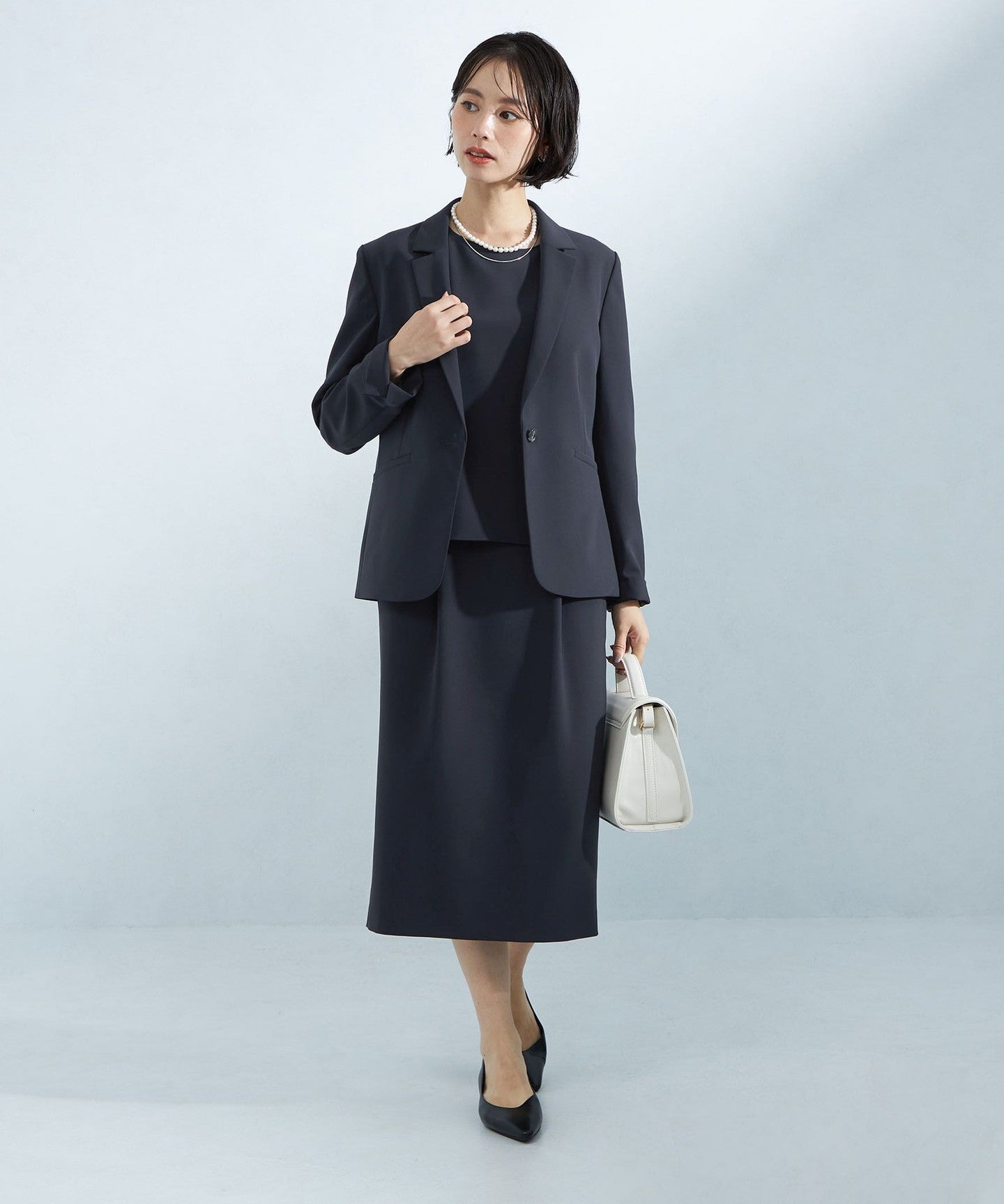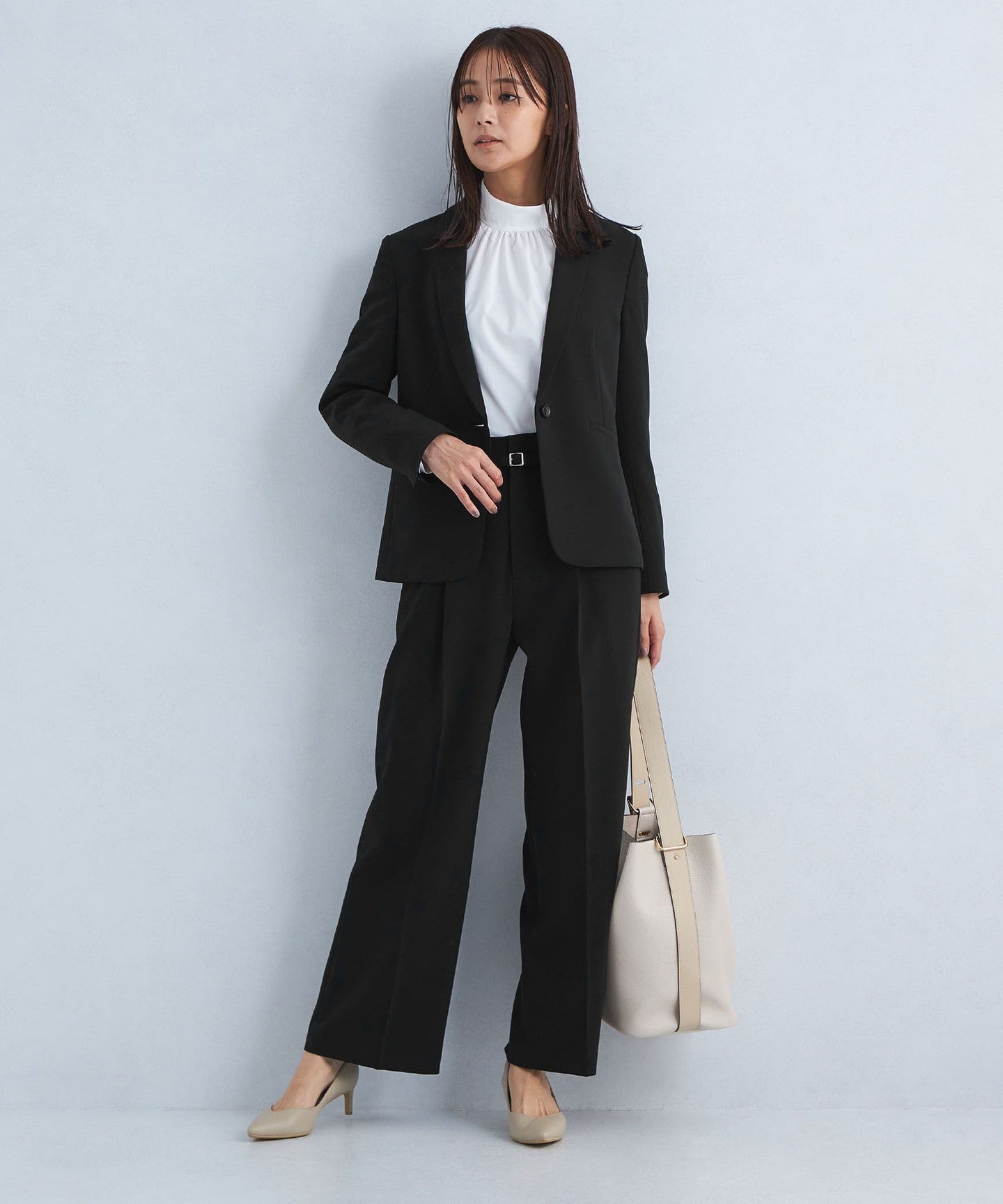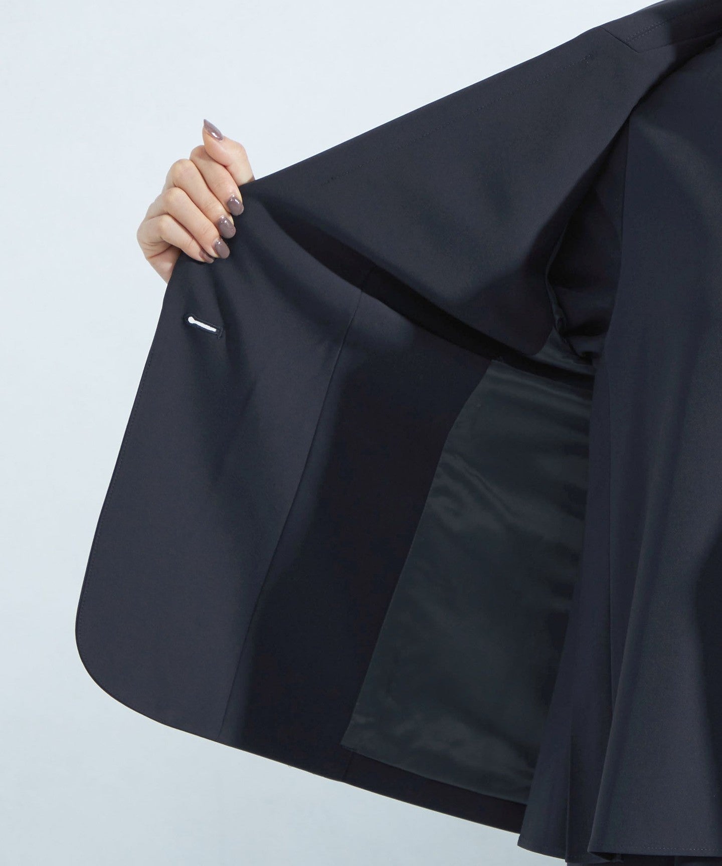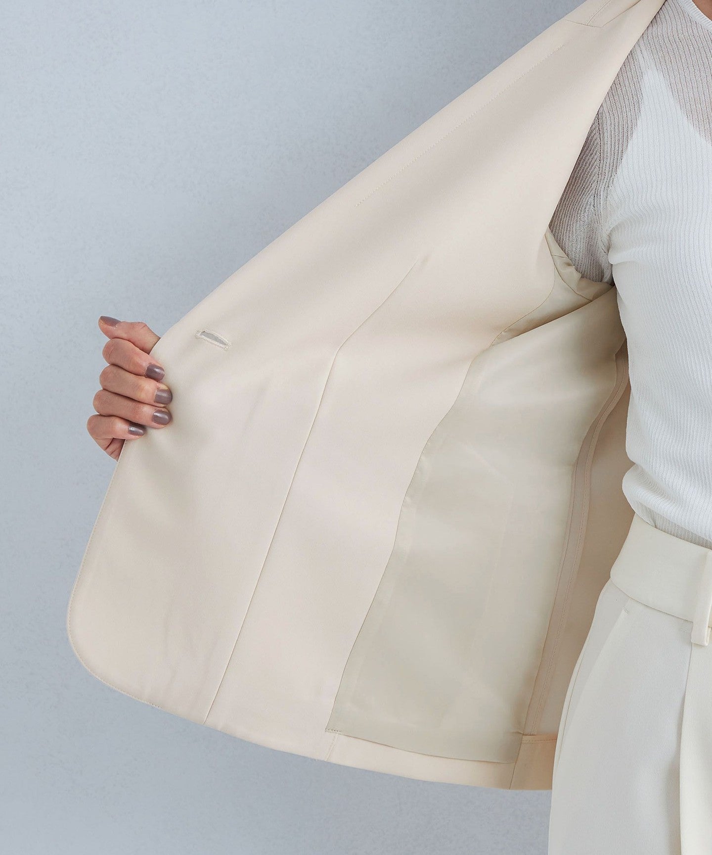 The lapels are designed to be slightly narrow so that the jacket gives a soft impression when worn.