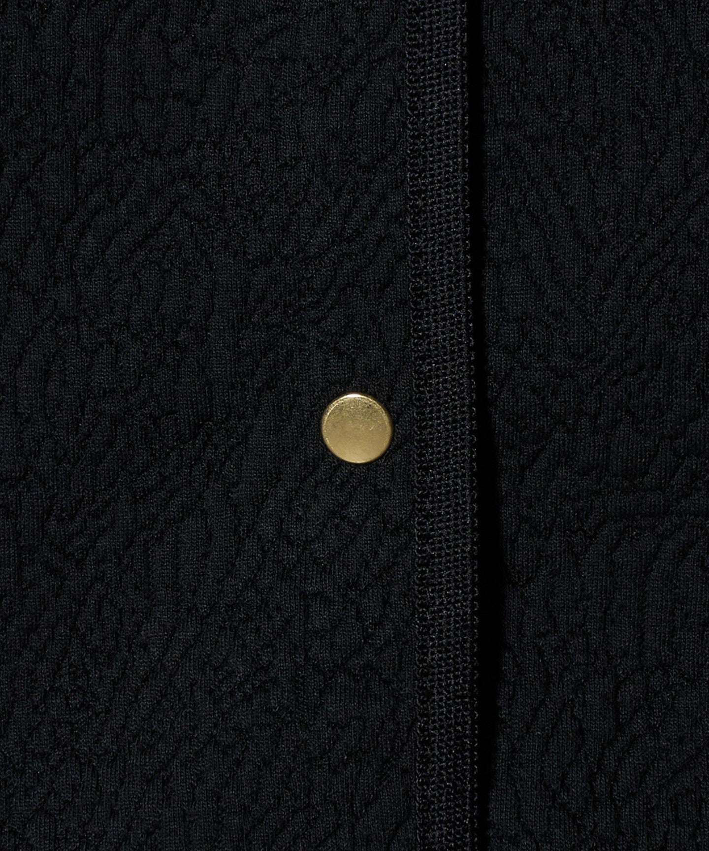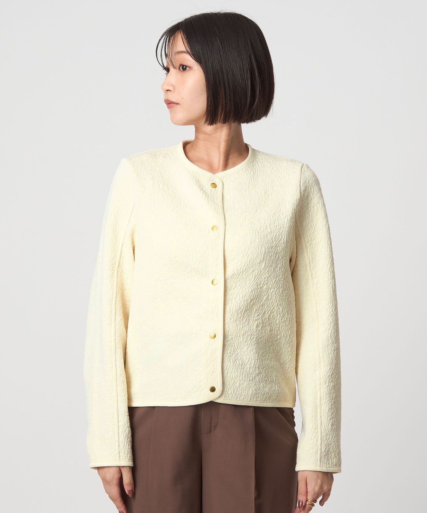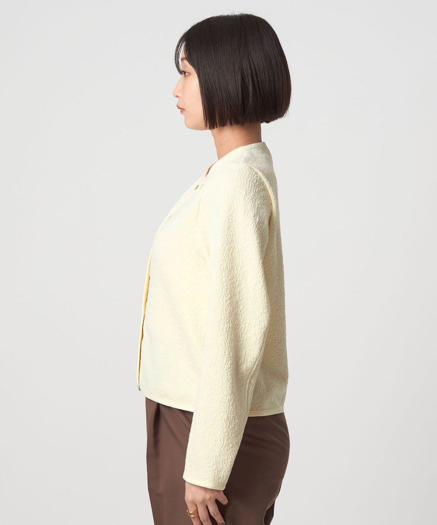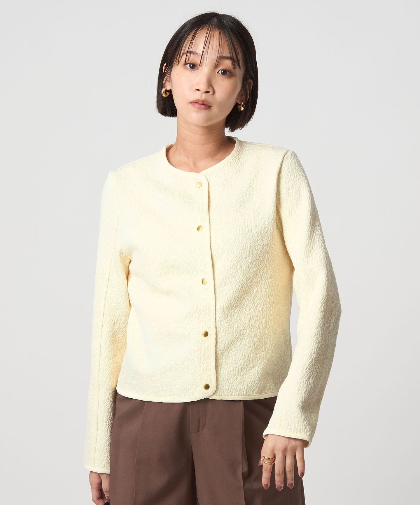 Ein Jacquard-Cut-and-Sew-Cardigan, der lässig wie eine Jacke getragen werden kann.