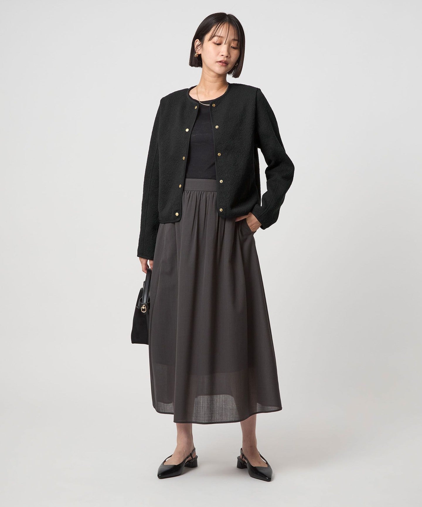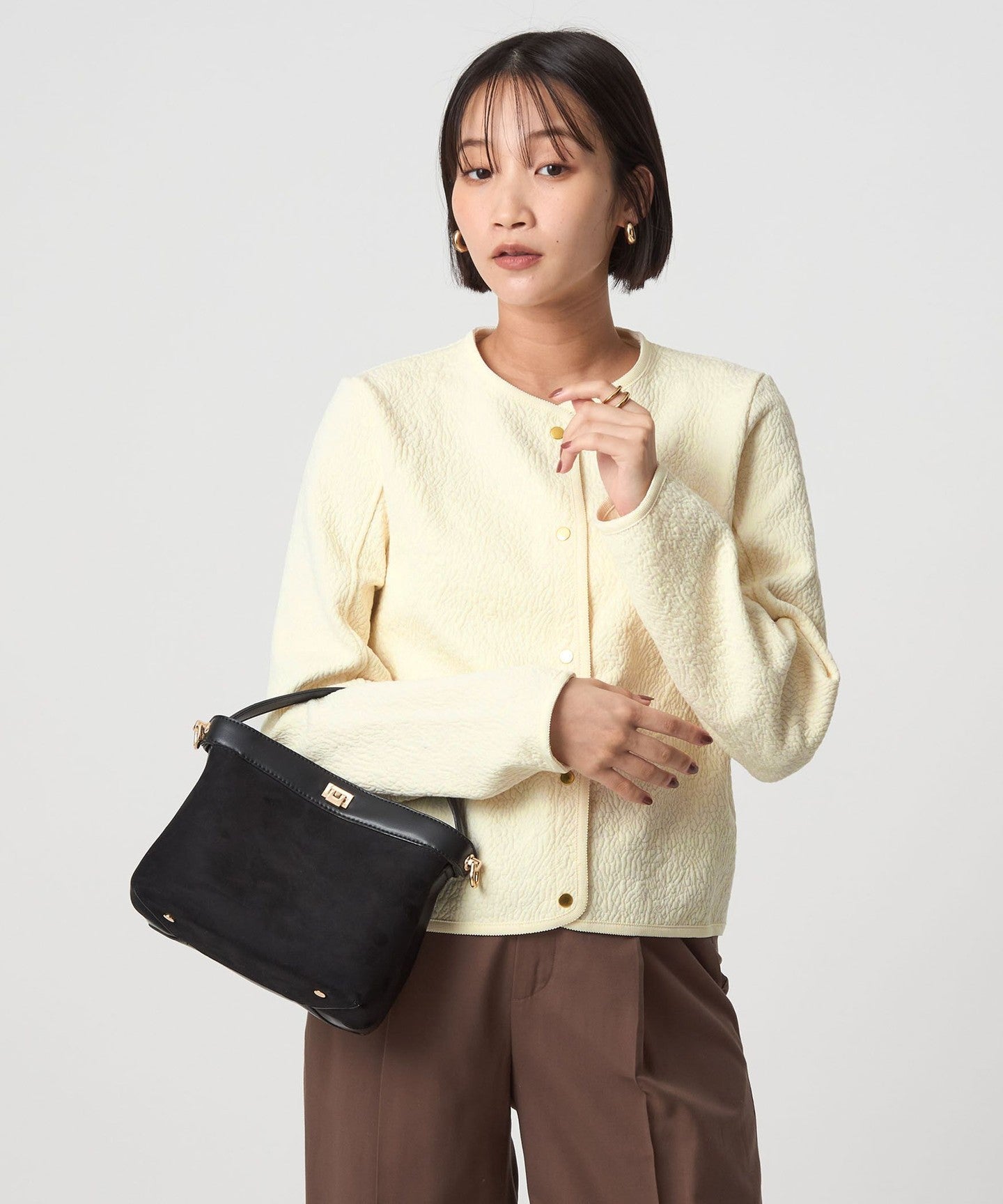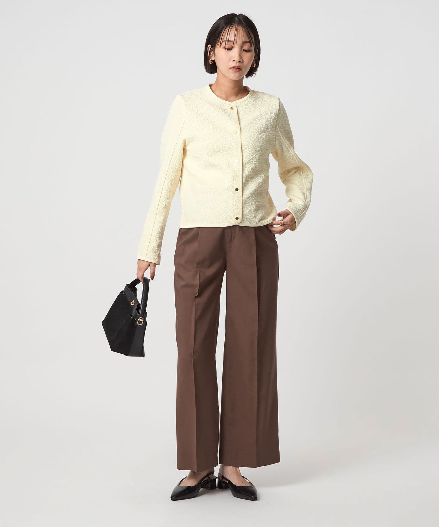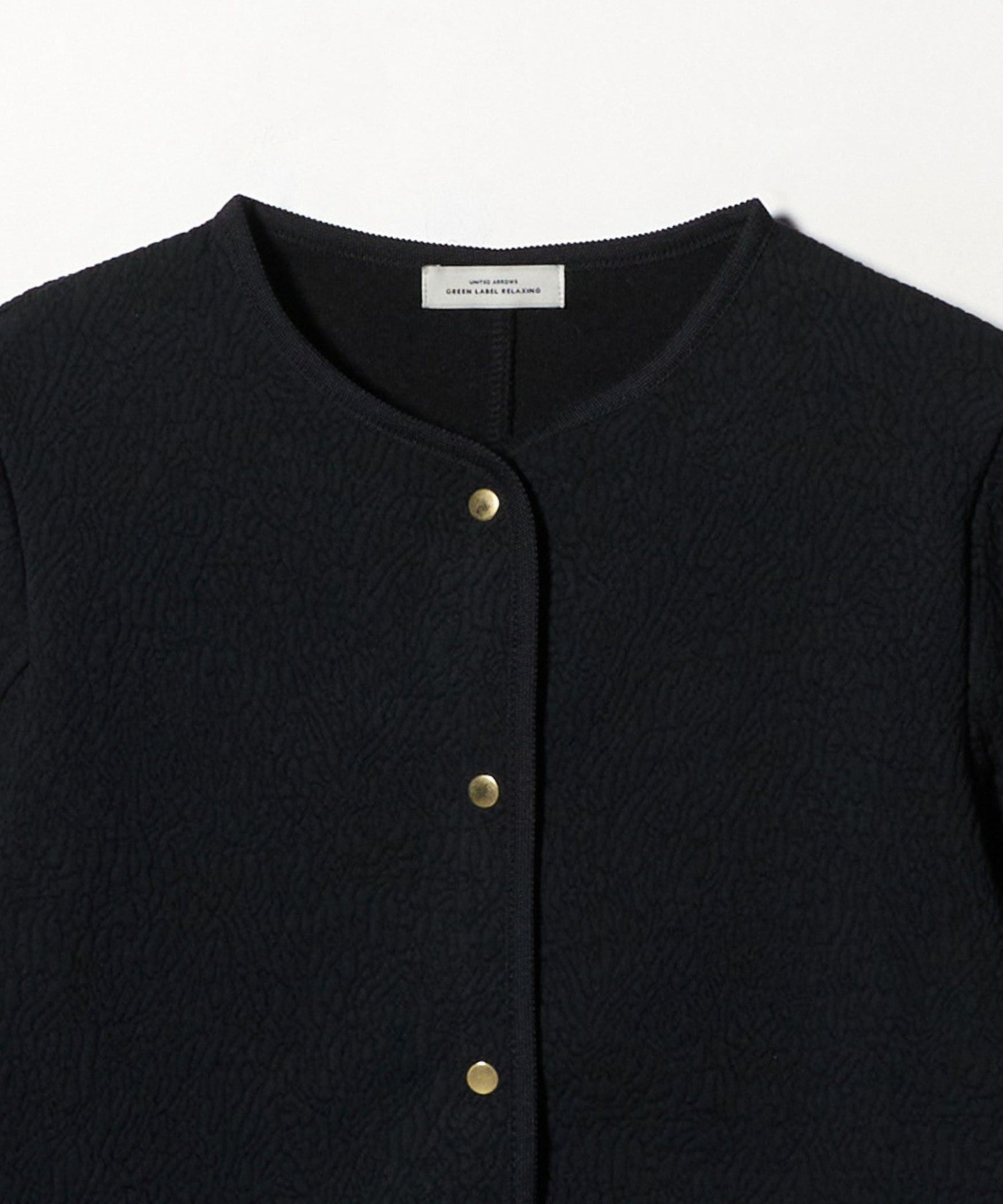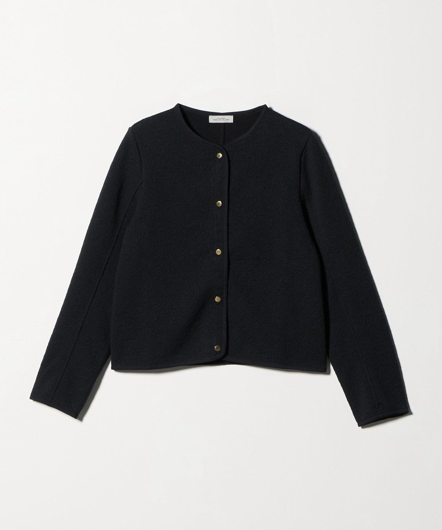 Ein Jacquard-Cut-and-Sew-Cardigan, der lässig wie eine Jacke getragen werden kann.