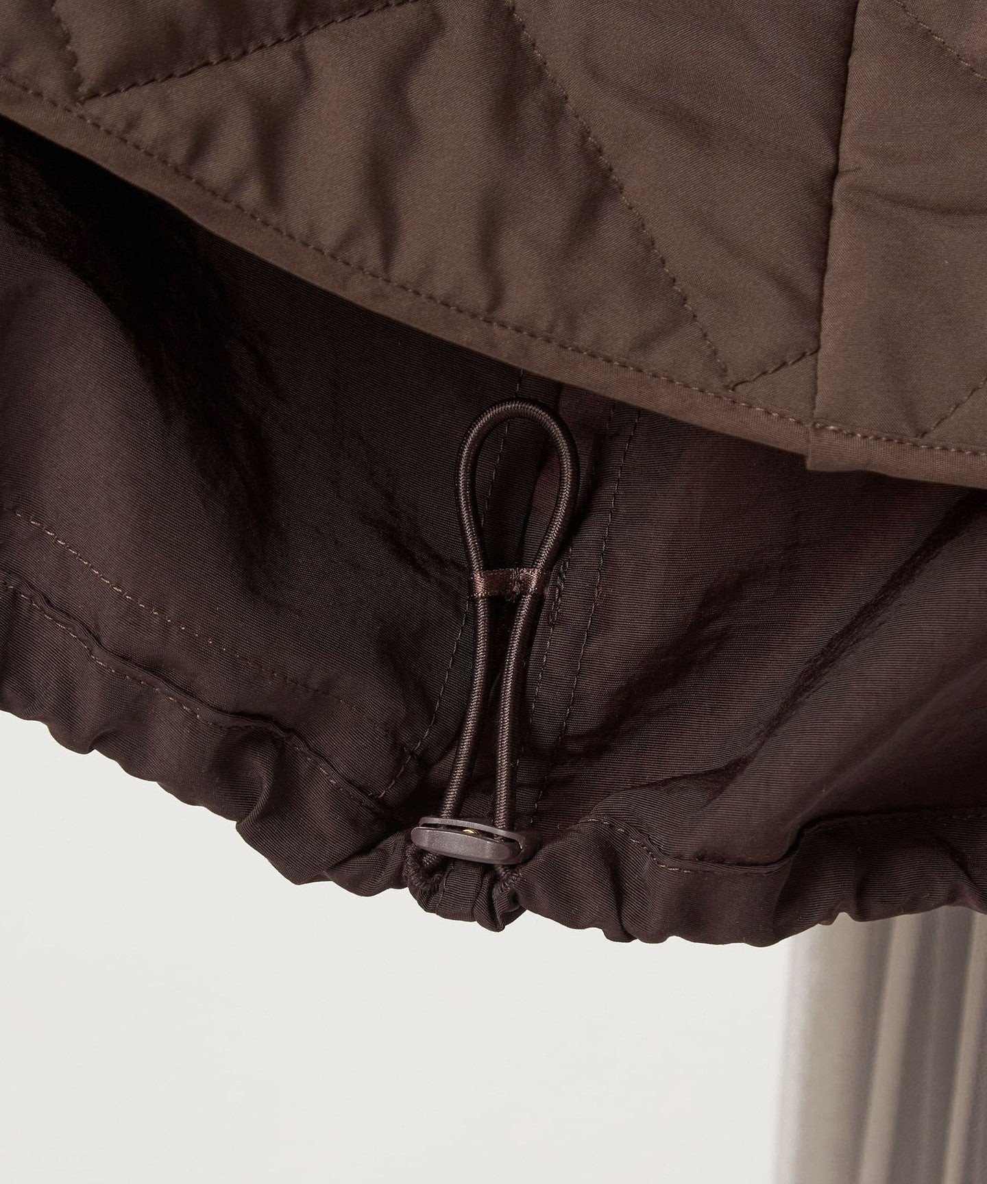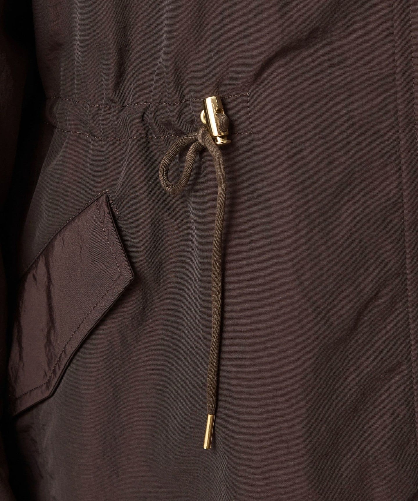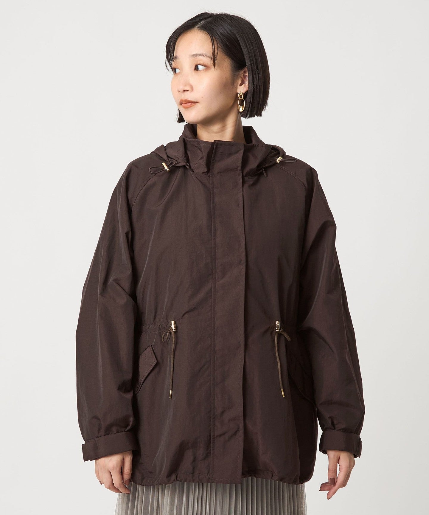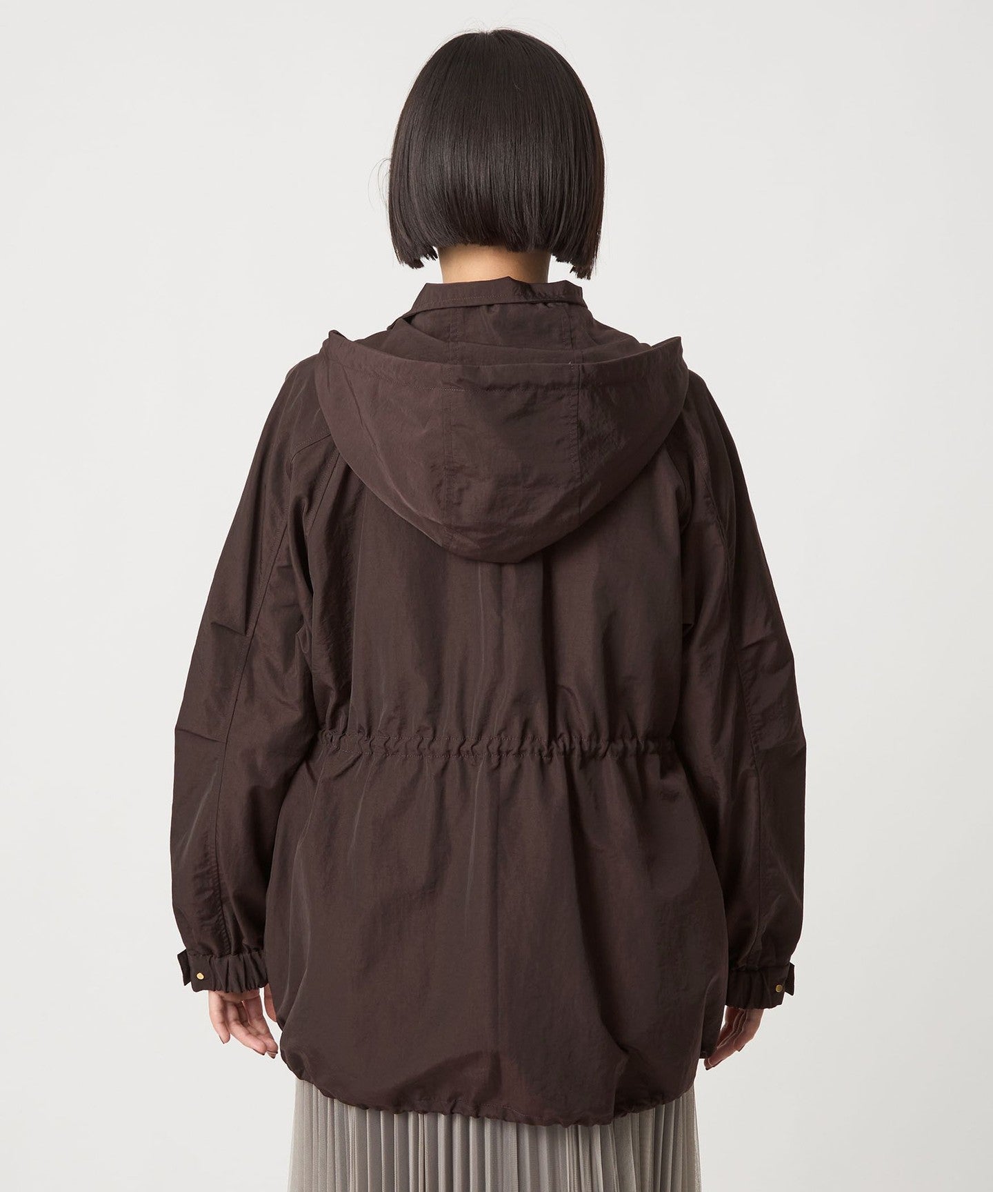 Wir empfehlen, die Kordeln an der Taille und am Saum enger zu ziehen, um eine definierte Silhouette zu schaffen.