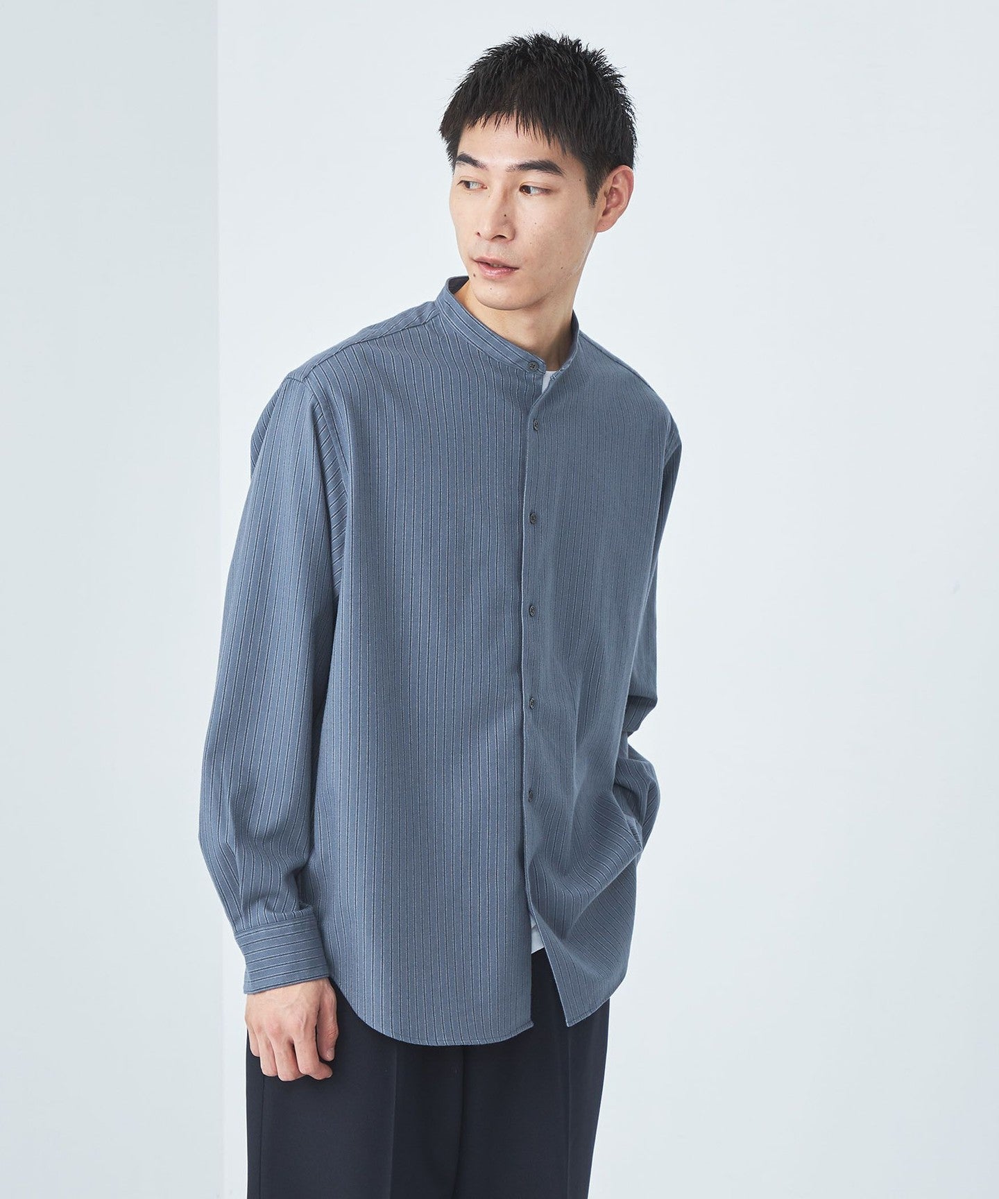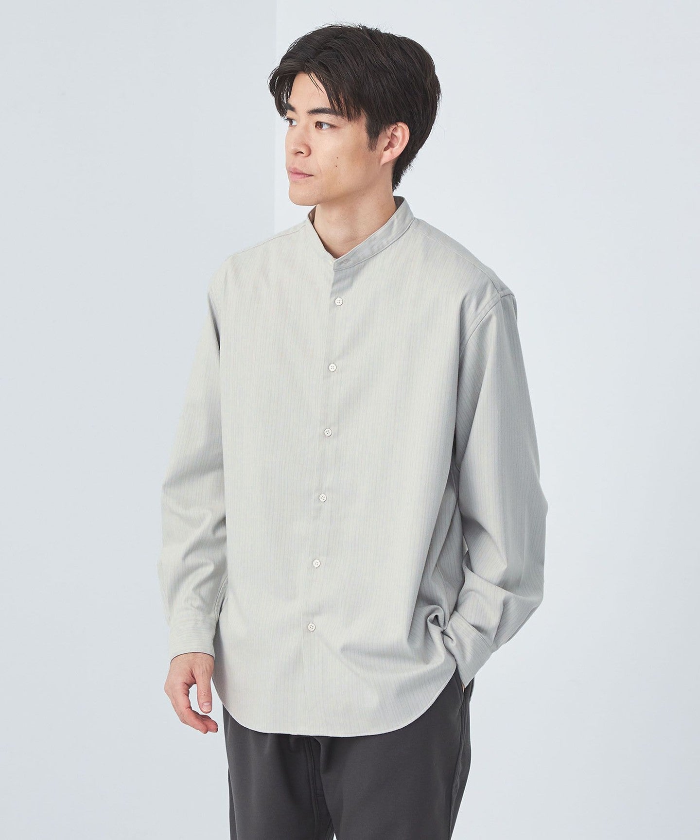 green label relaxingTR Furano Stripe Just Loose Band Collar Shirt - Stretch and Wrinkle-