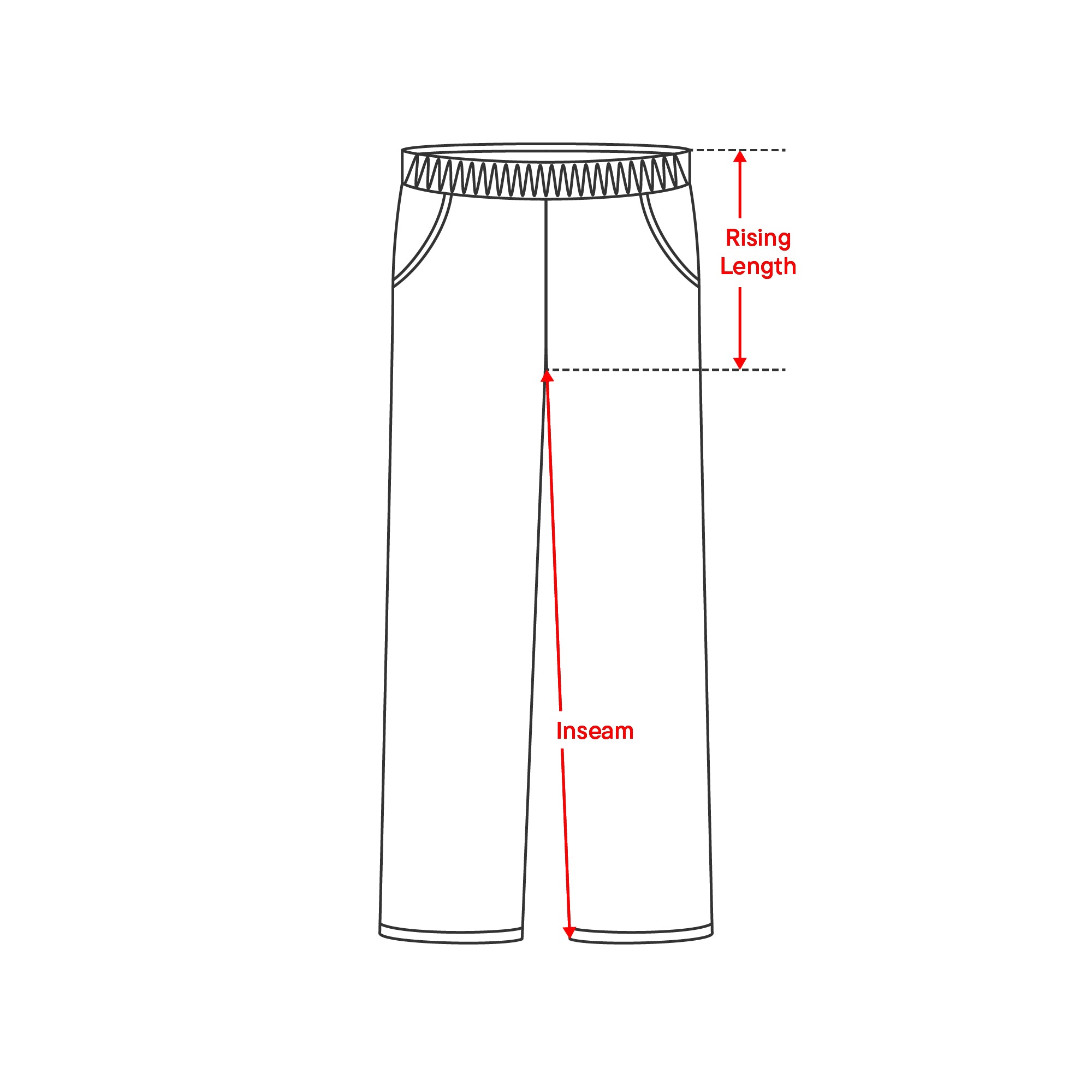 - All clothing is laid flat on a surface, and outer dimensions are measured.