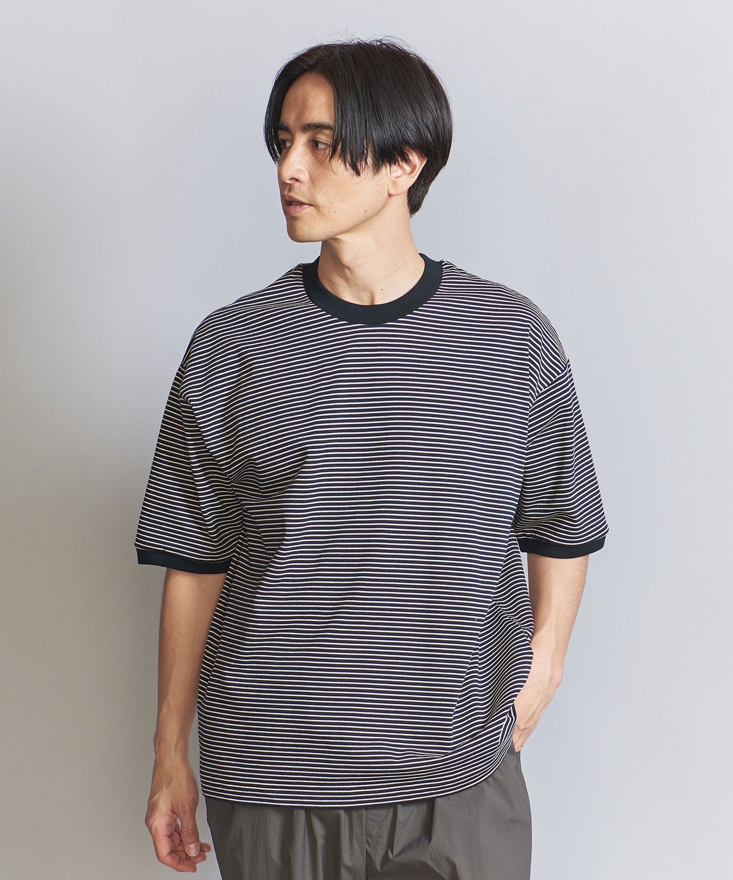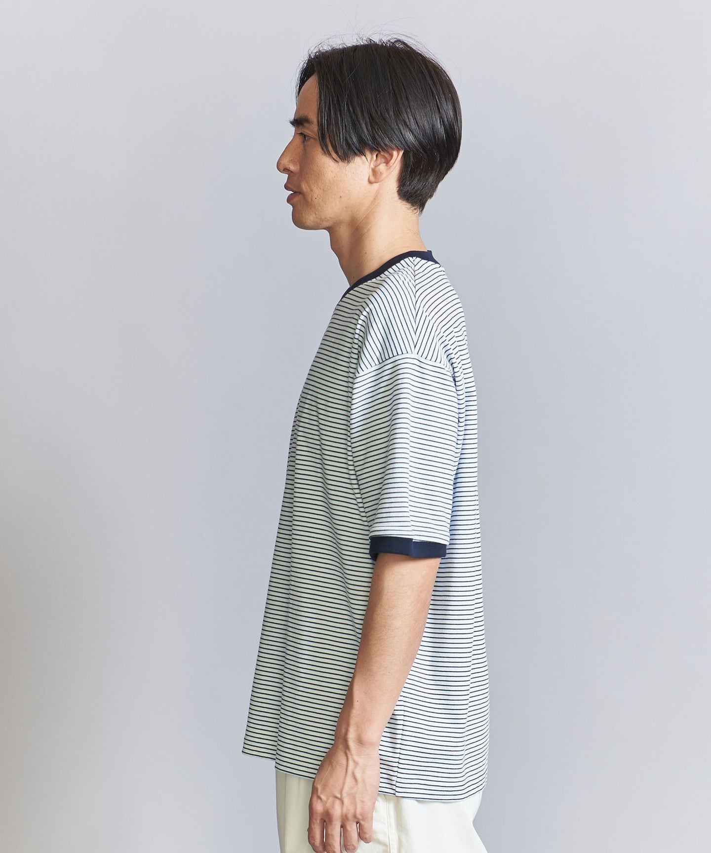 This striped ringer T-shirt combines just the right amount of casualness and elegance to complement sophisticated adult casual styles.