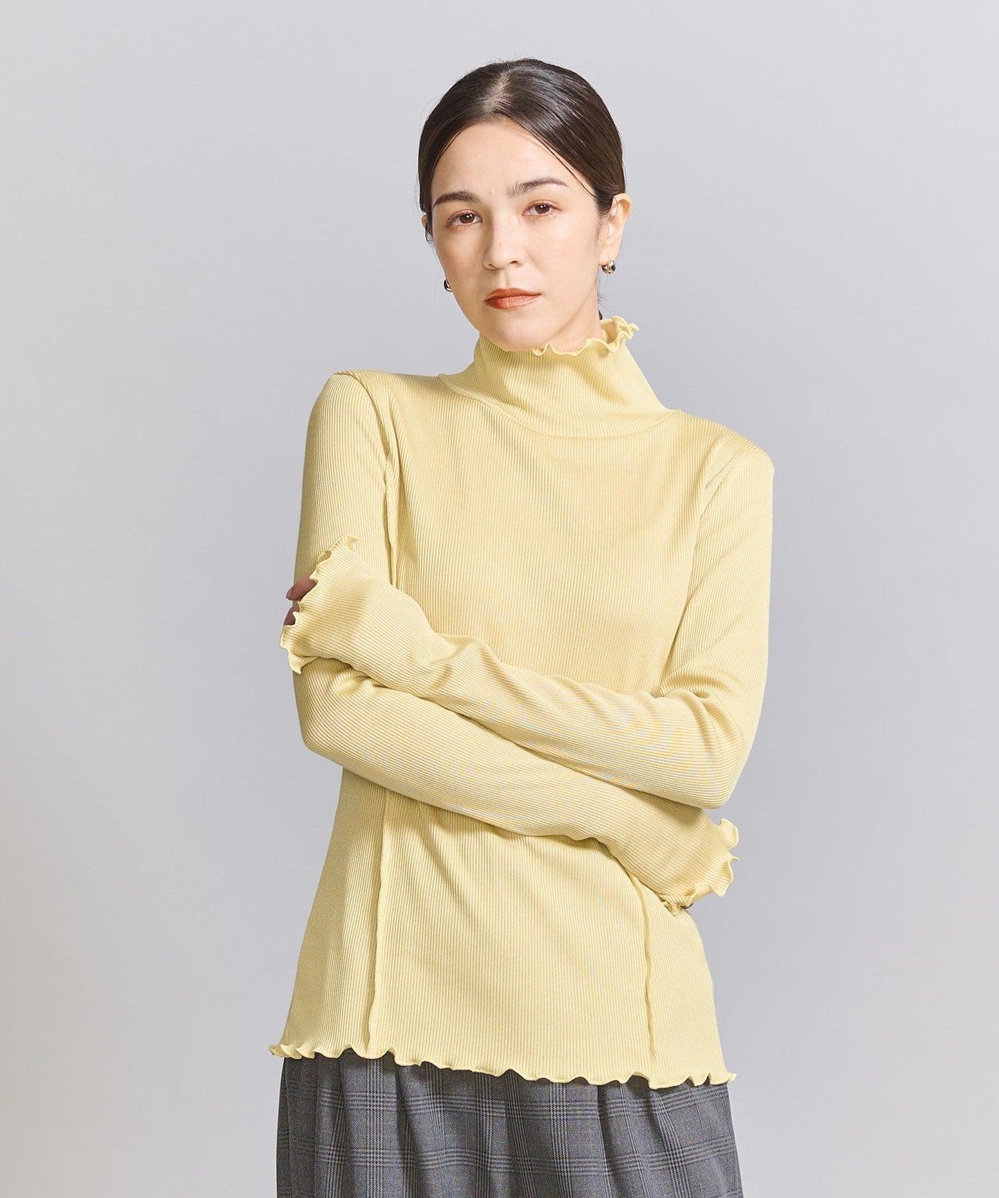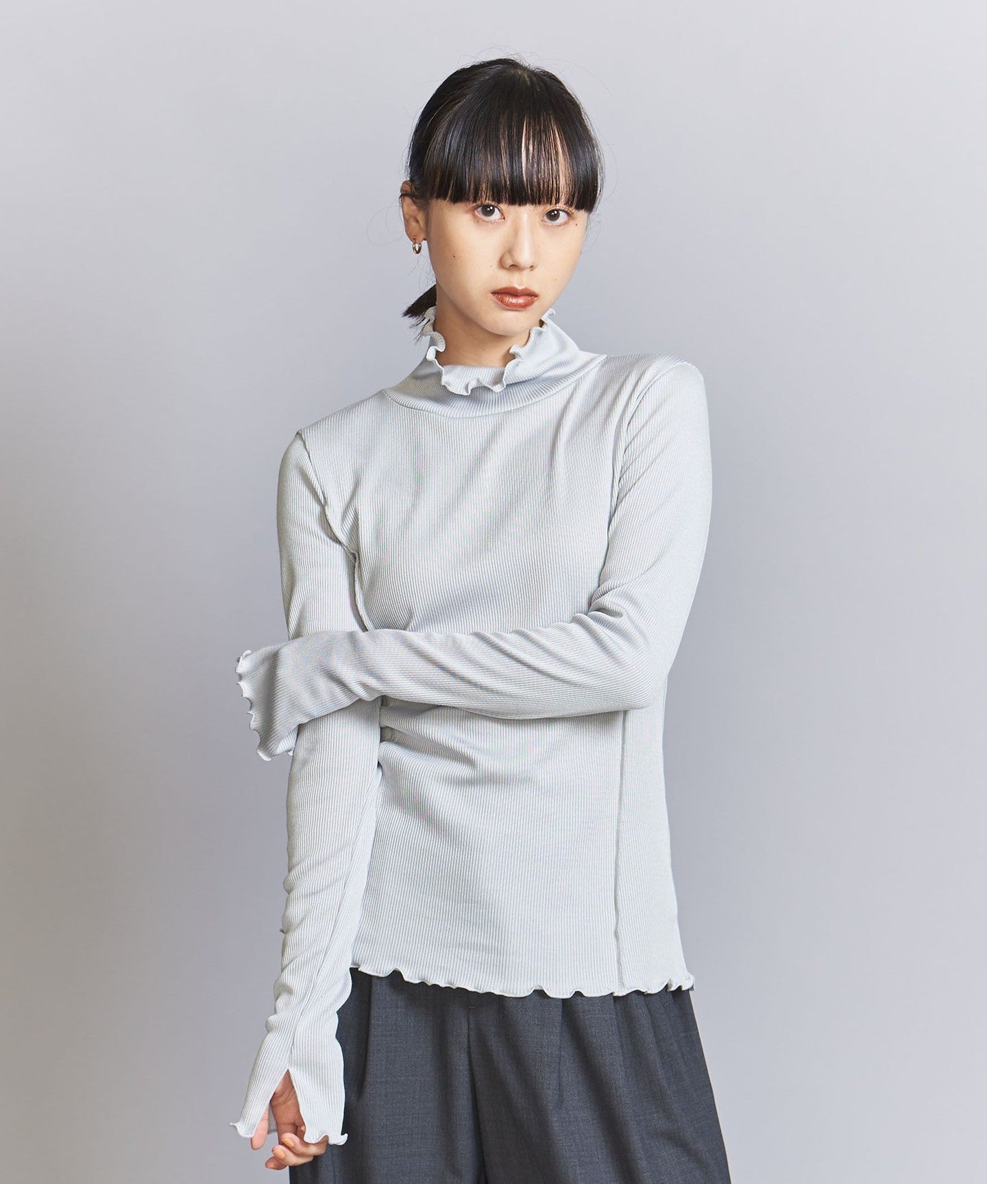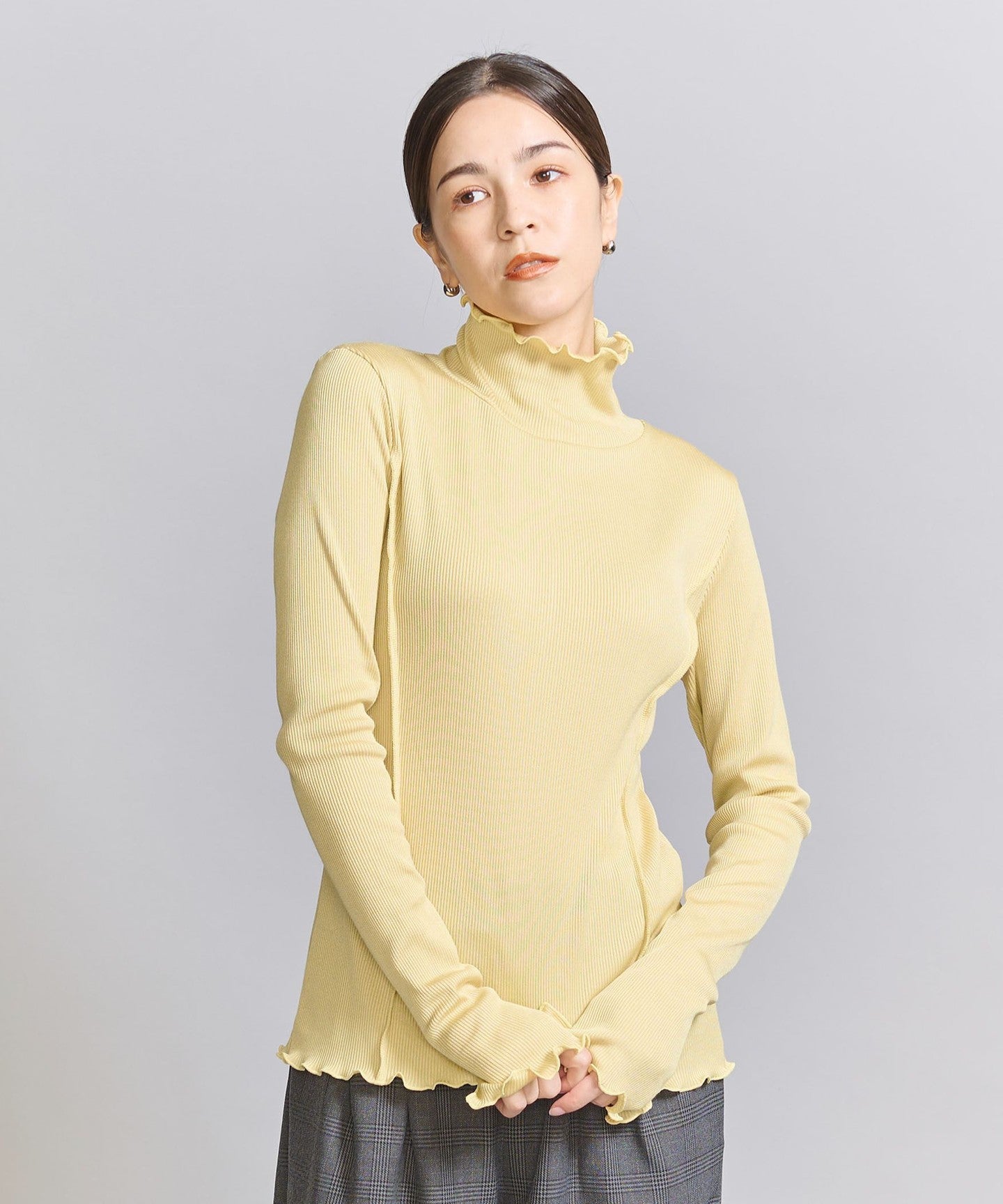 The turtleneck and slightly longer sleeves make it a striking inner layer for autumn and winter.