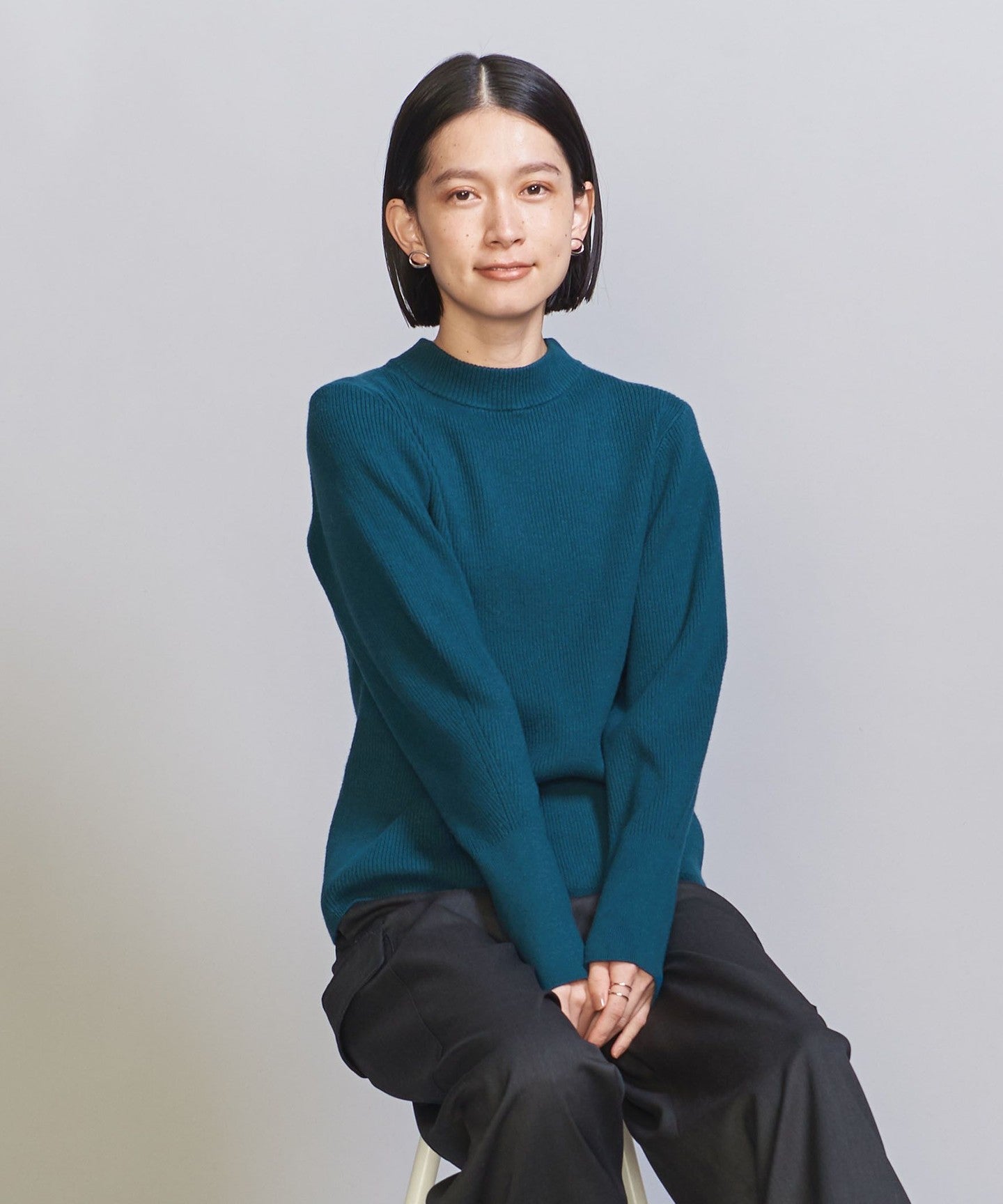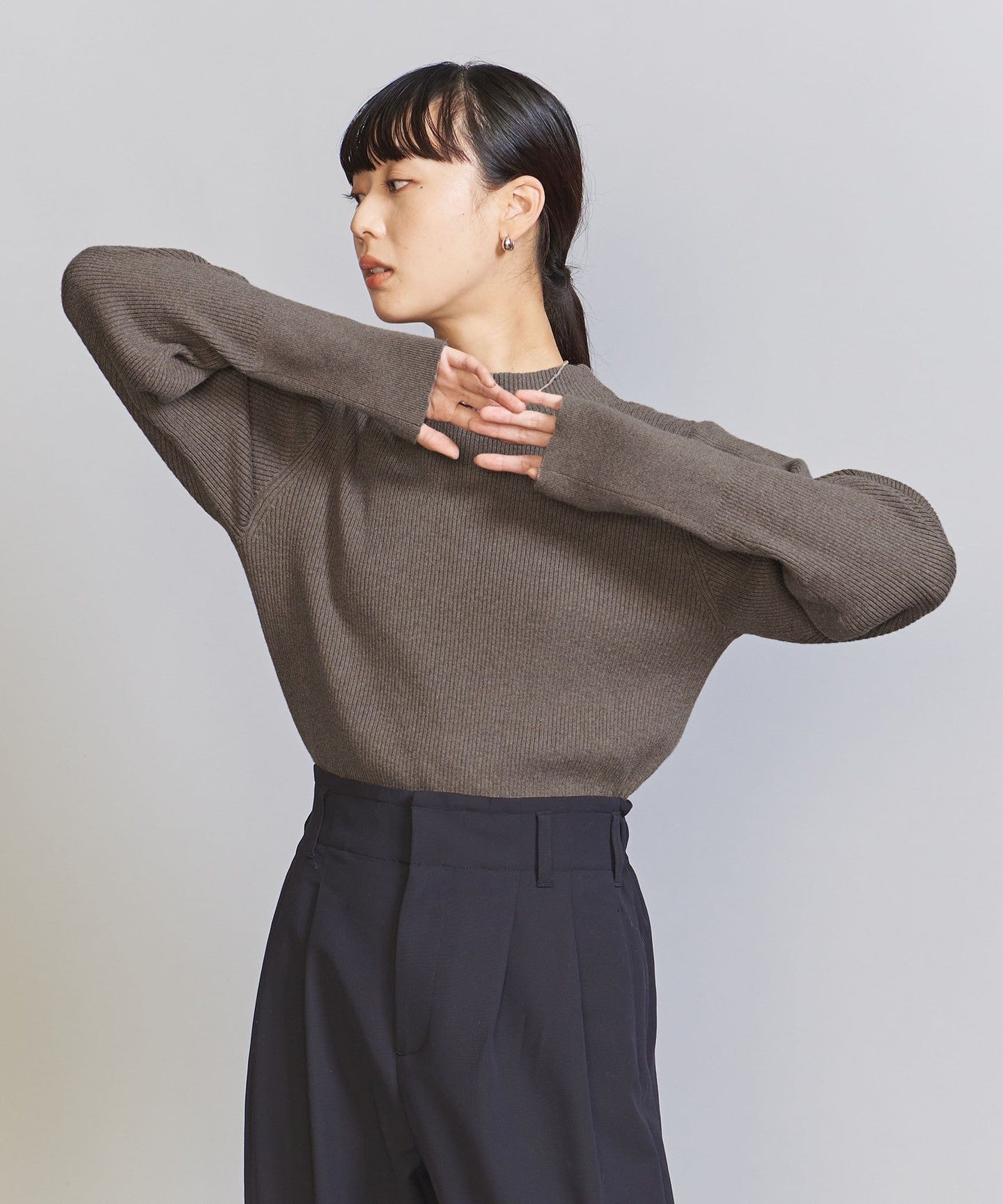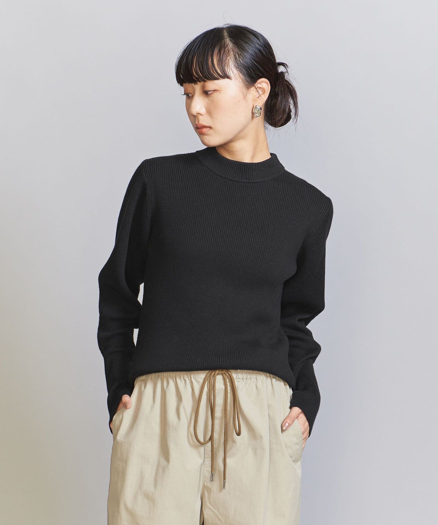 A compact size that fits the body line nicely.KNIT Pullover.