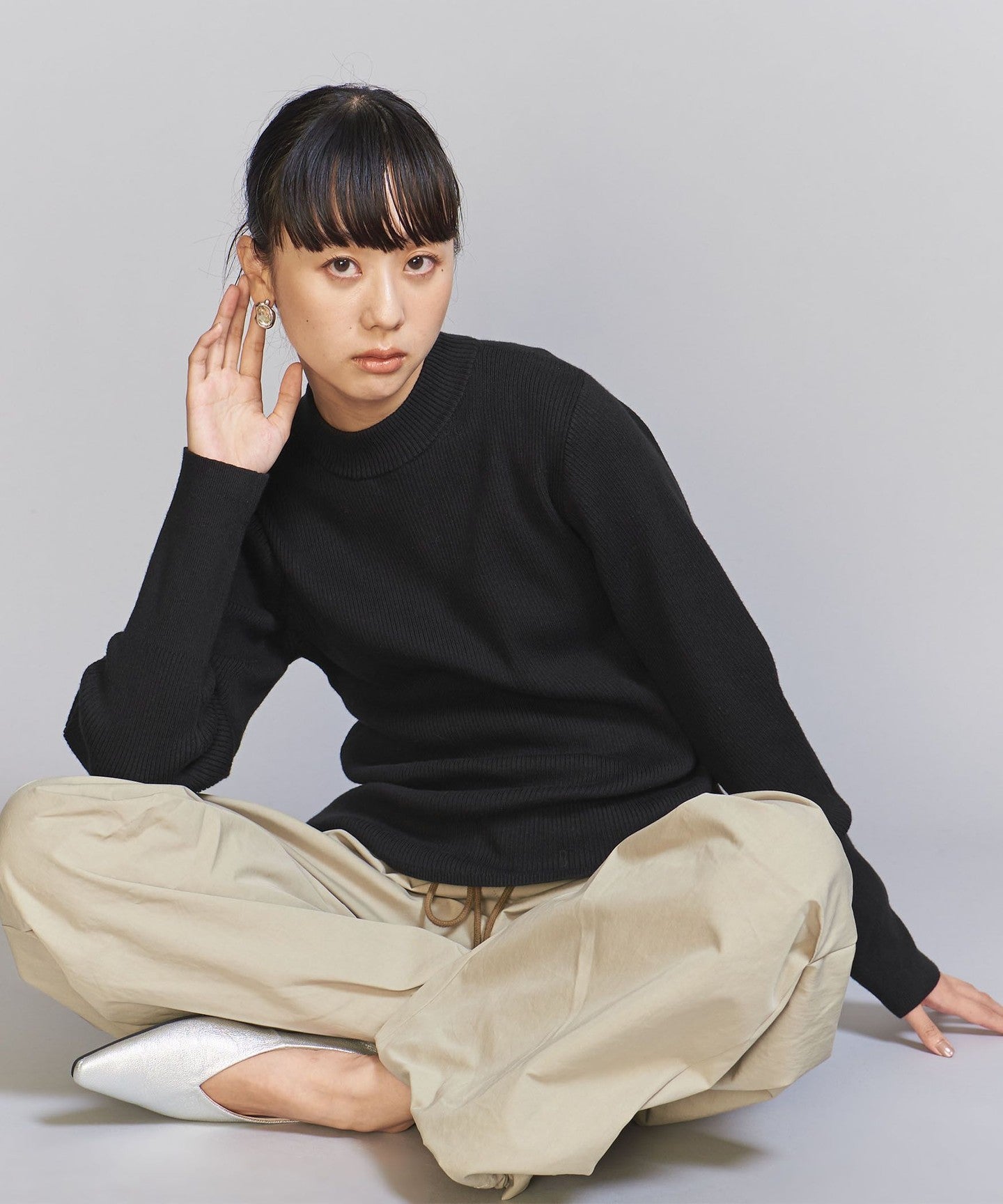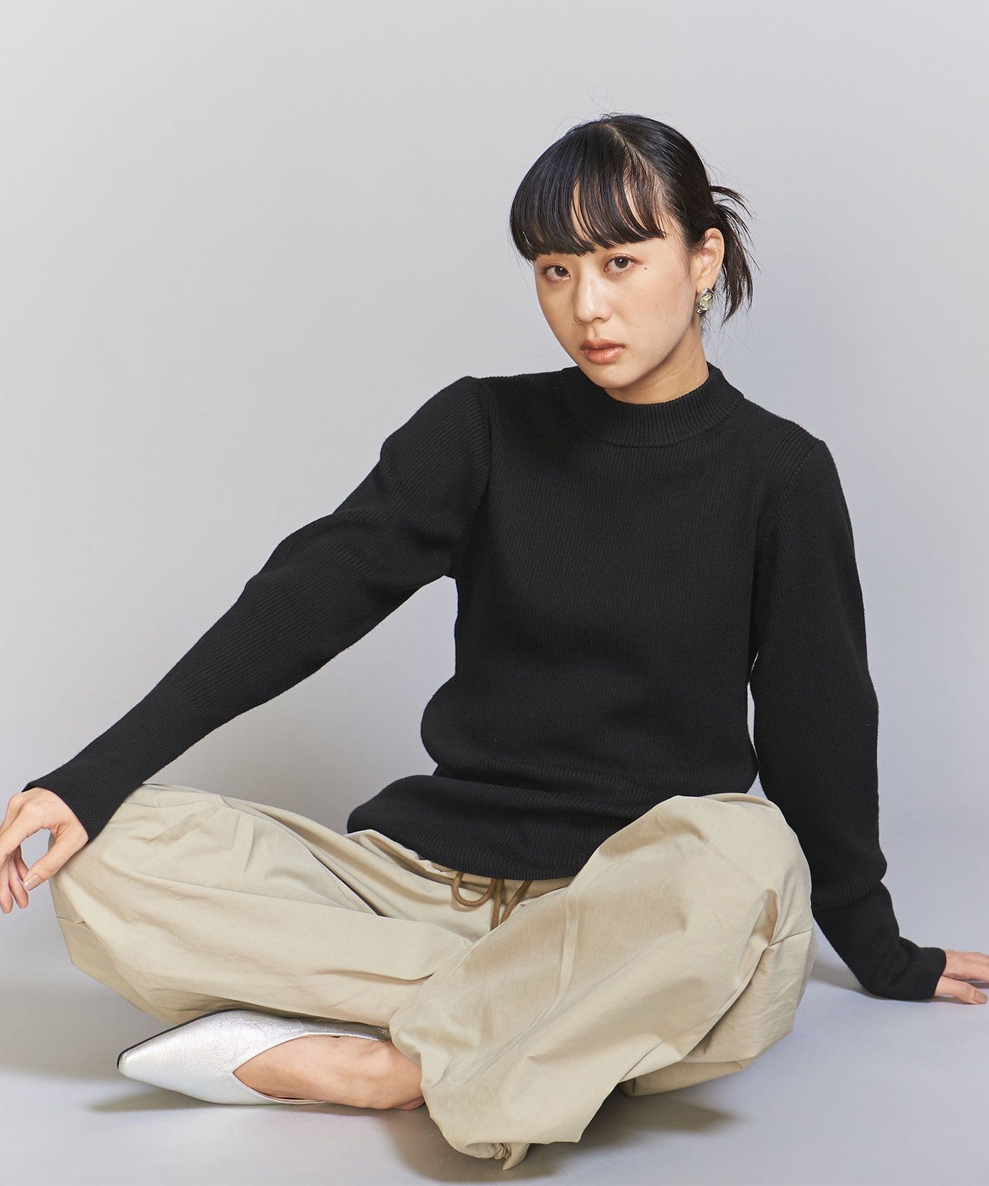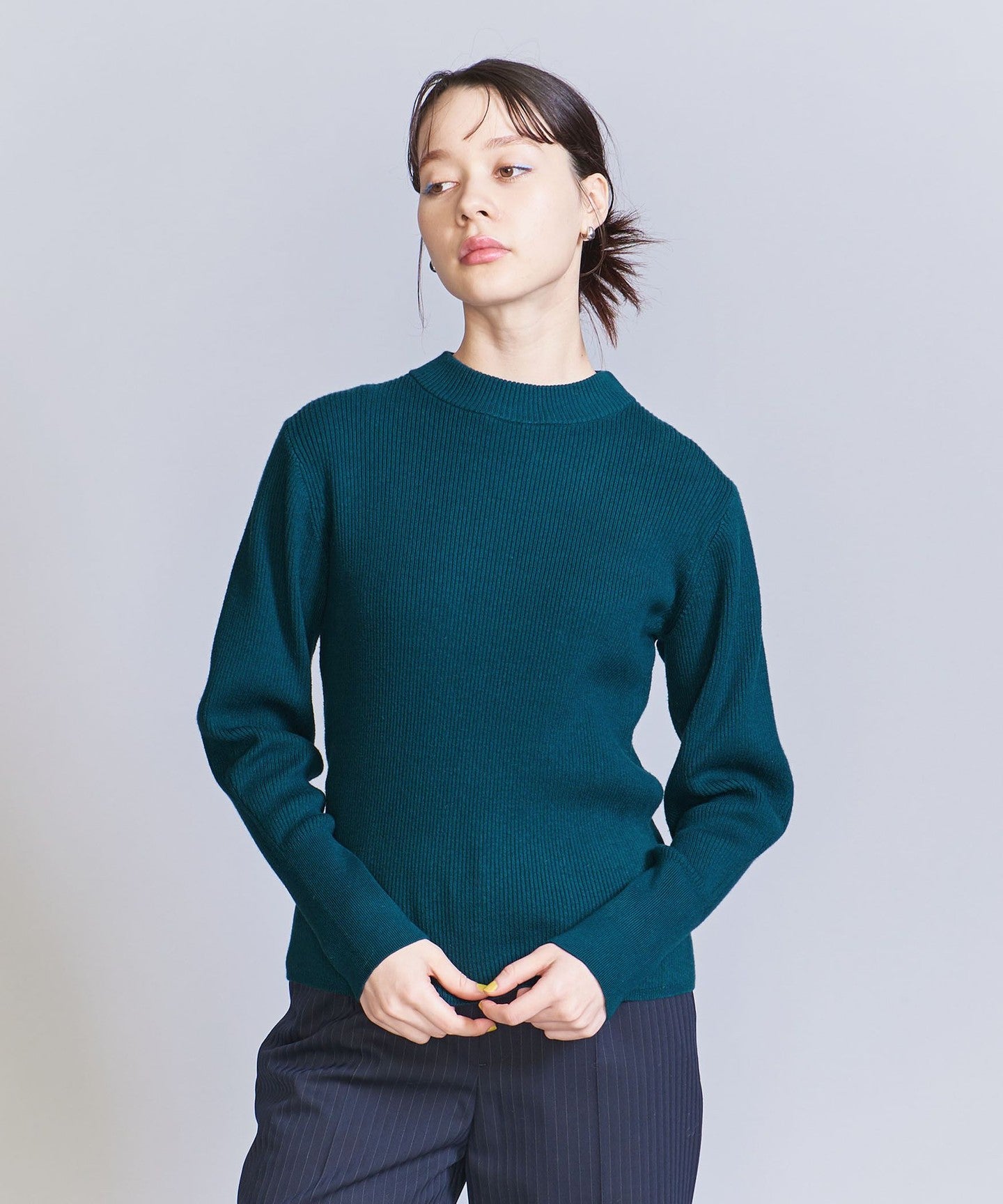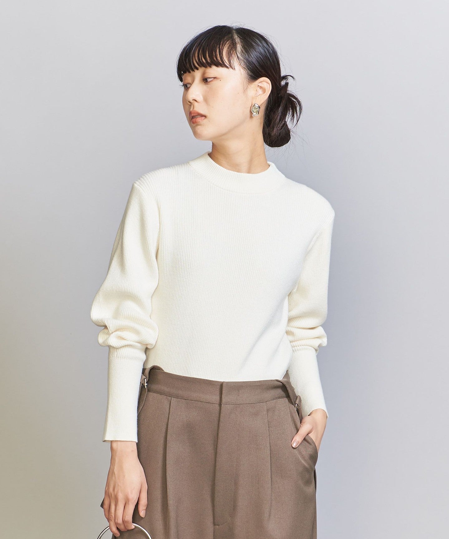 A compact size that fits the body line nicely.KNIT Pullover.