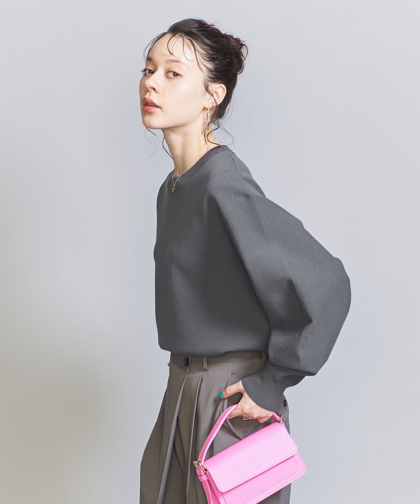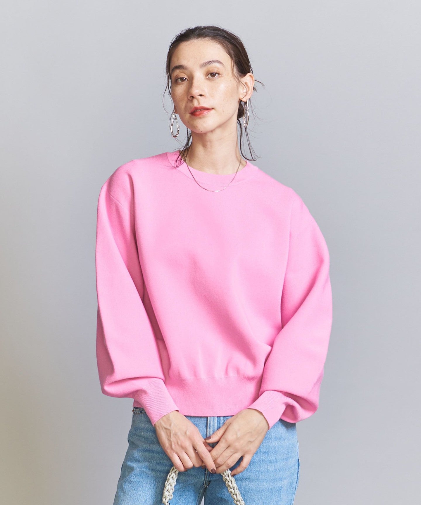 The thick Milanese rib construction creates a shapely silhouette.KNIT Pullover.