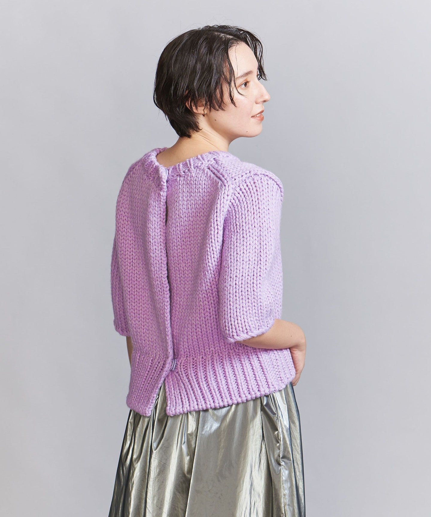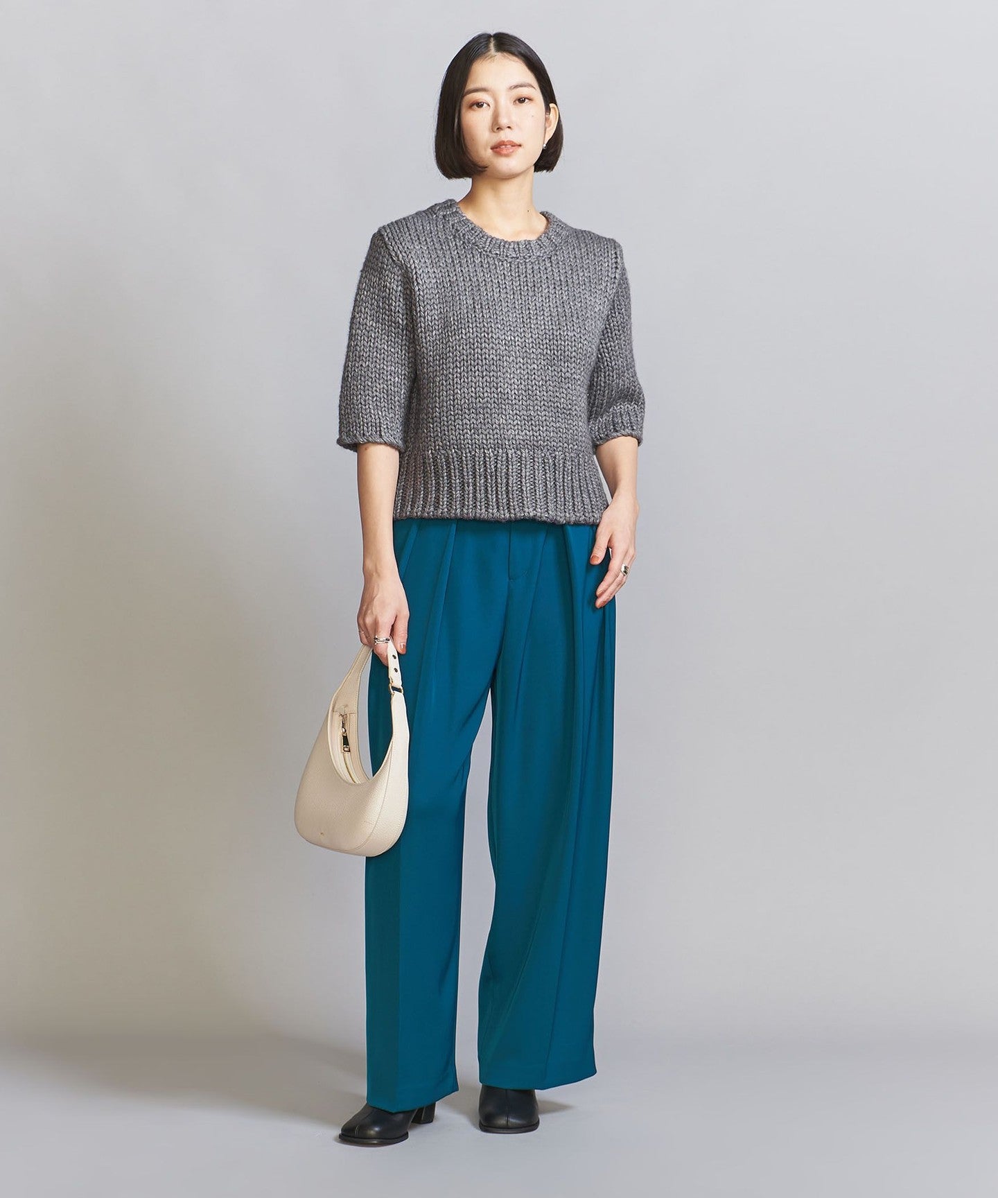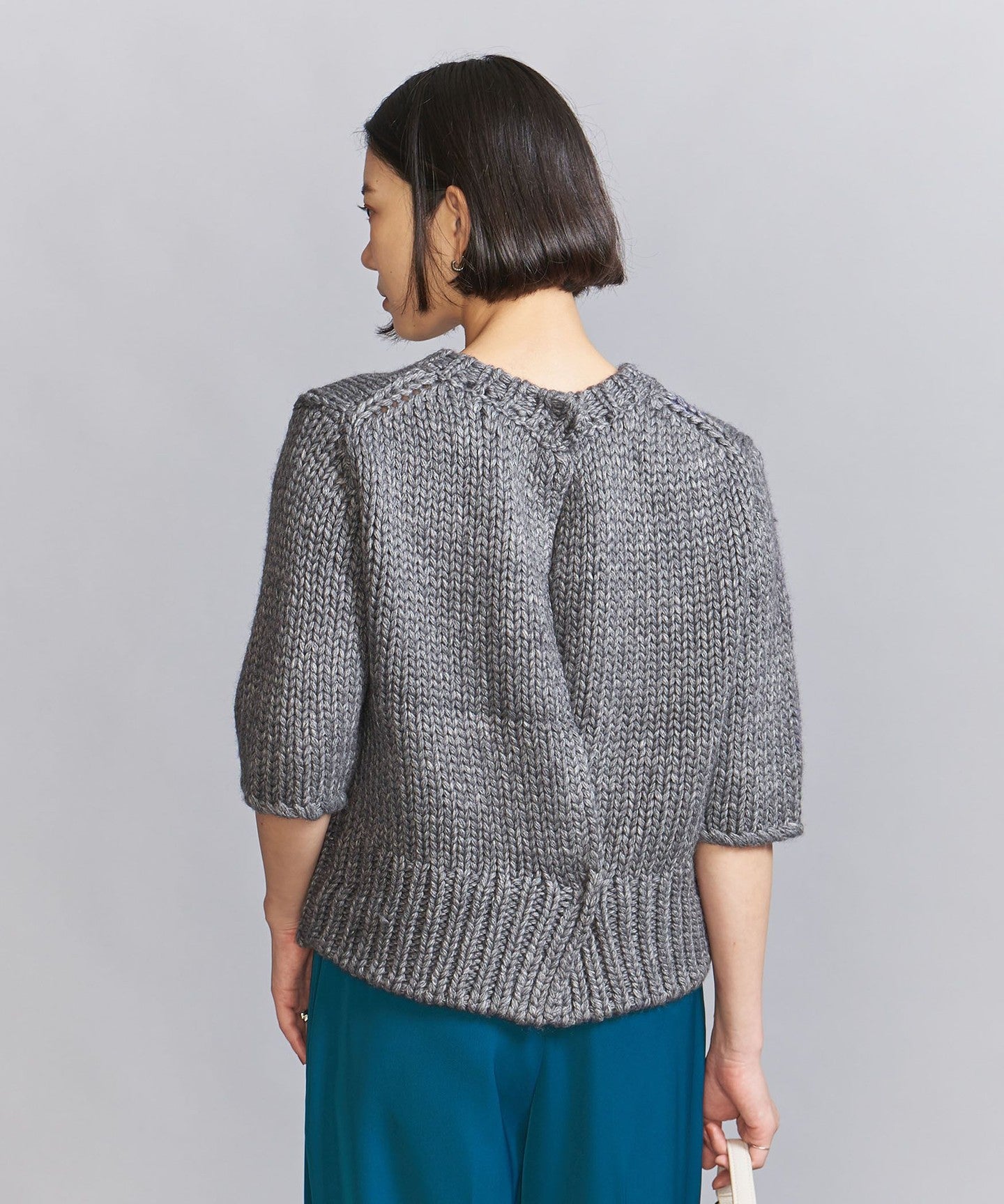 A compact silhouette is the current trend. A half-sleeve knit with a retro feel.