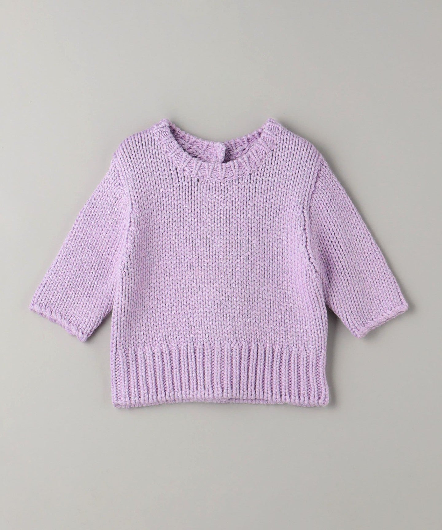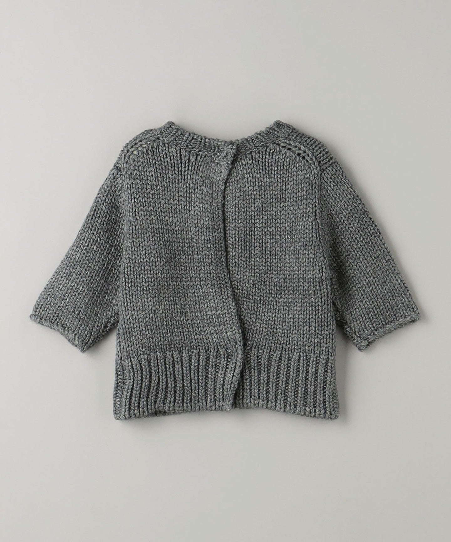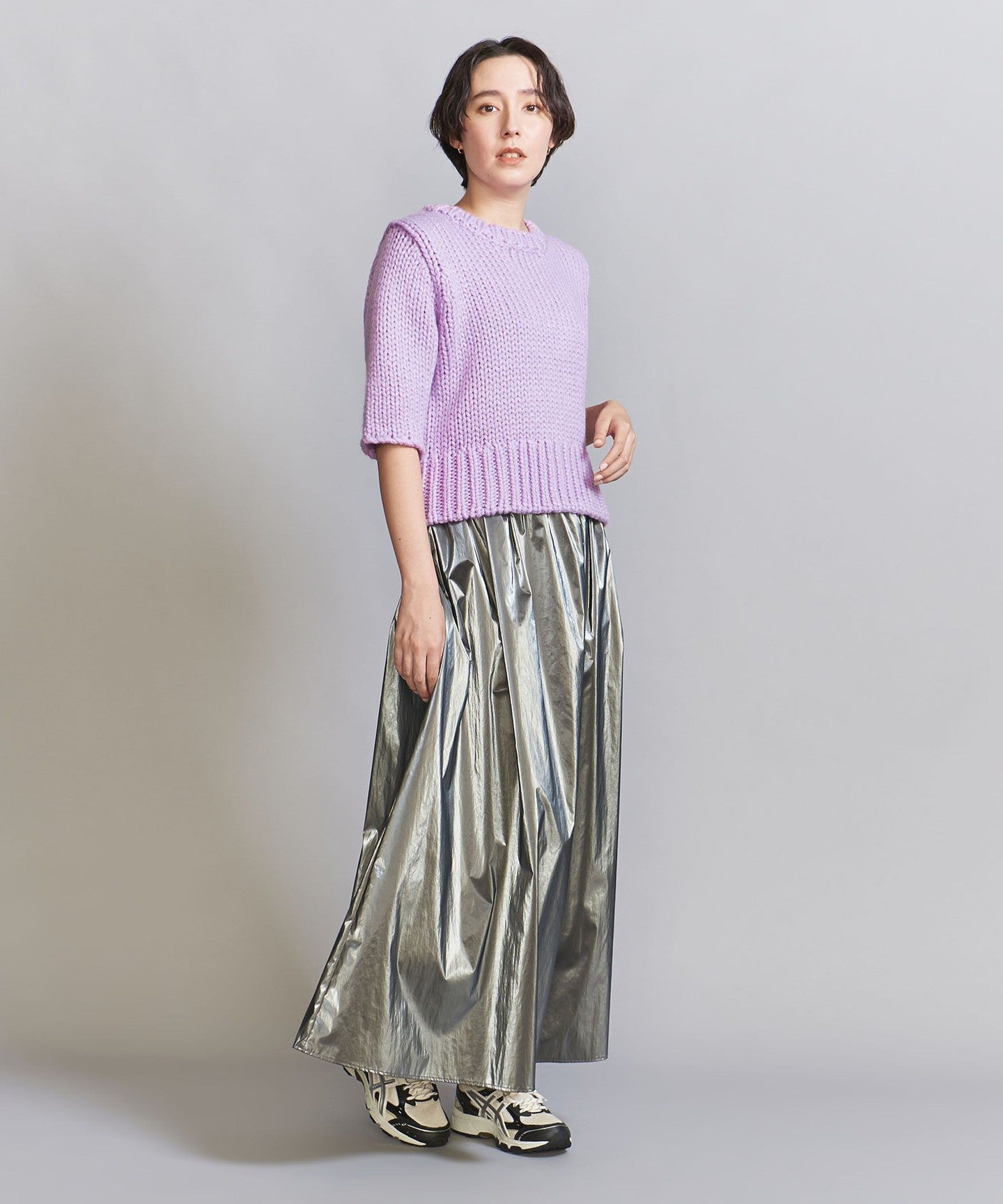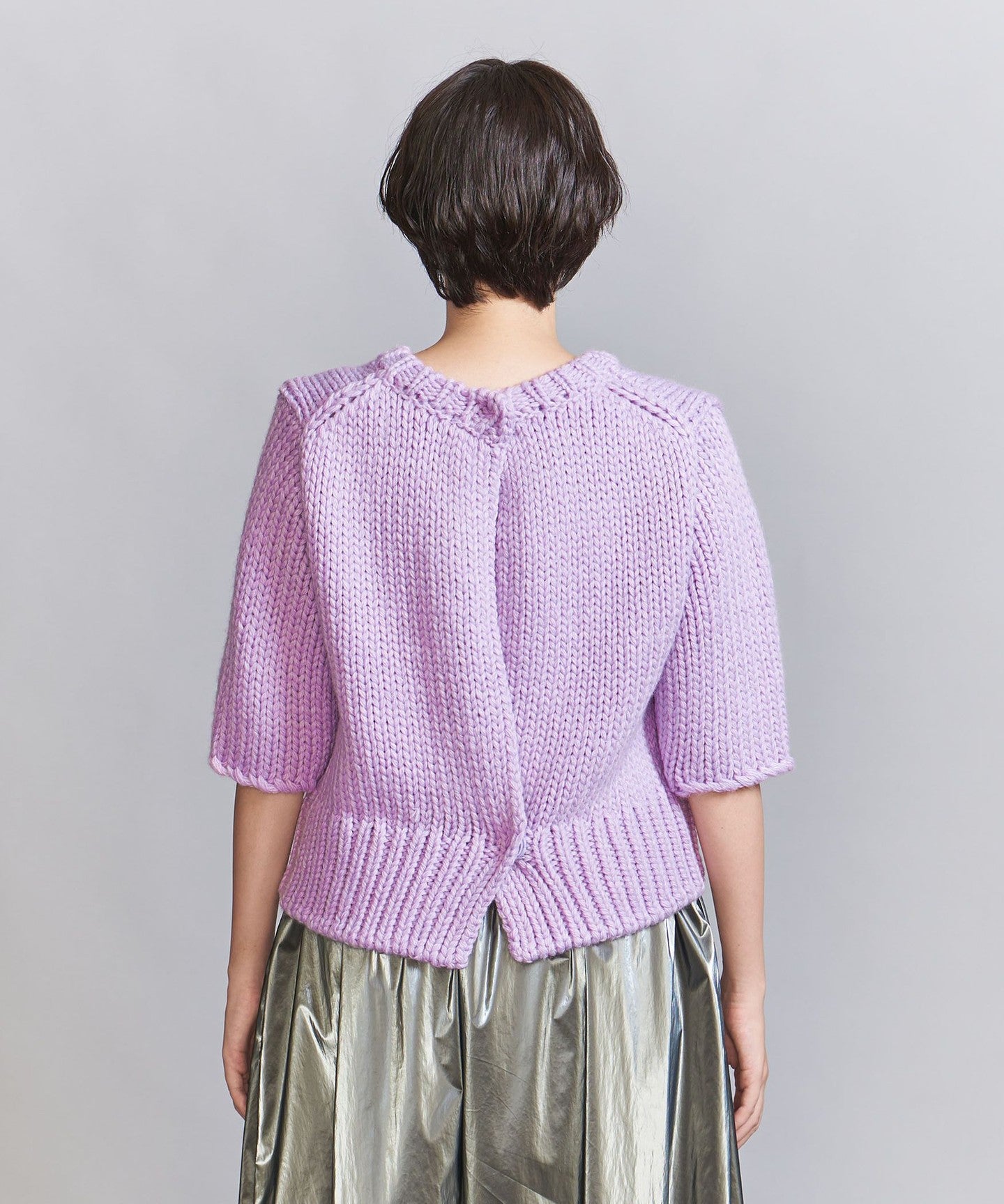 A compact silhouette is the current trend. A half-sleeve knit with a retro feel.