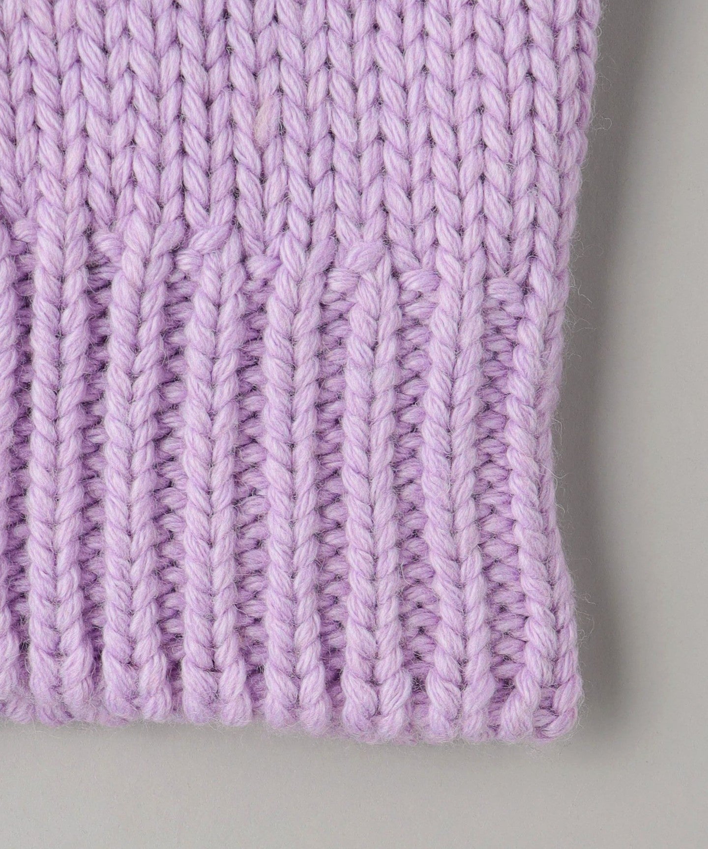 Multiple strands are used and knitted at 2 gauge to create a rough knit fabric.