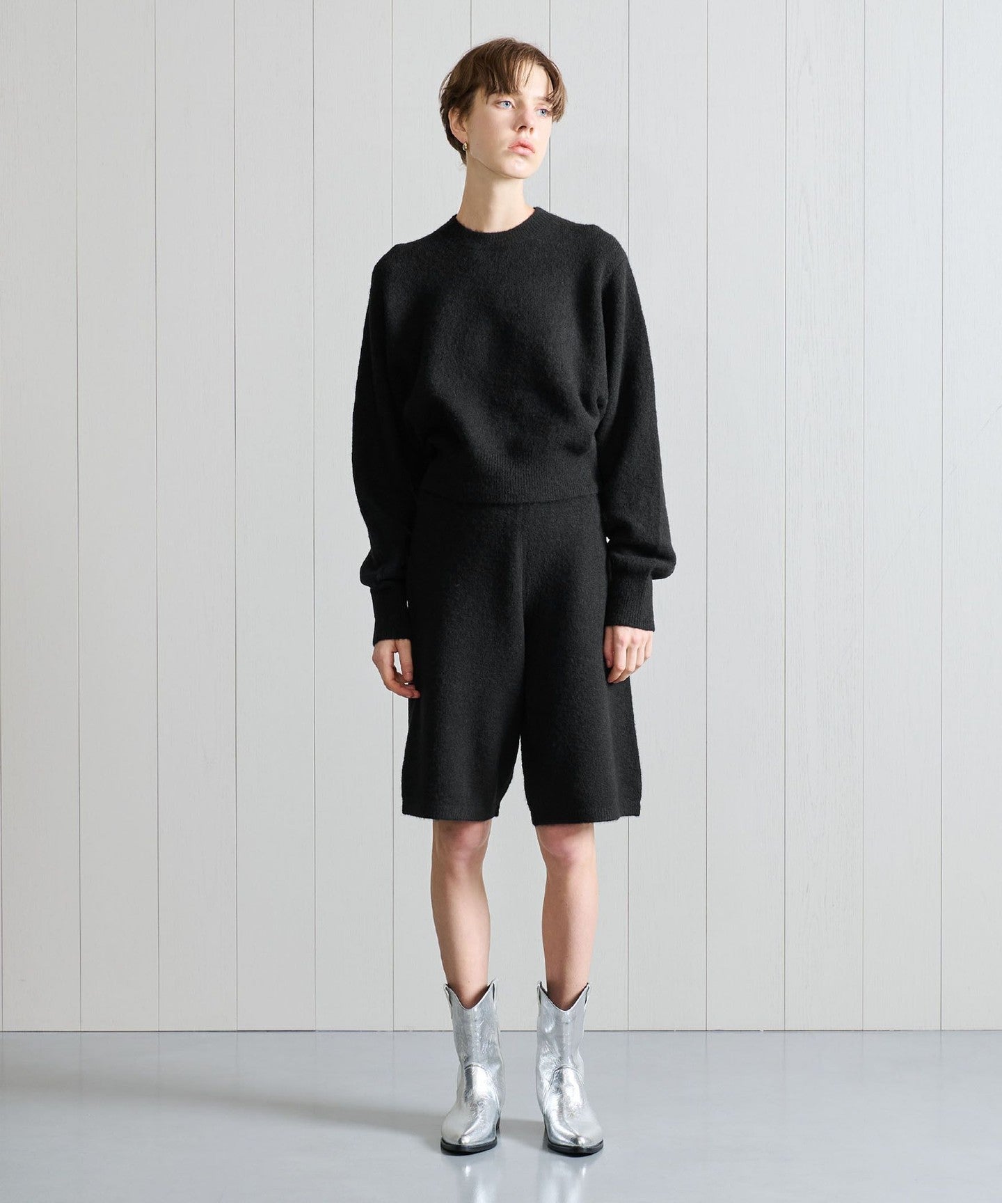 These mossa knit shorts feature a light and fluffy texture. The slim waist and moderately wide silhouette make them perfect for a variety of outfits. Their relaxed yet minimalist design with an urban vibe creates a fresh look. We also recommend pairing them with the pullover from the same series (item no. 16131993679) for a stylish set.