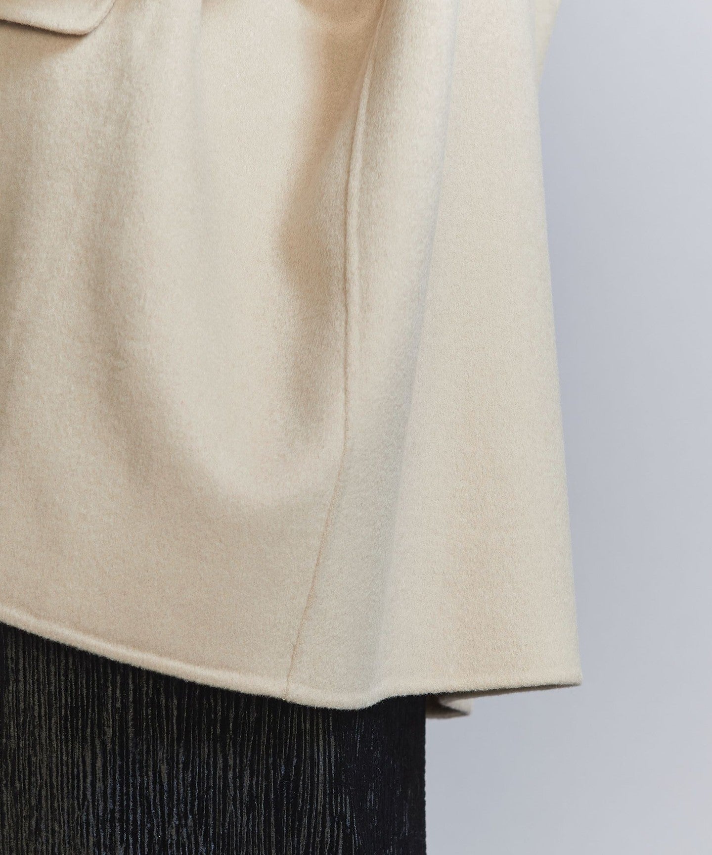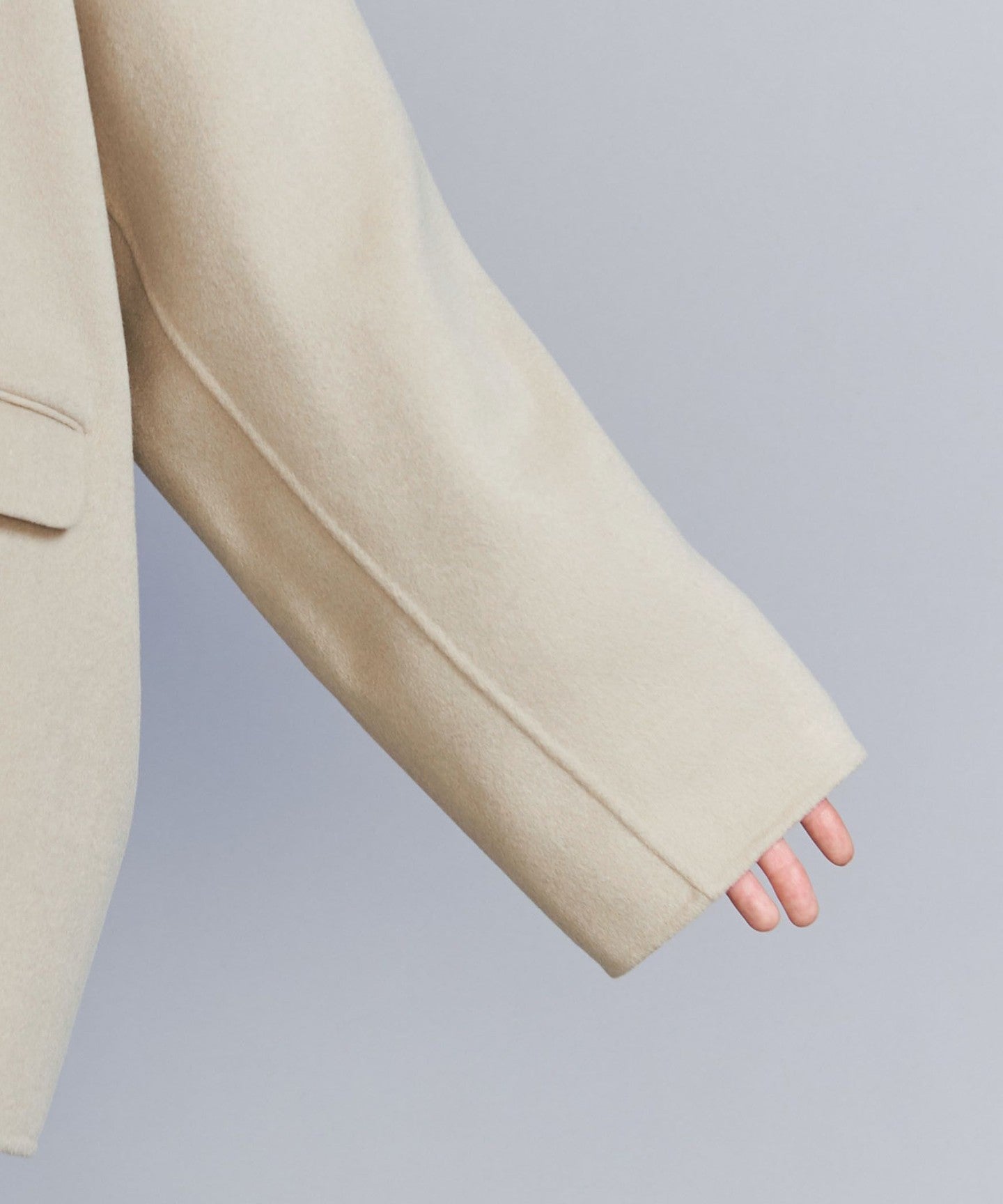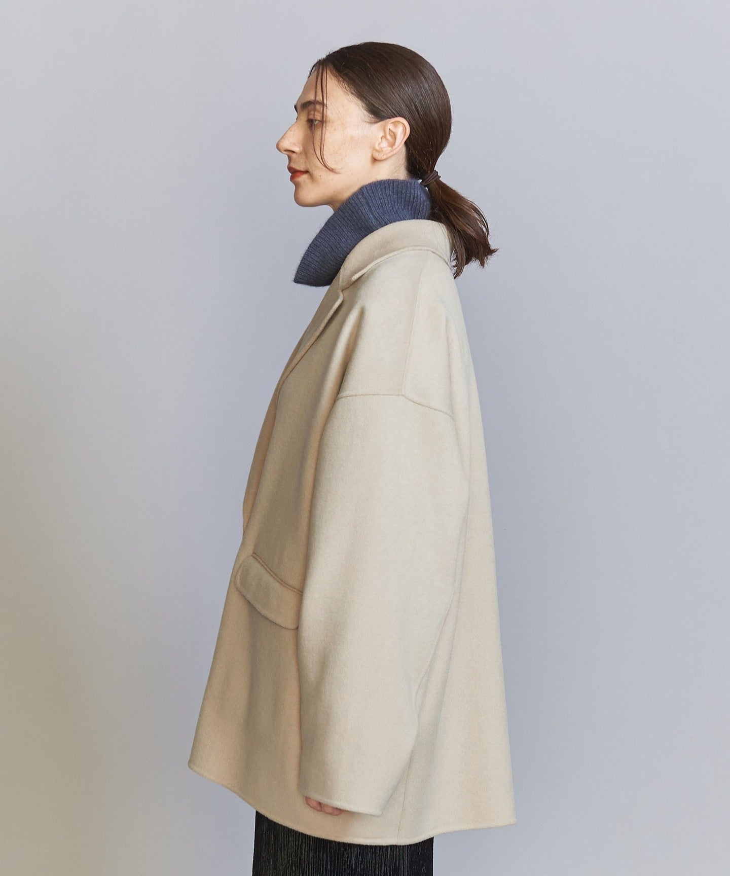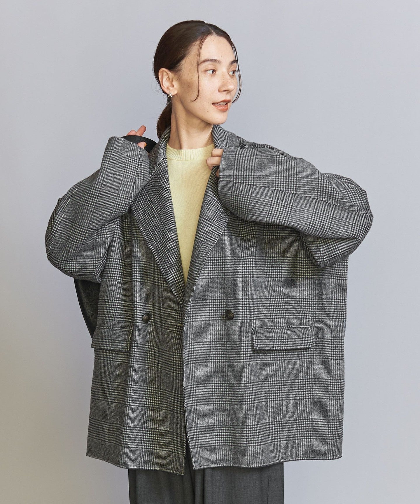 This season, we've changed the hem to a double-breasted jacket and enlarged the collar to create a design that's not too stiff.