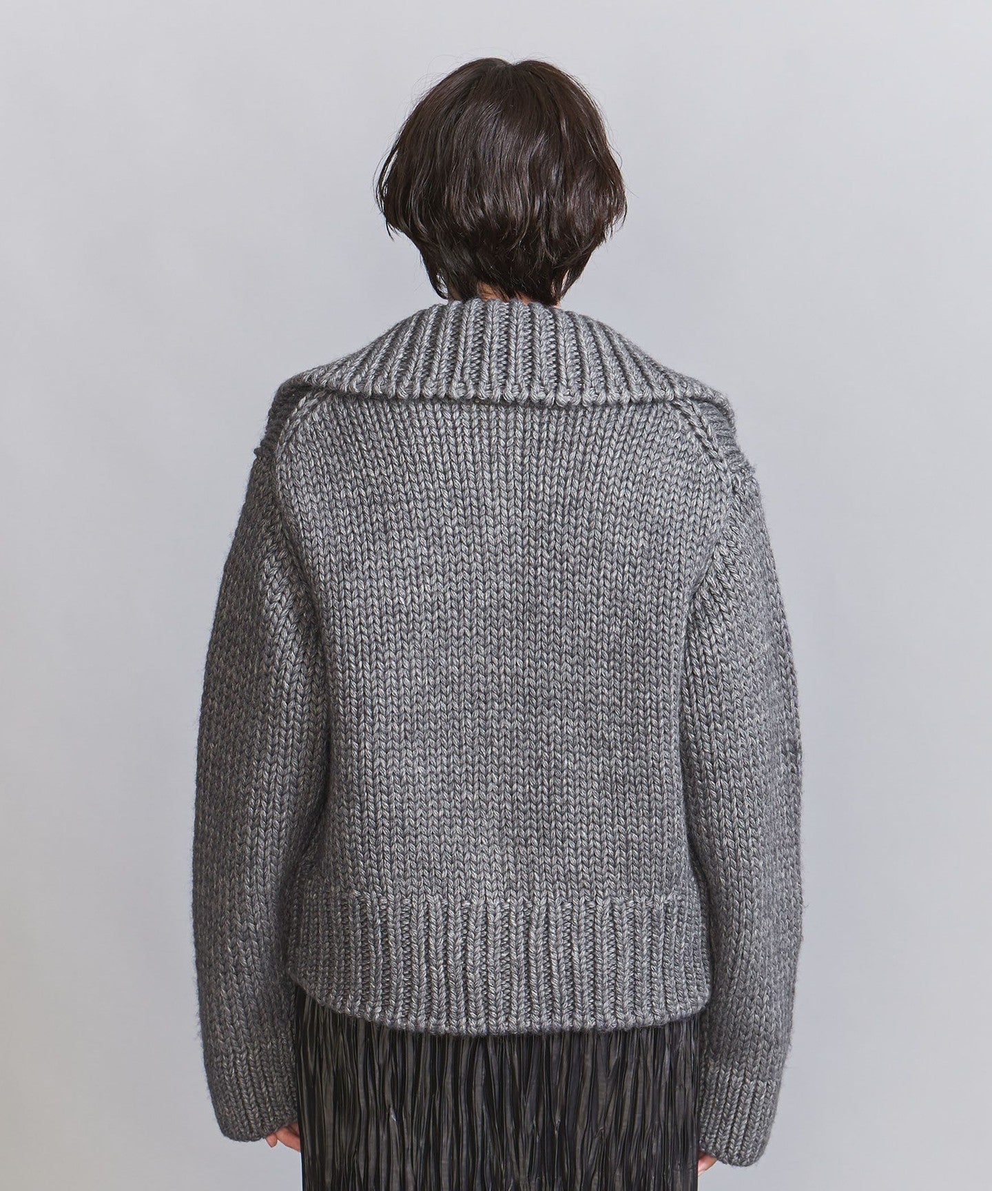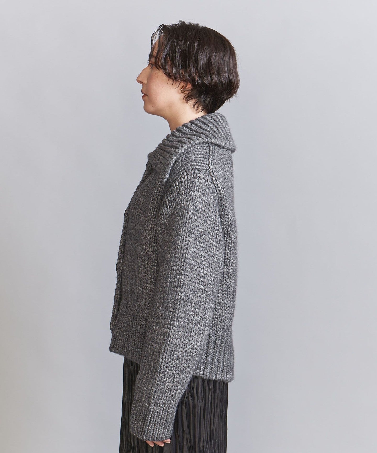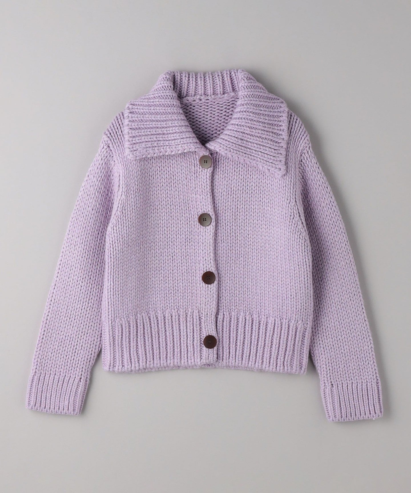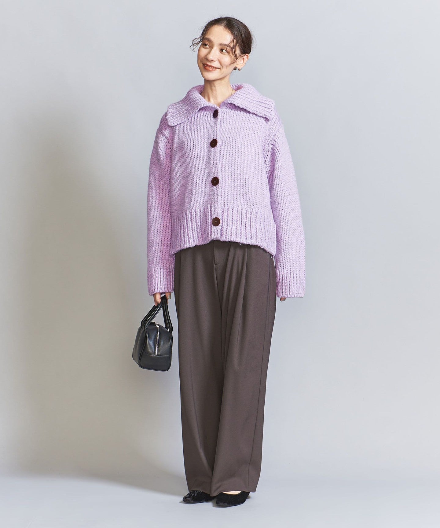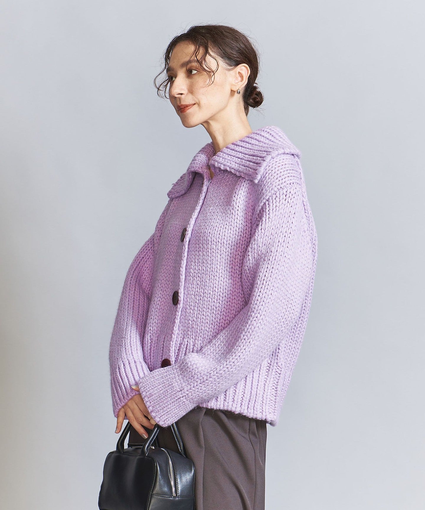 A compact silhouette is the current trend. A knit cardigan with a collar that exudes a retro vibe.