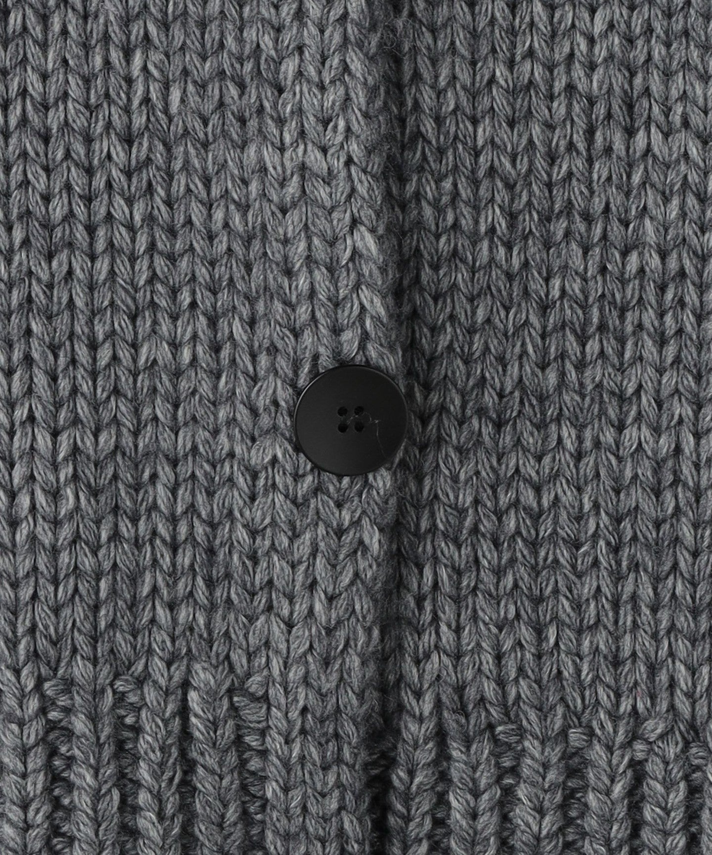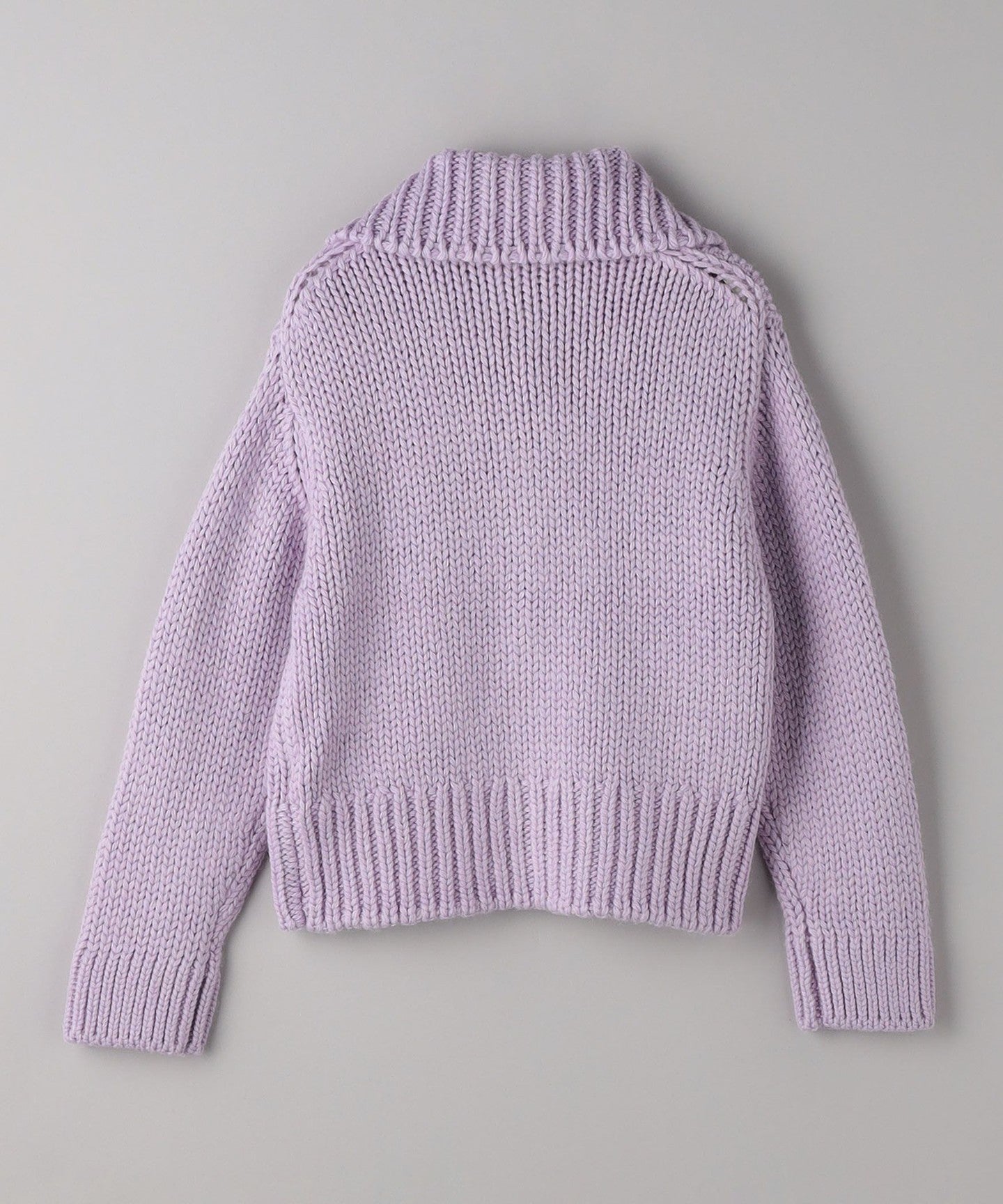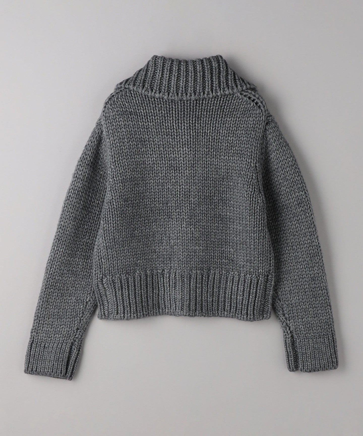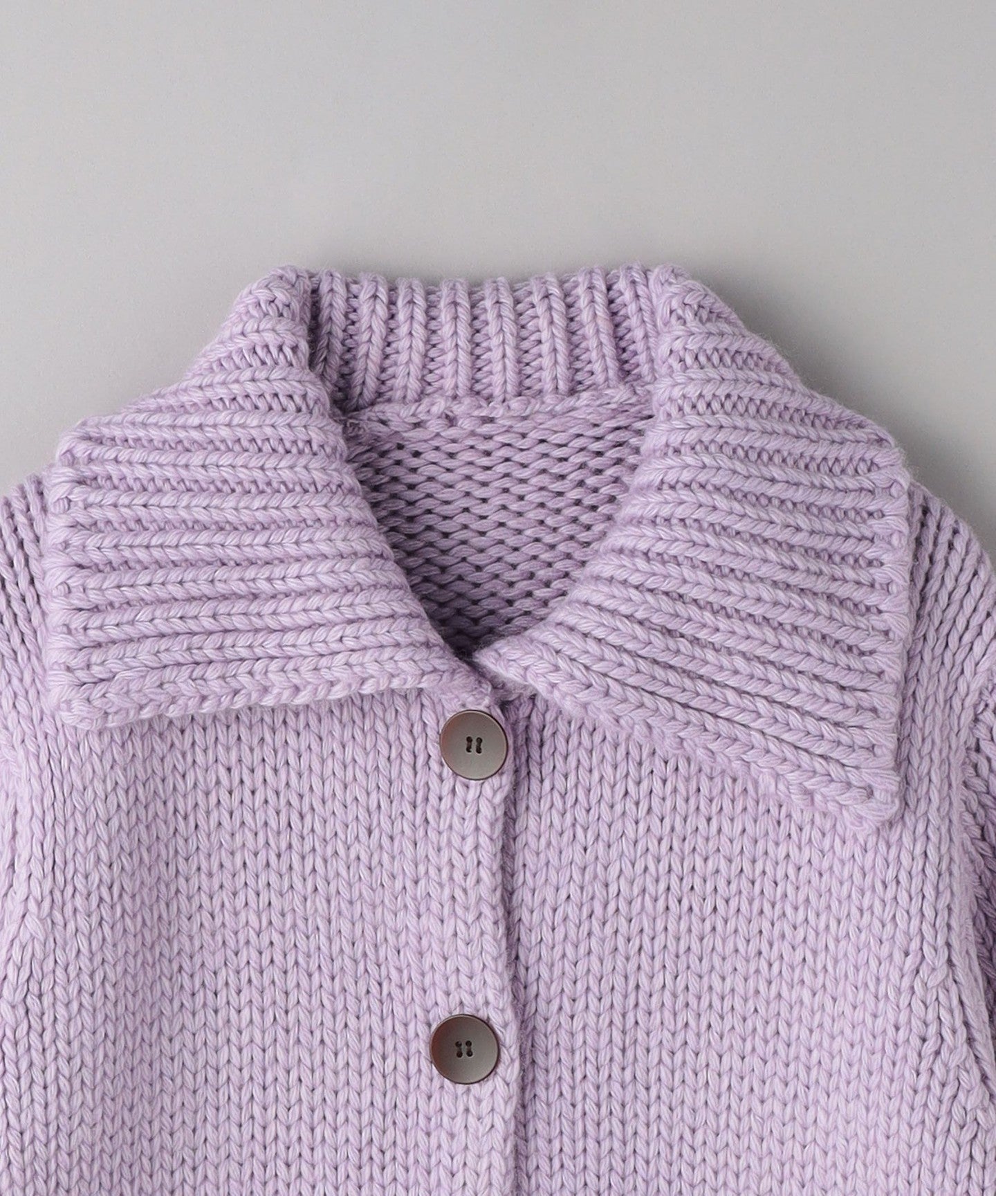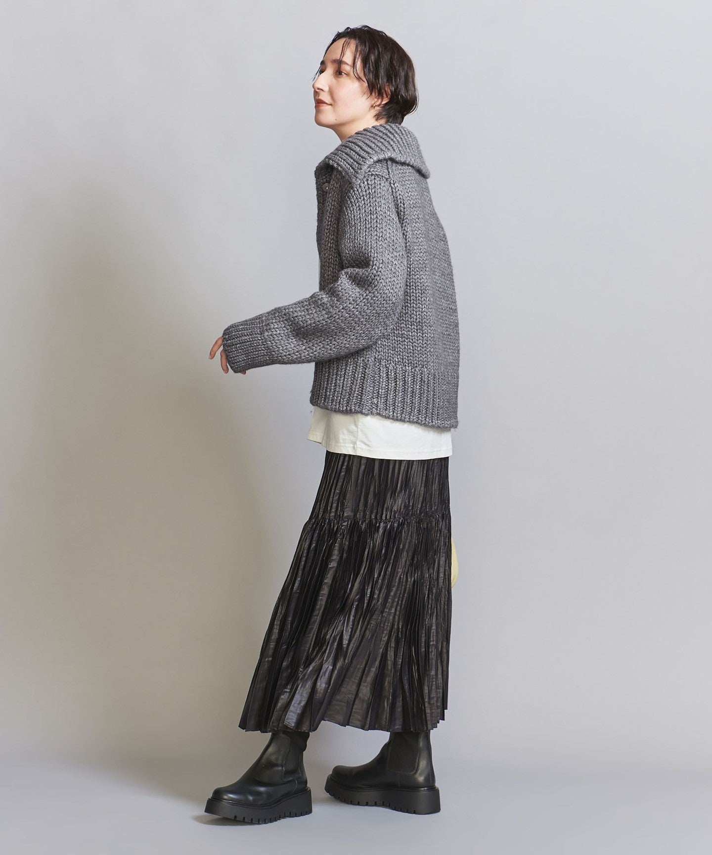A compact silhouette is the current trend. A knit cardigan with a collar that exudes a retro vibe.