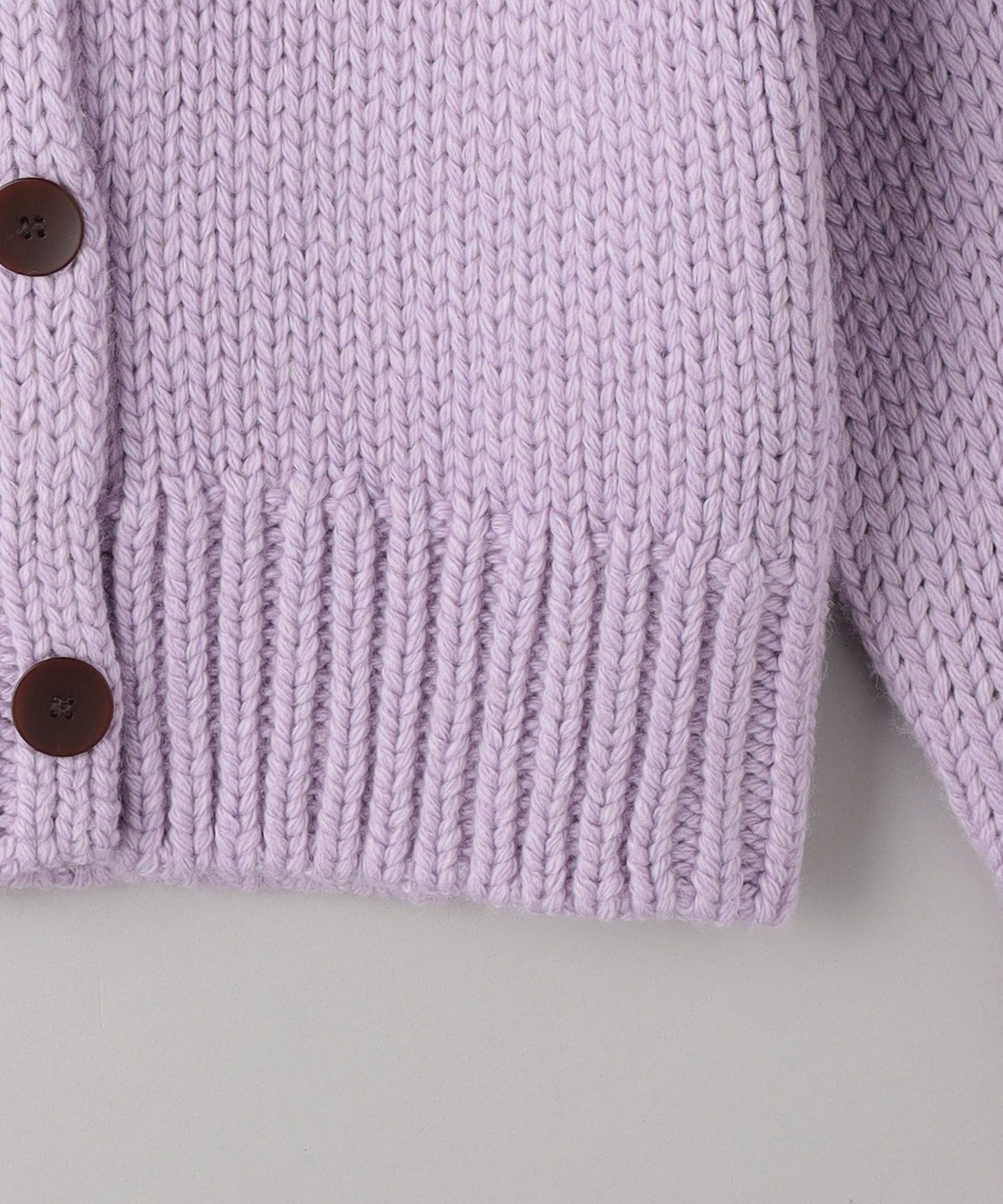 A cute cardigan made with bulky yarn for a hand-knitted look.