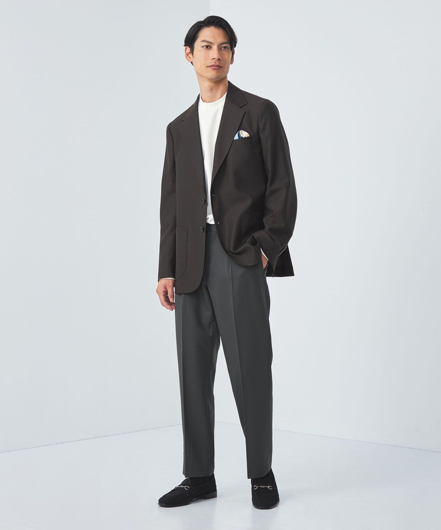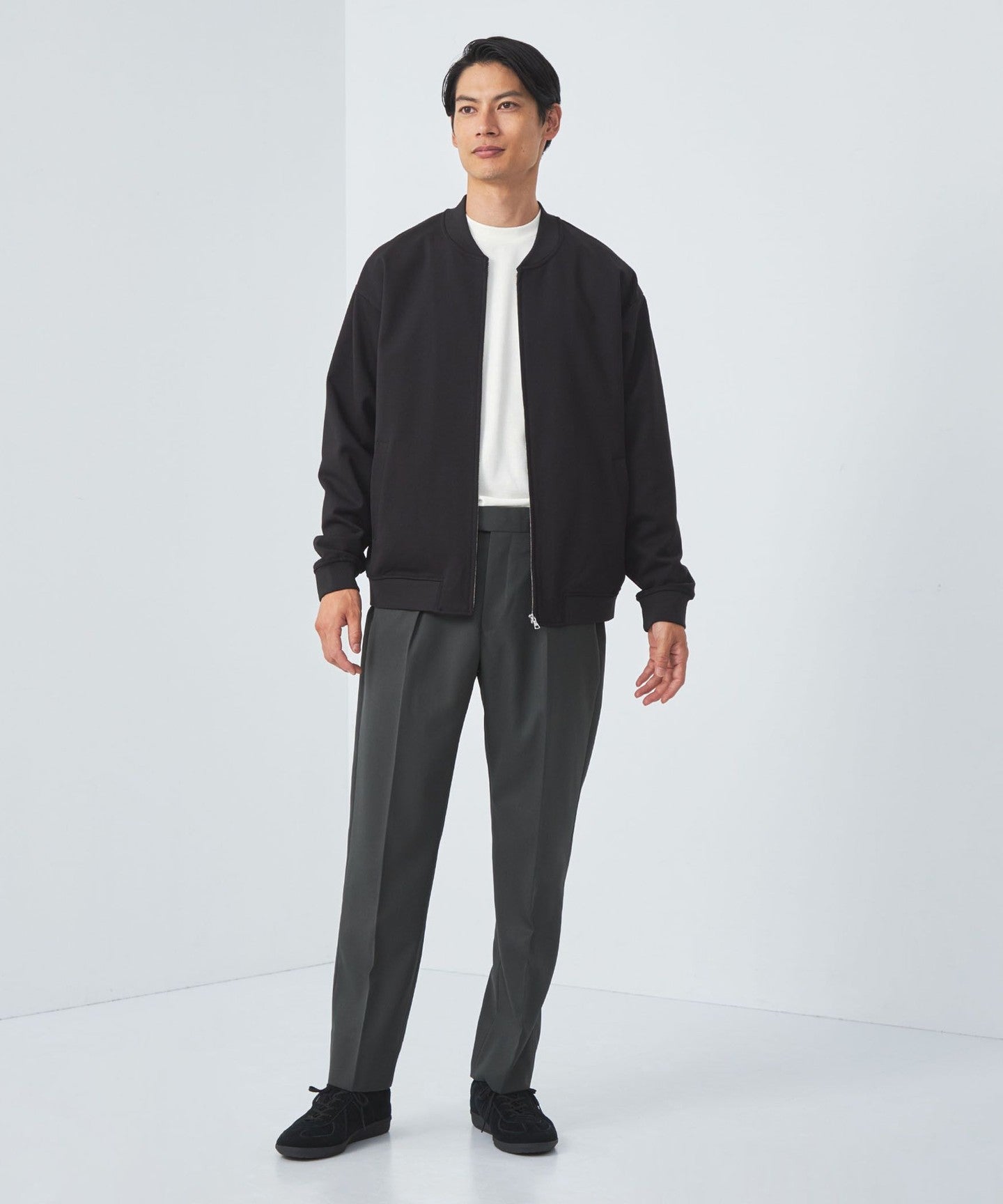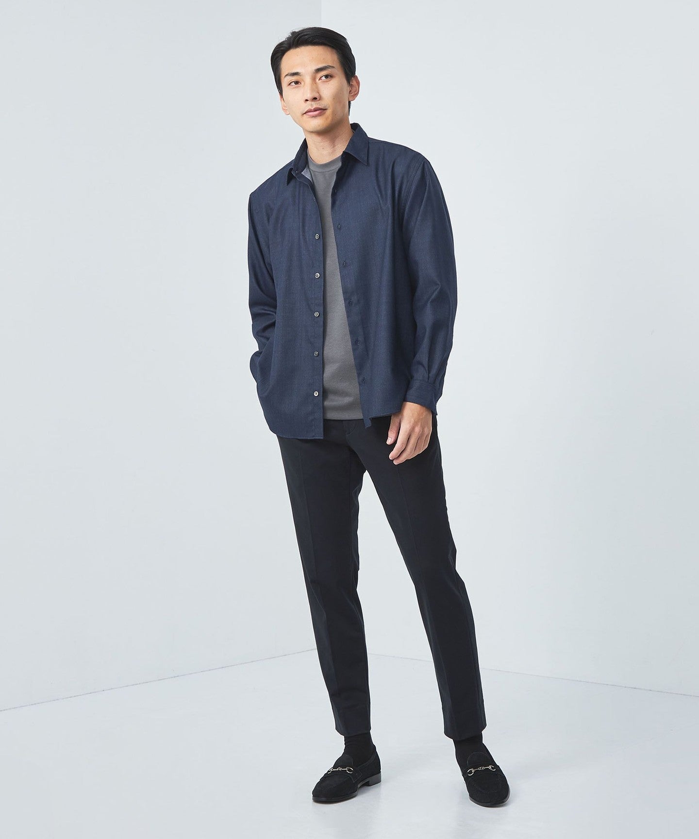 Pairing leather shoes with clean bottoms such as slacks or tapered pants will create a mature and stylish look.