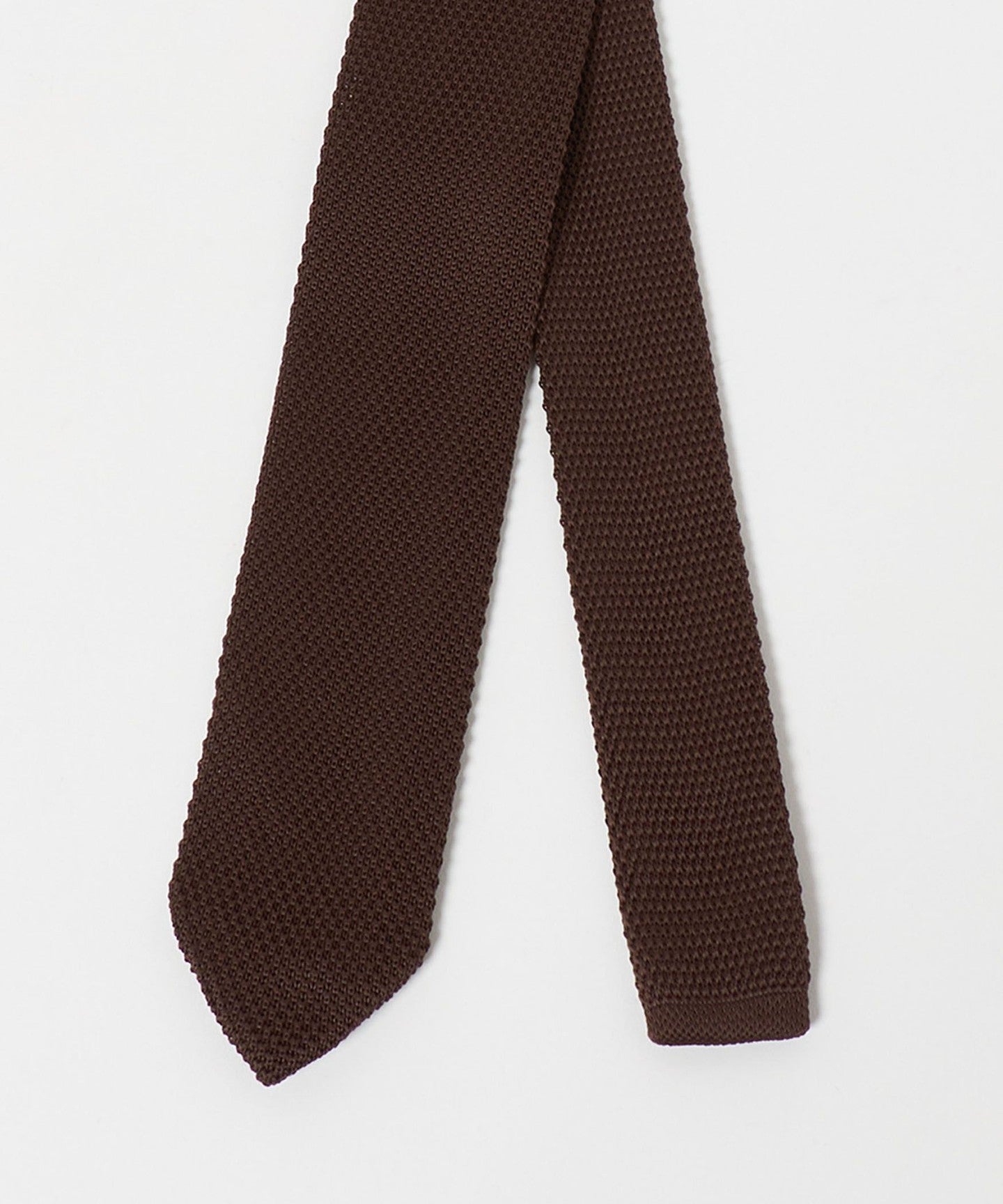 ・Eine Strickkrawatte mit einer scharfen Spitze, die ihr ein gepflegtes Aussehen verleiht