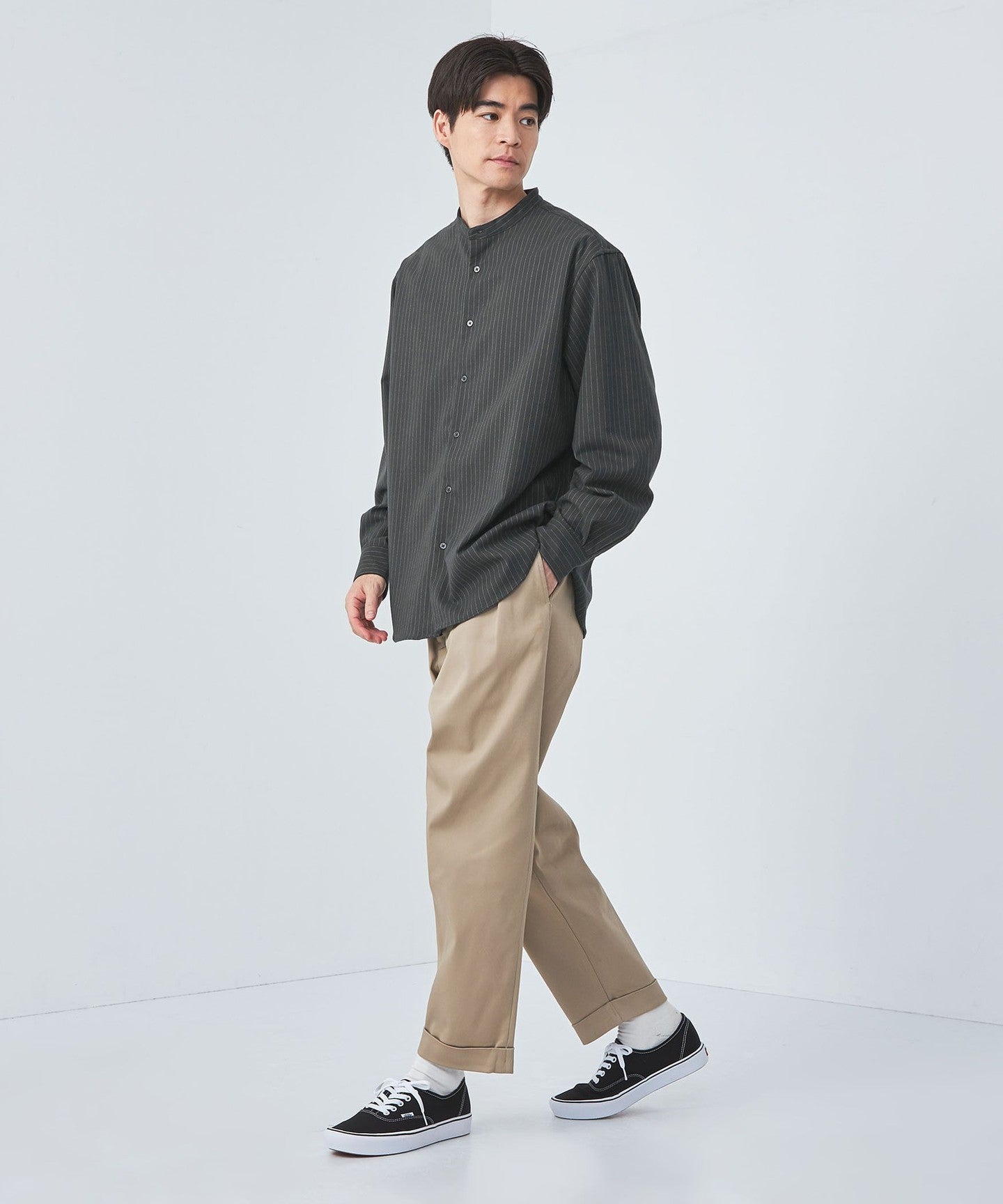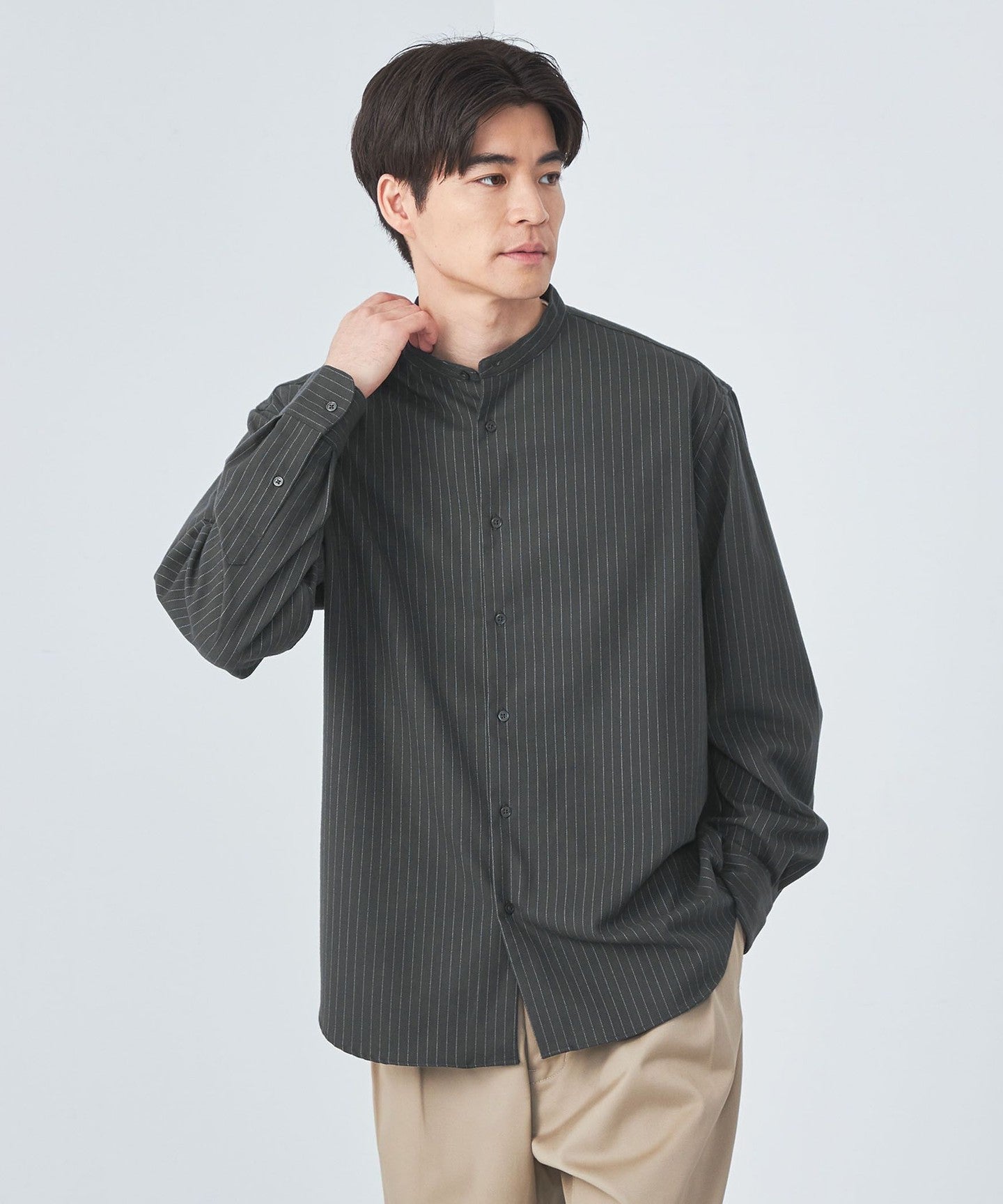This is a band collar shirt with a just-loose silhouette, a classic Green Label Relaxing style.