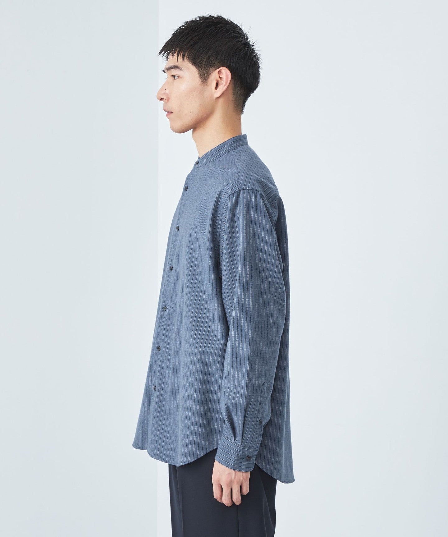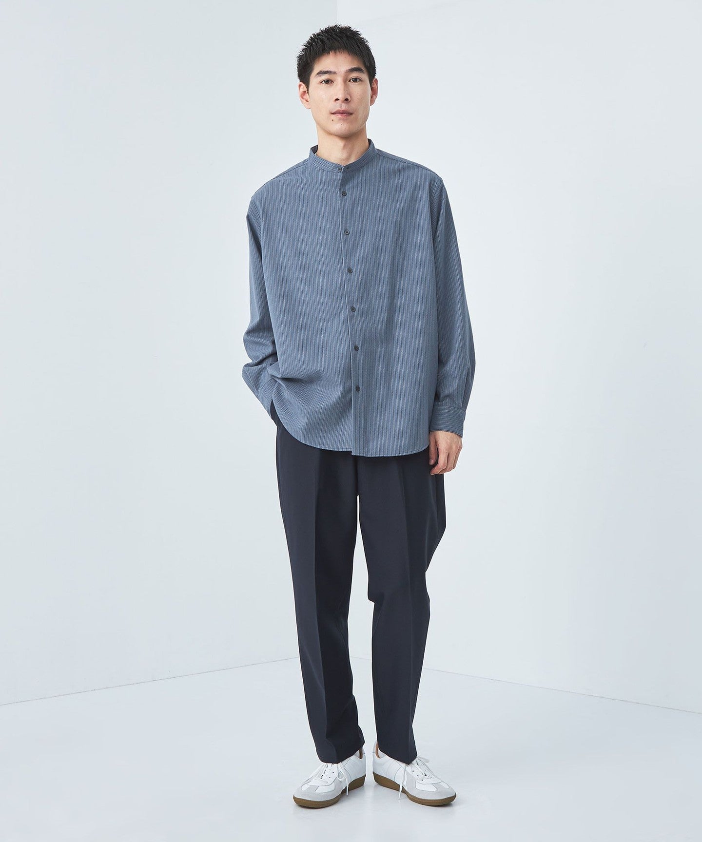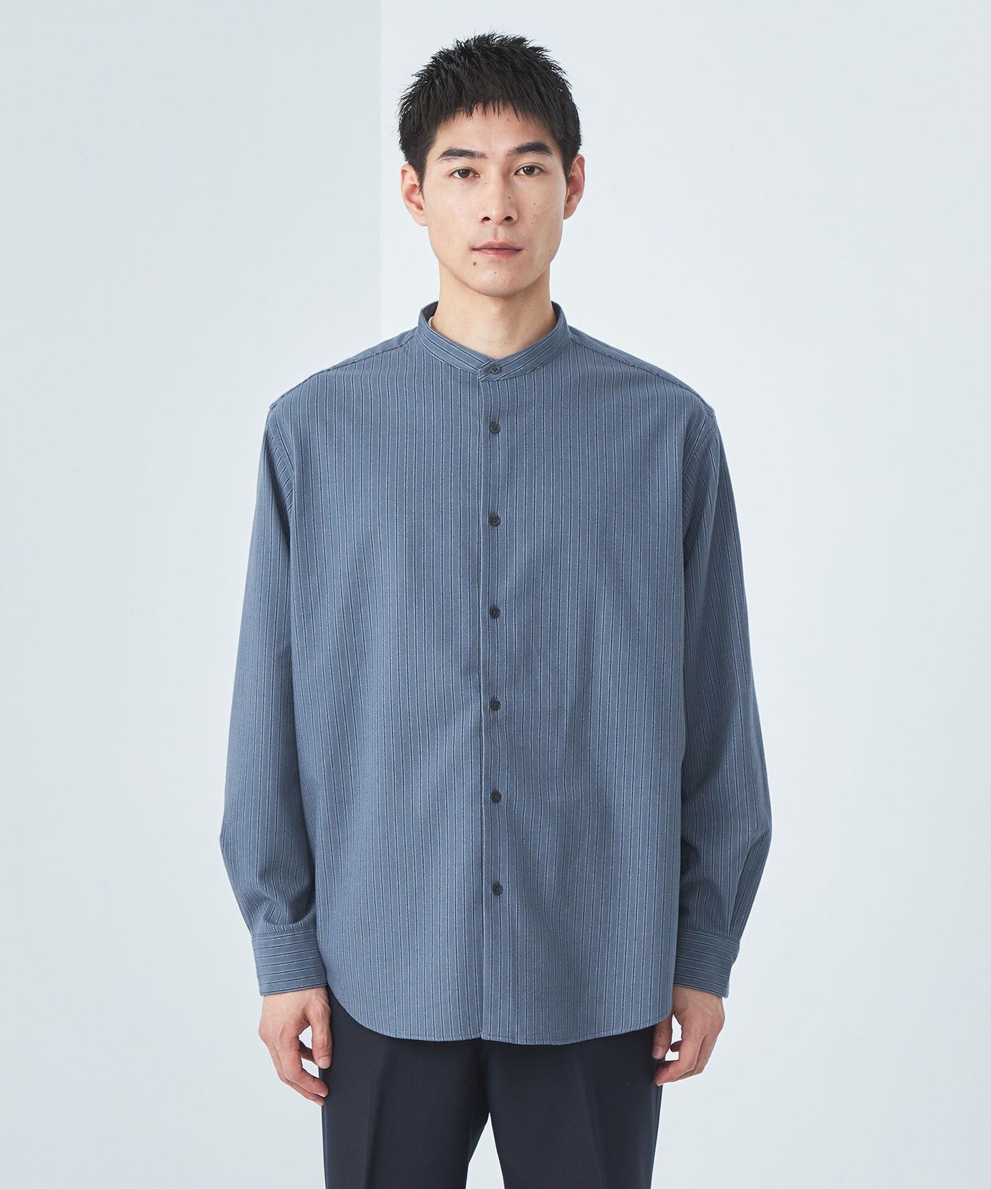 TR Furano Stripe Just Loose Band Collar Shirt - Stretch and Wrinkle-