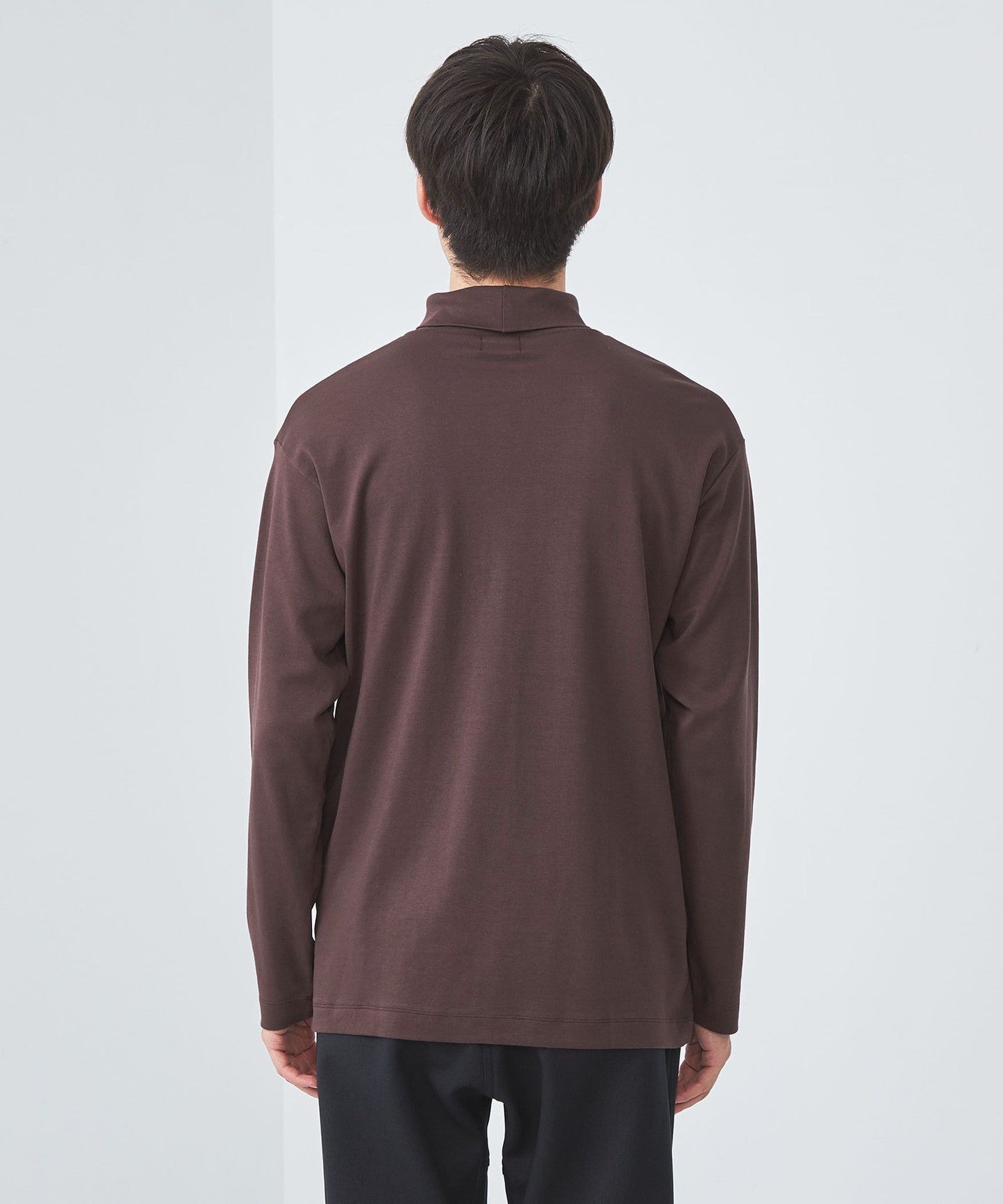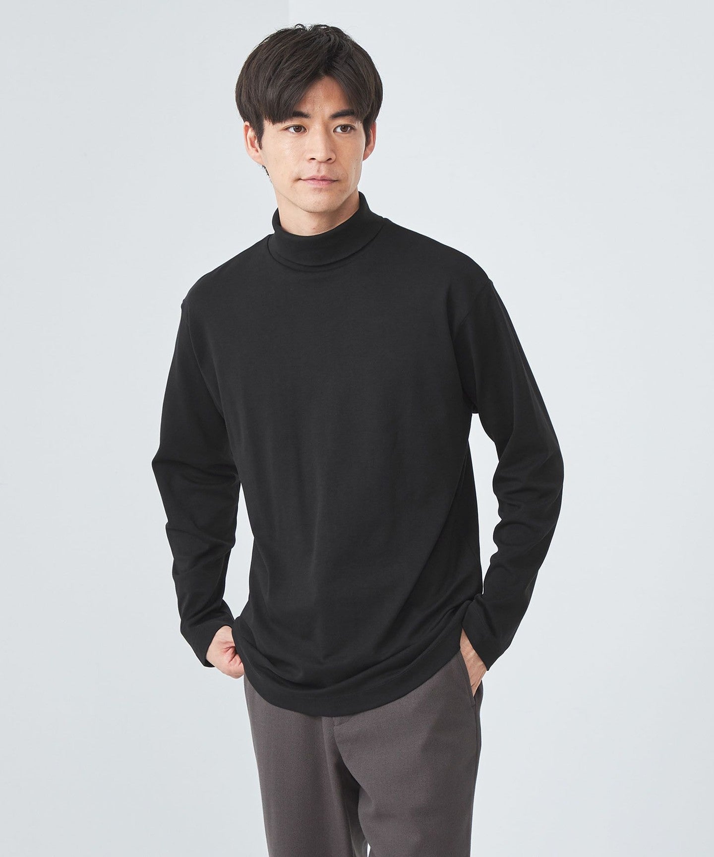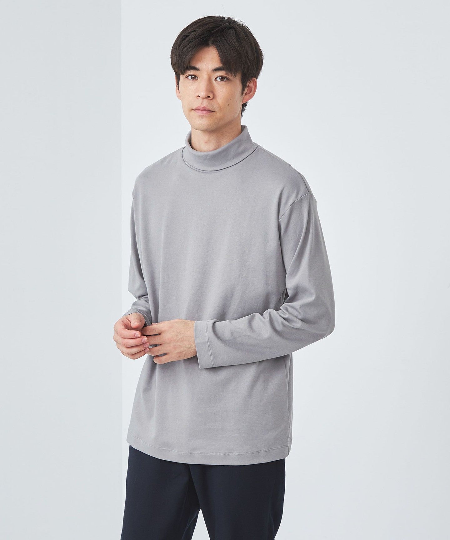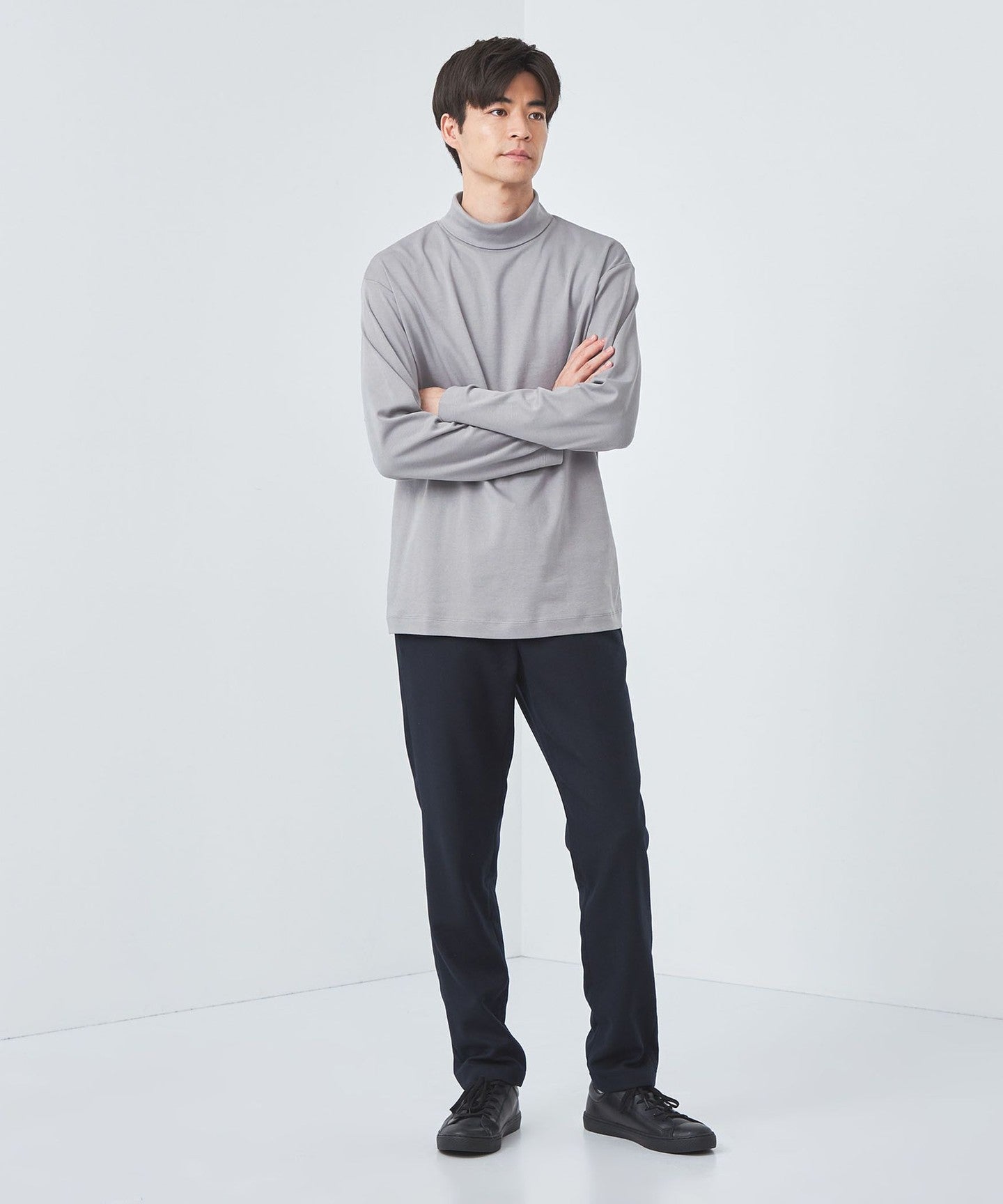 This is a turtleneck cut-and-sew with a regular silhouette.