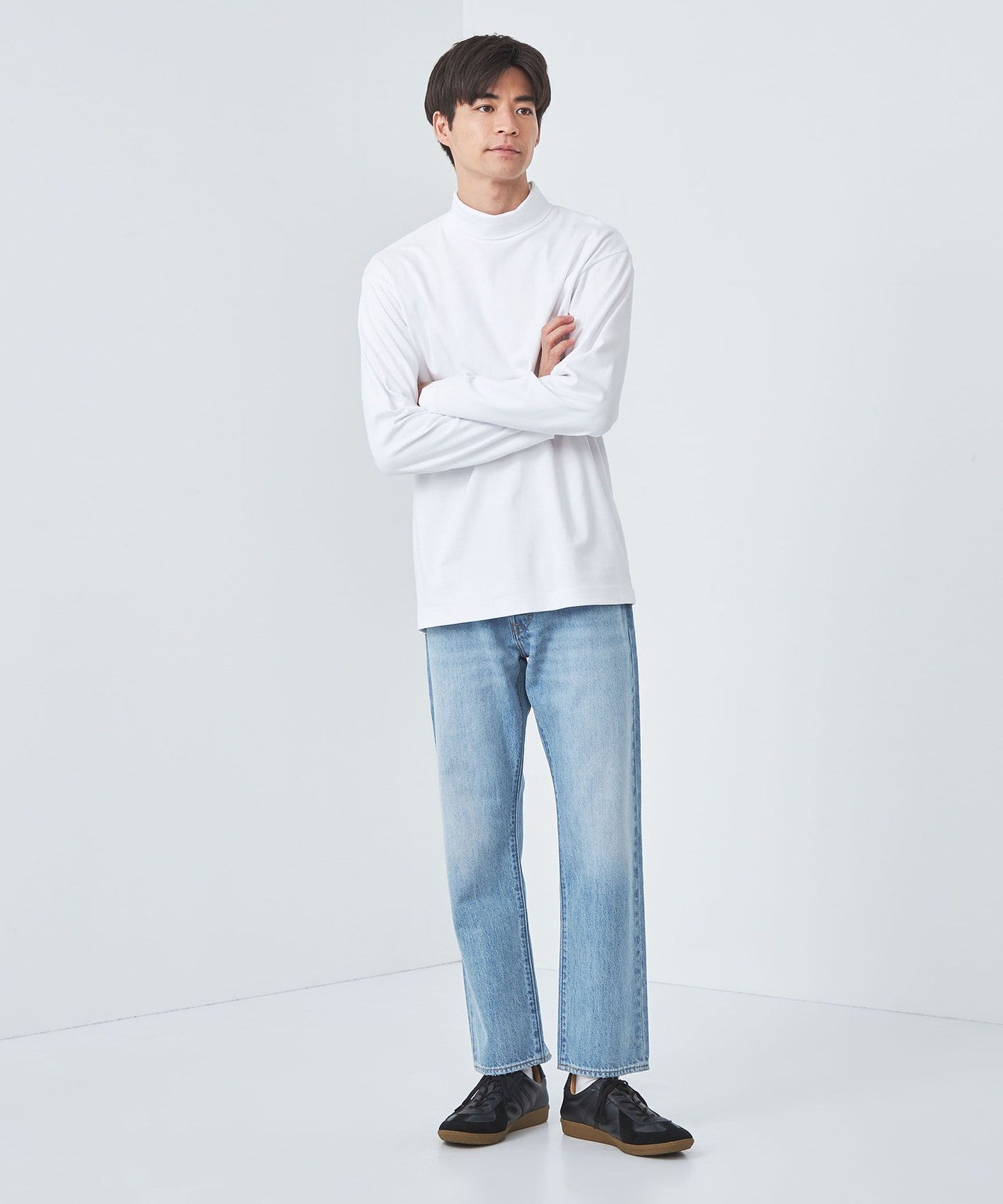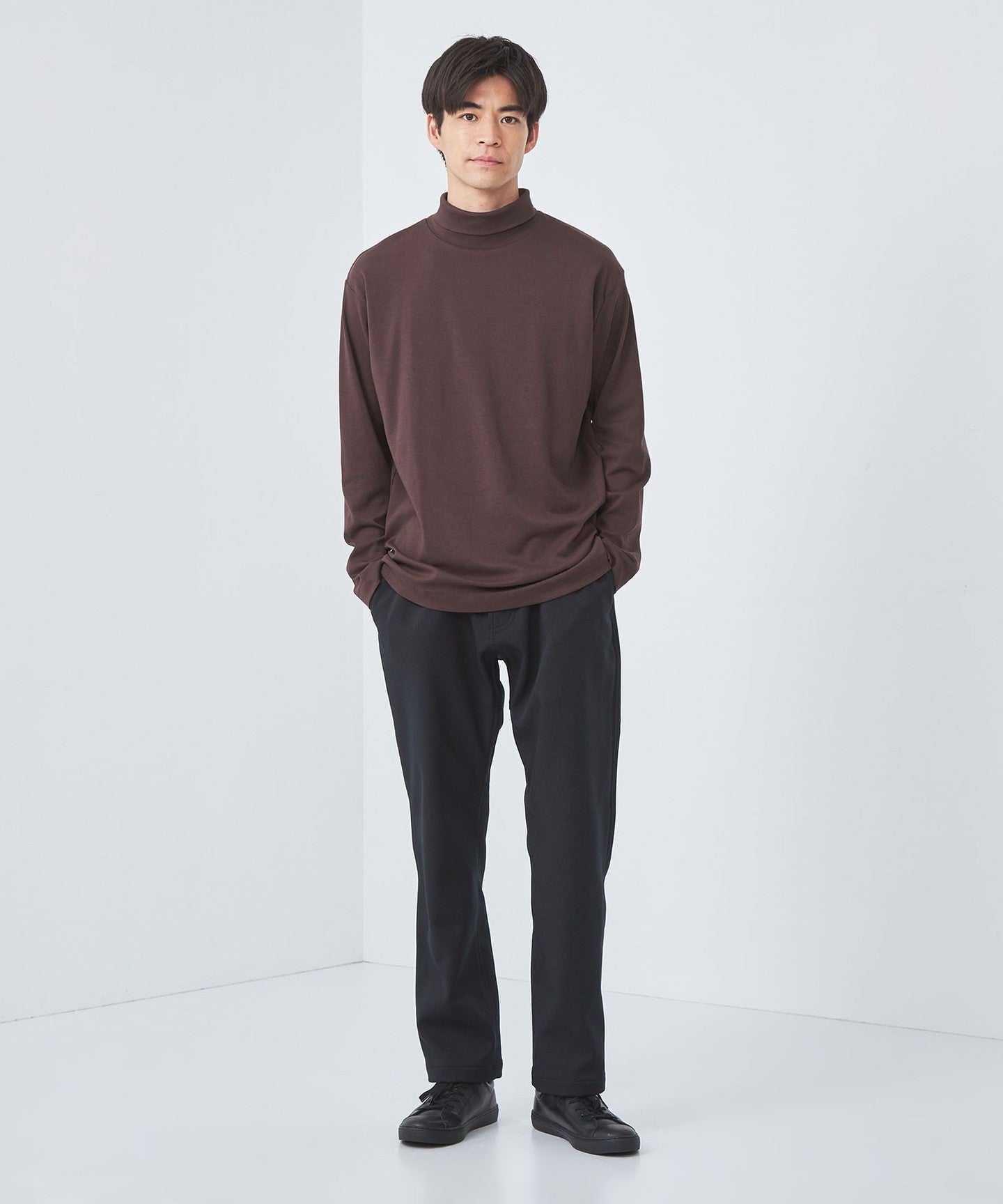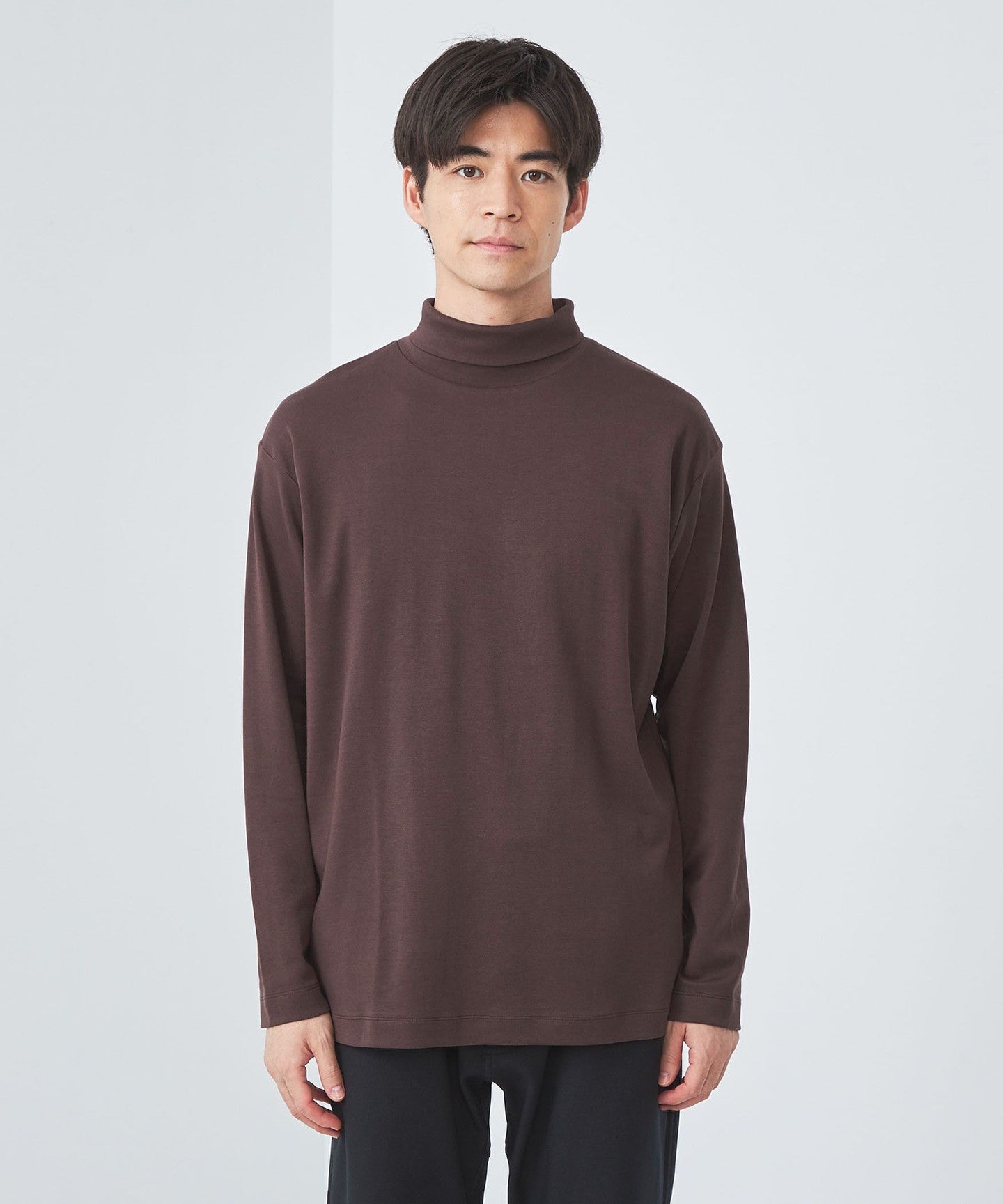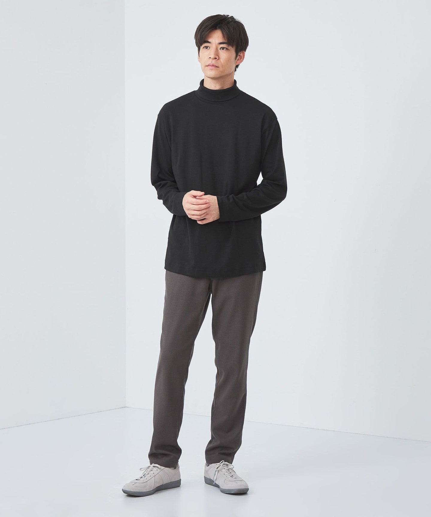 This is a turtleneck cut-and-sew with a regular silhouette.