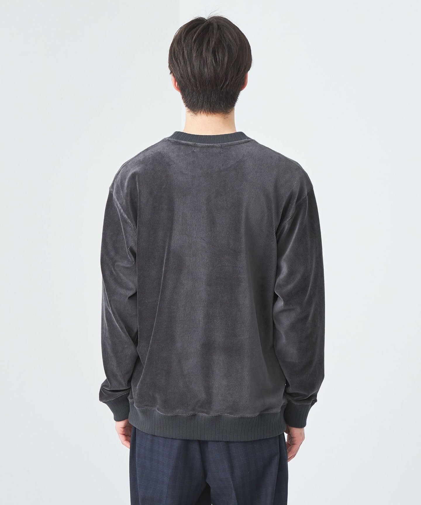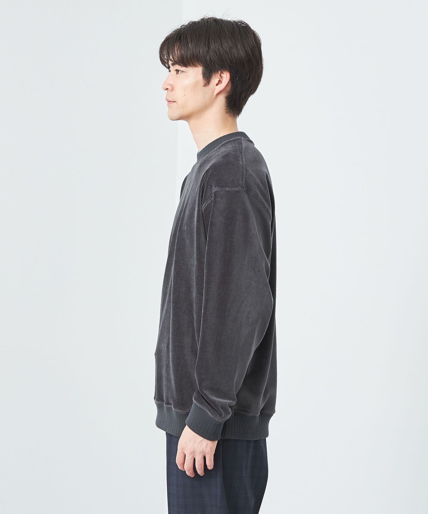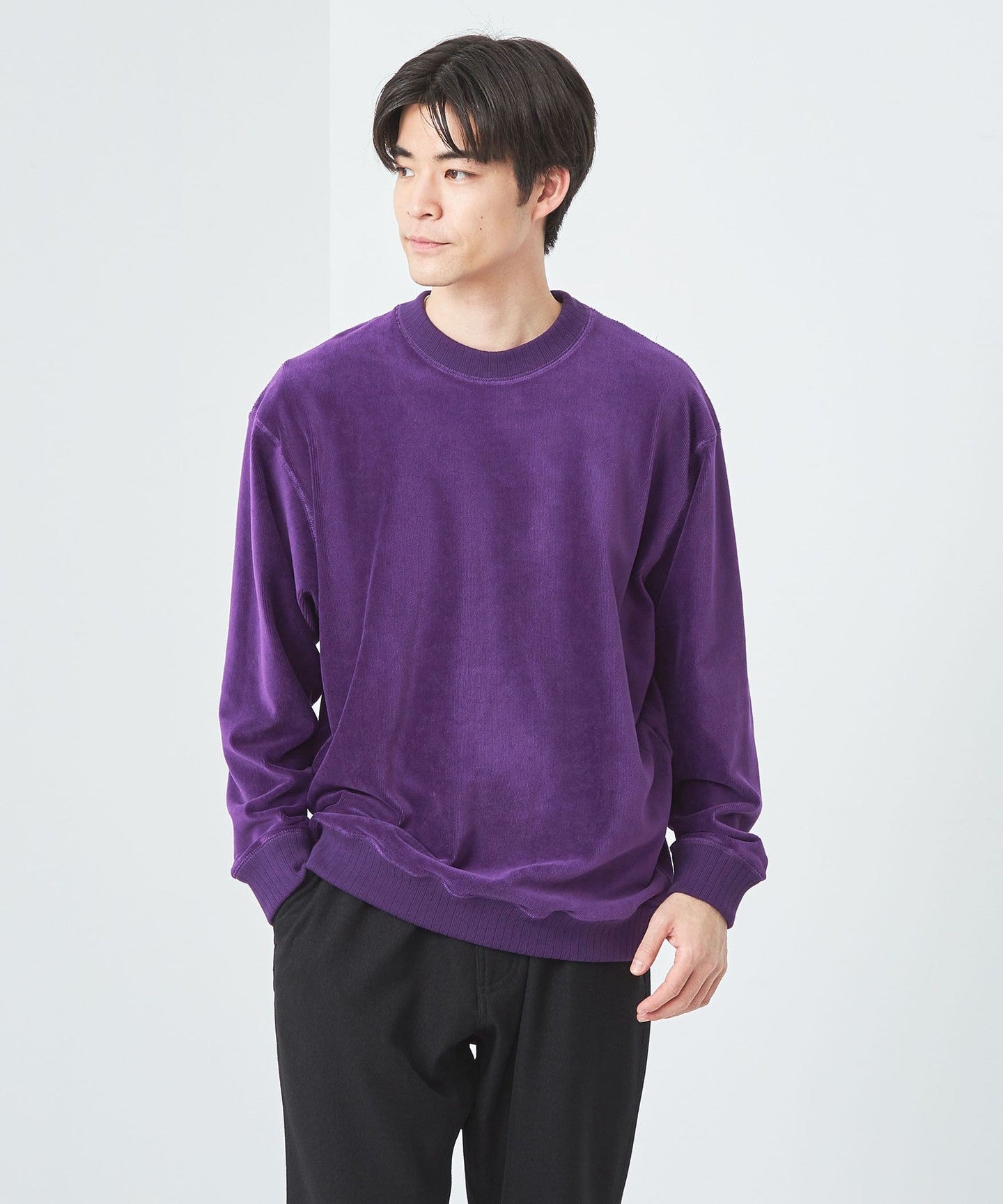 This is a crew neck cut-and-sew with a slightly loose silhouette.