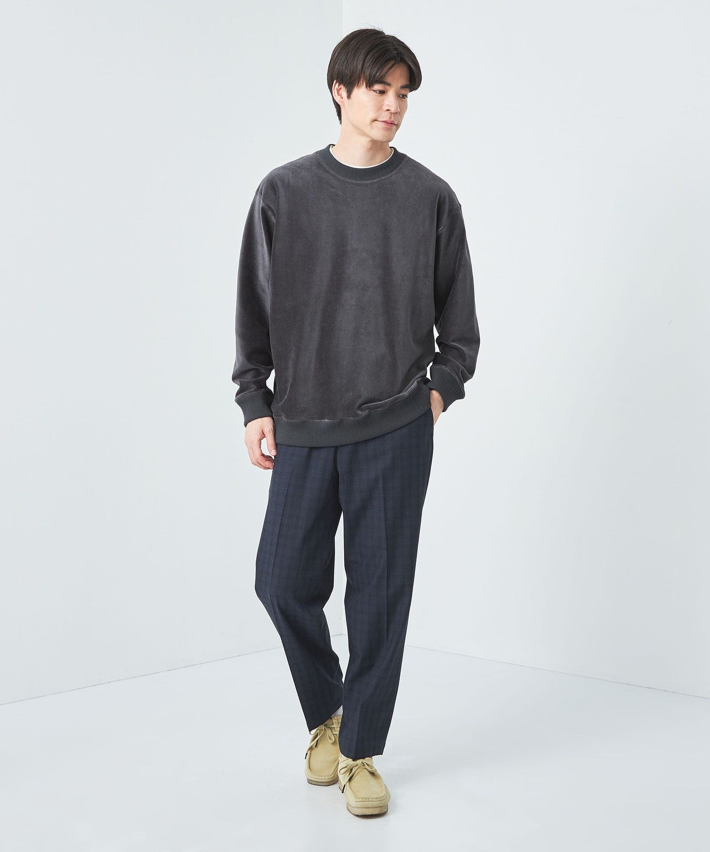 It matches a wide range of outfits, from a casual look that combines jeans with a down jacket to a more mature style that combines tapered pants with a smart coat.