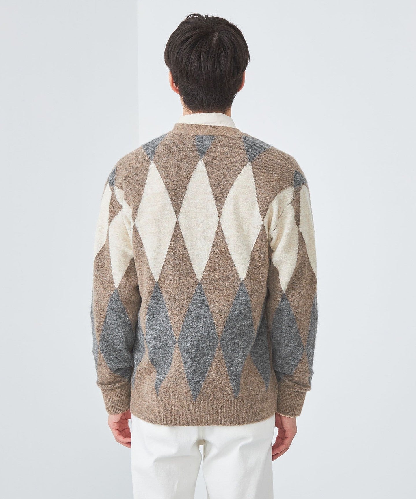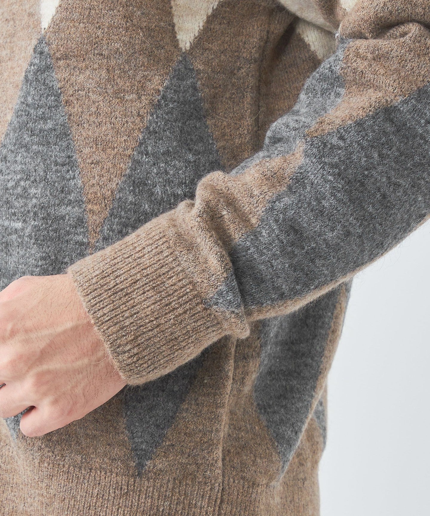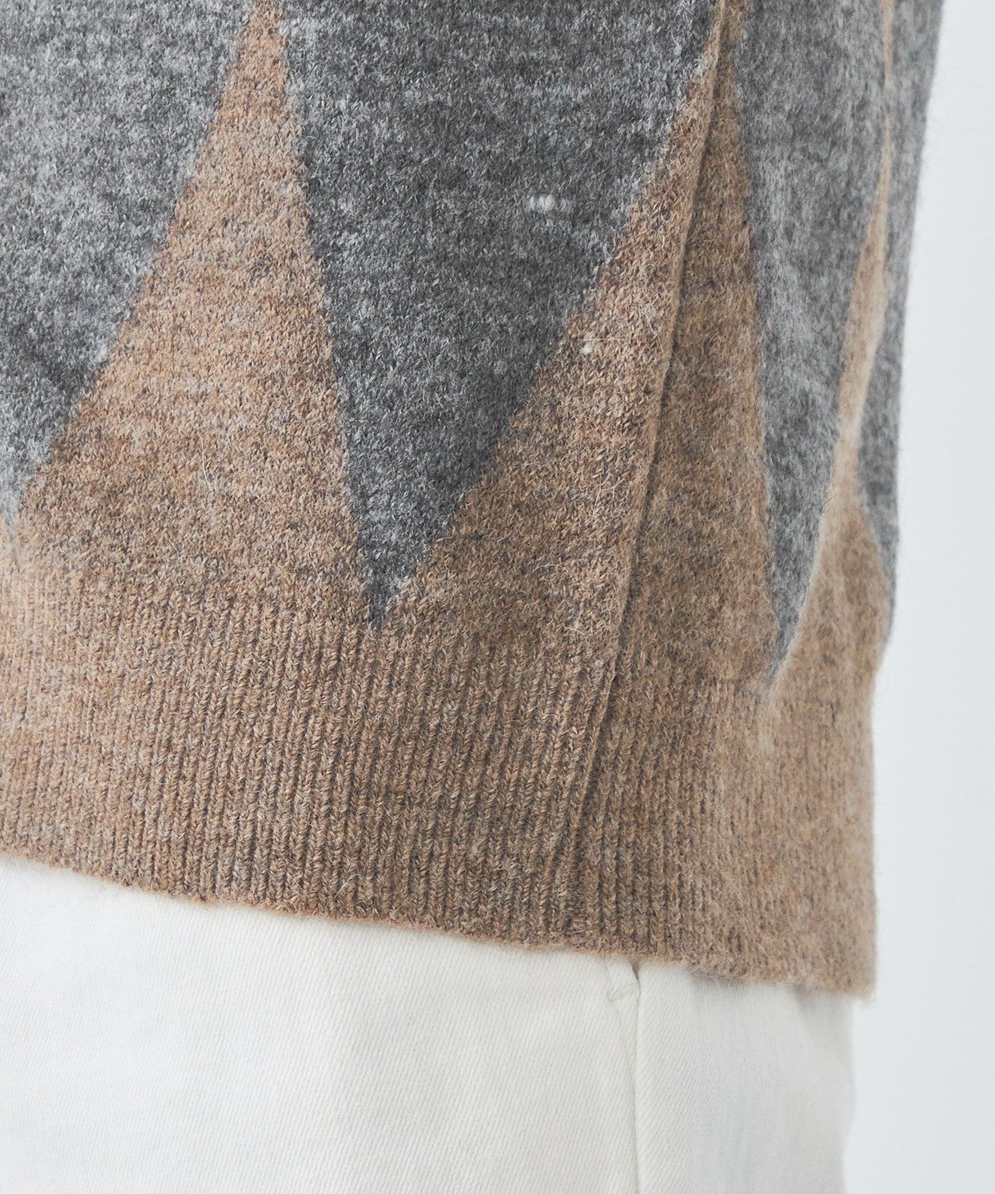 The diamond pattern expressed in intarsia is the highlight.