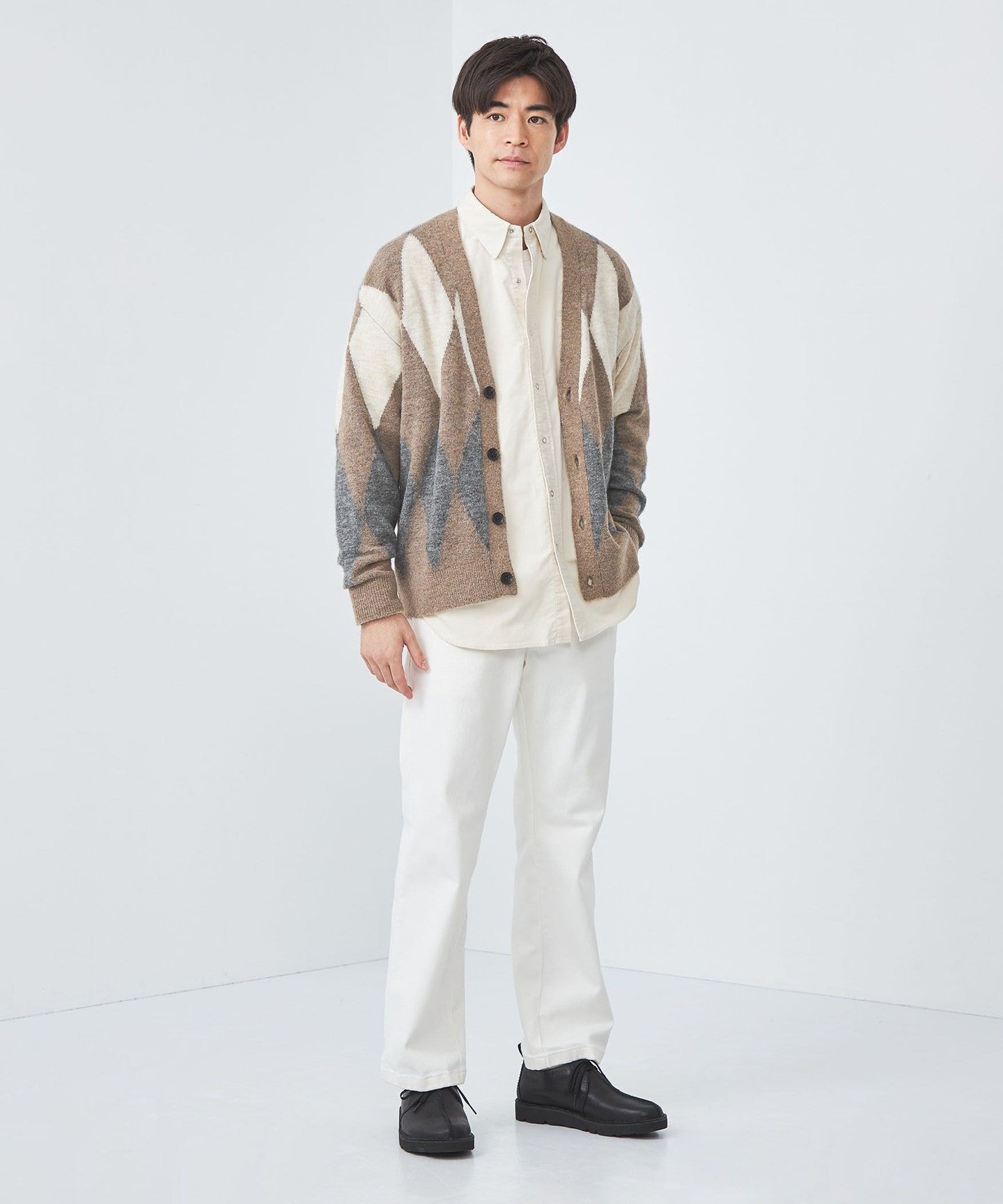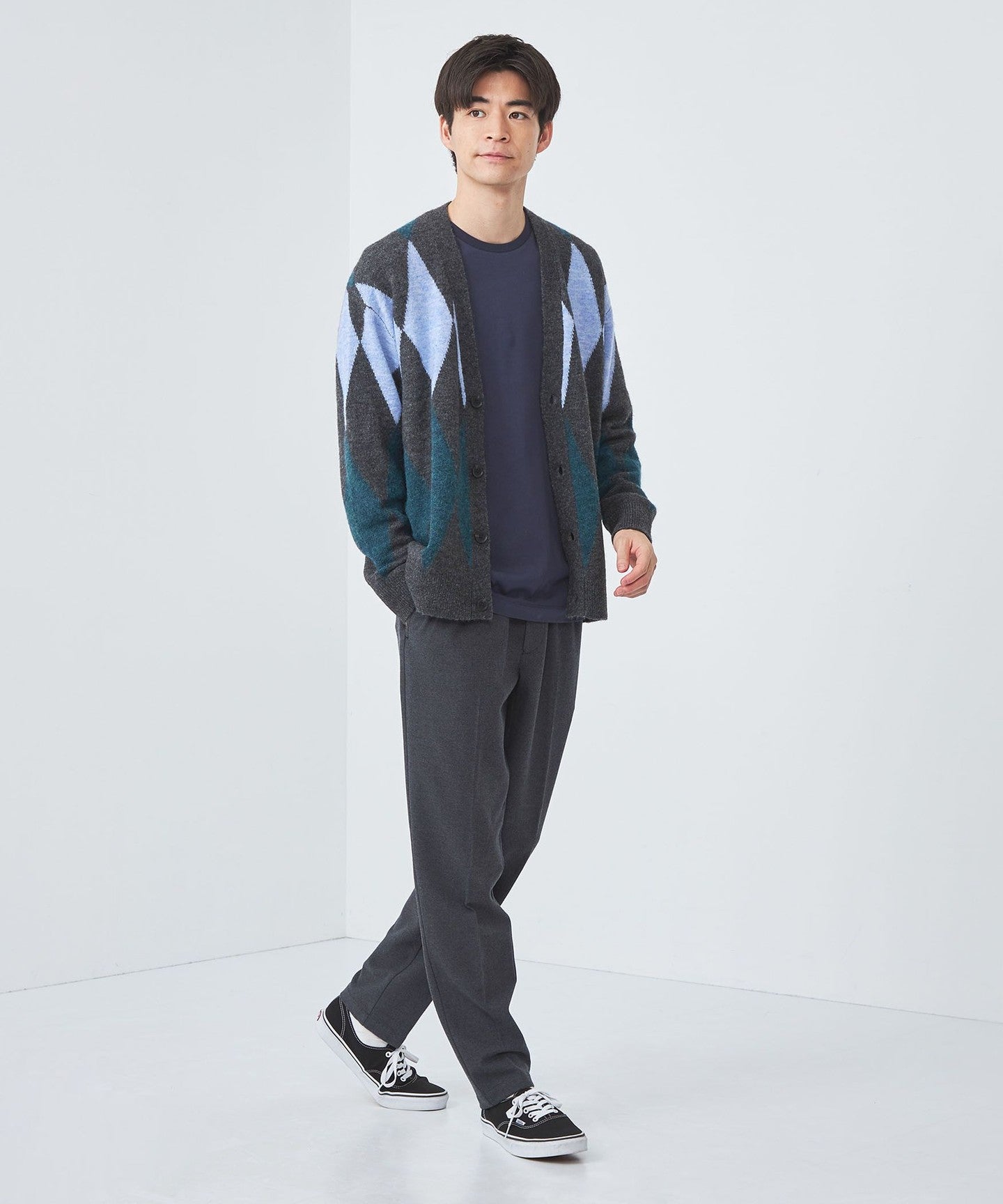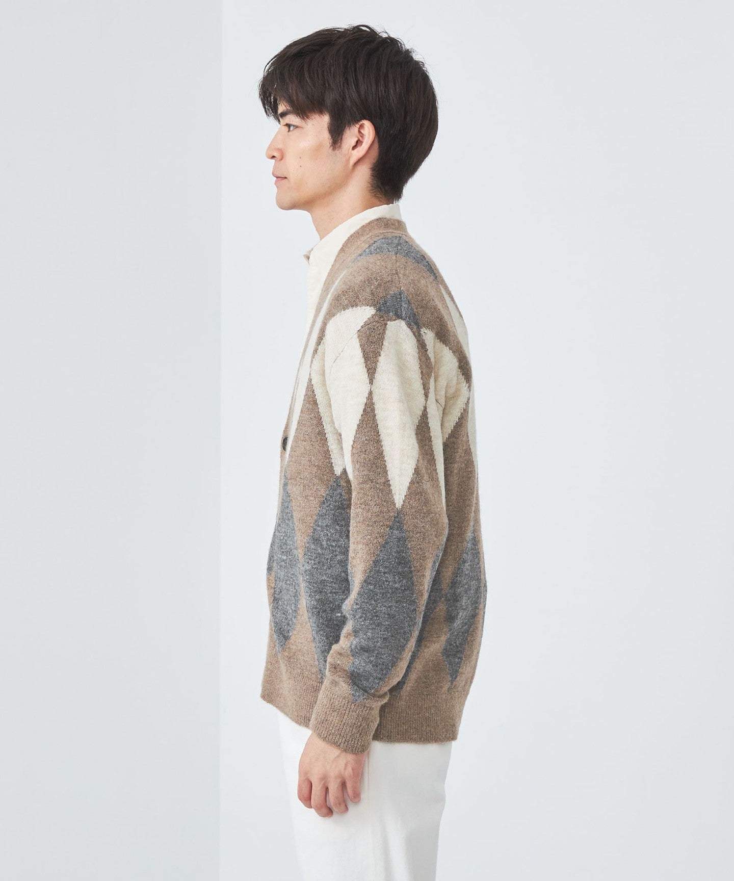 The diamond pattern expressed in intarsia is the highlight.