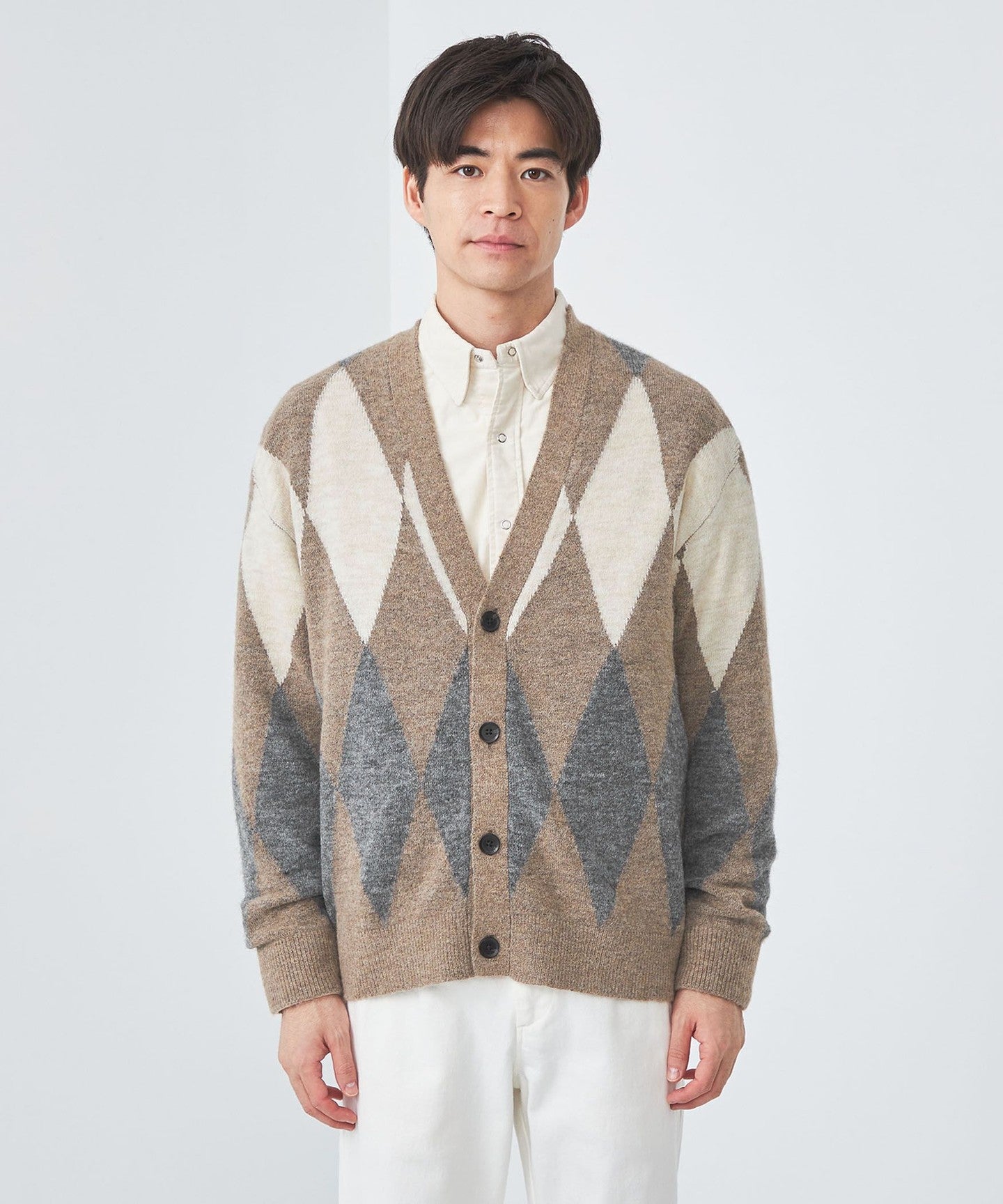 A V-neck cardigan with a natural fit.