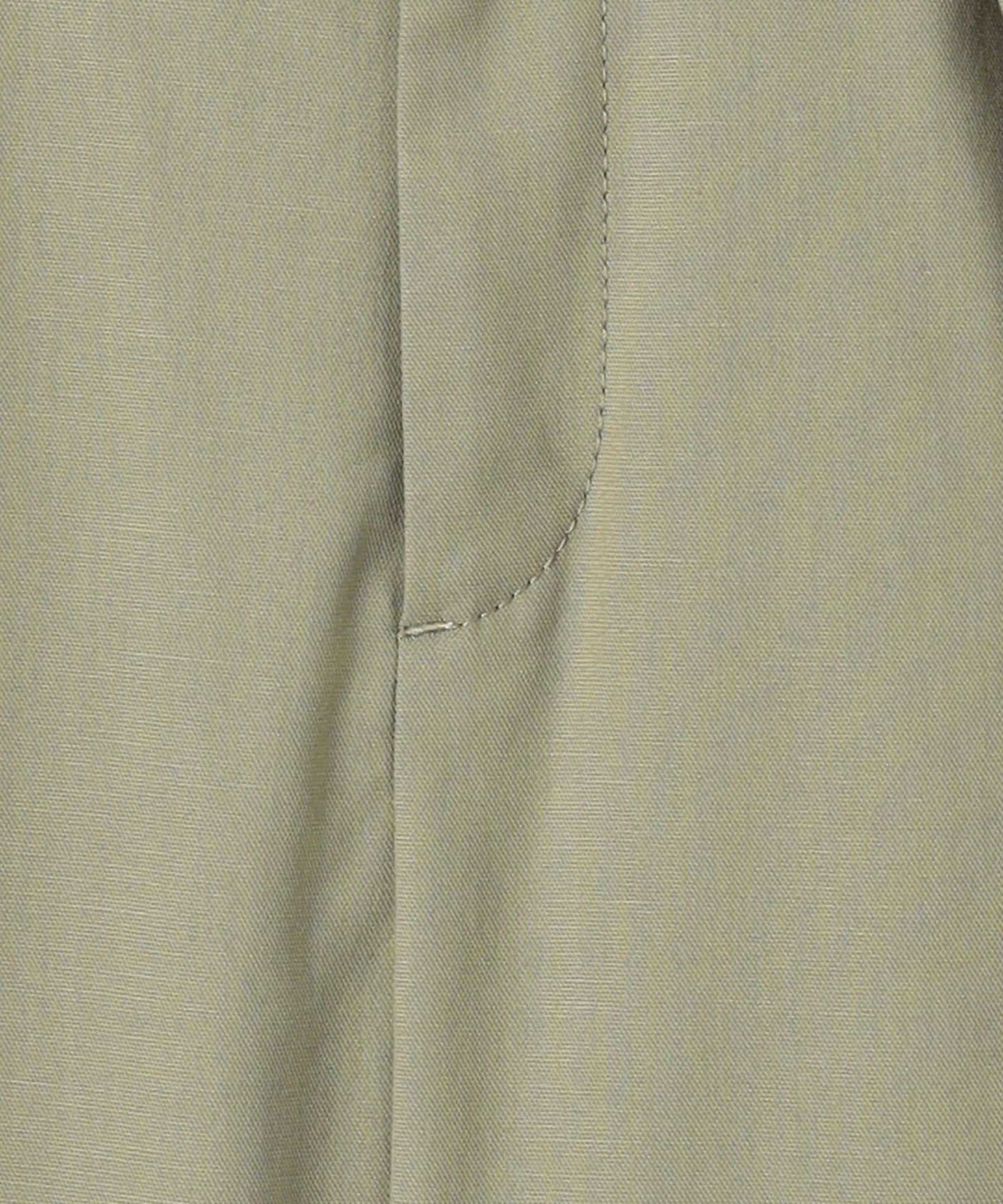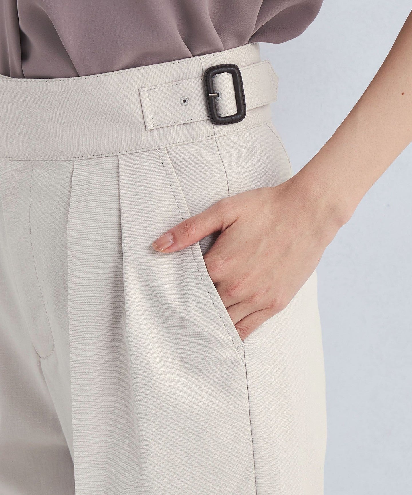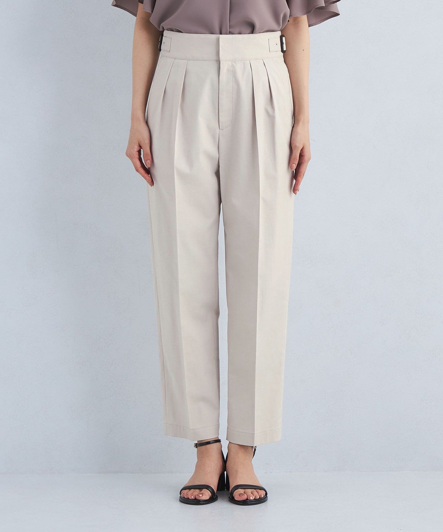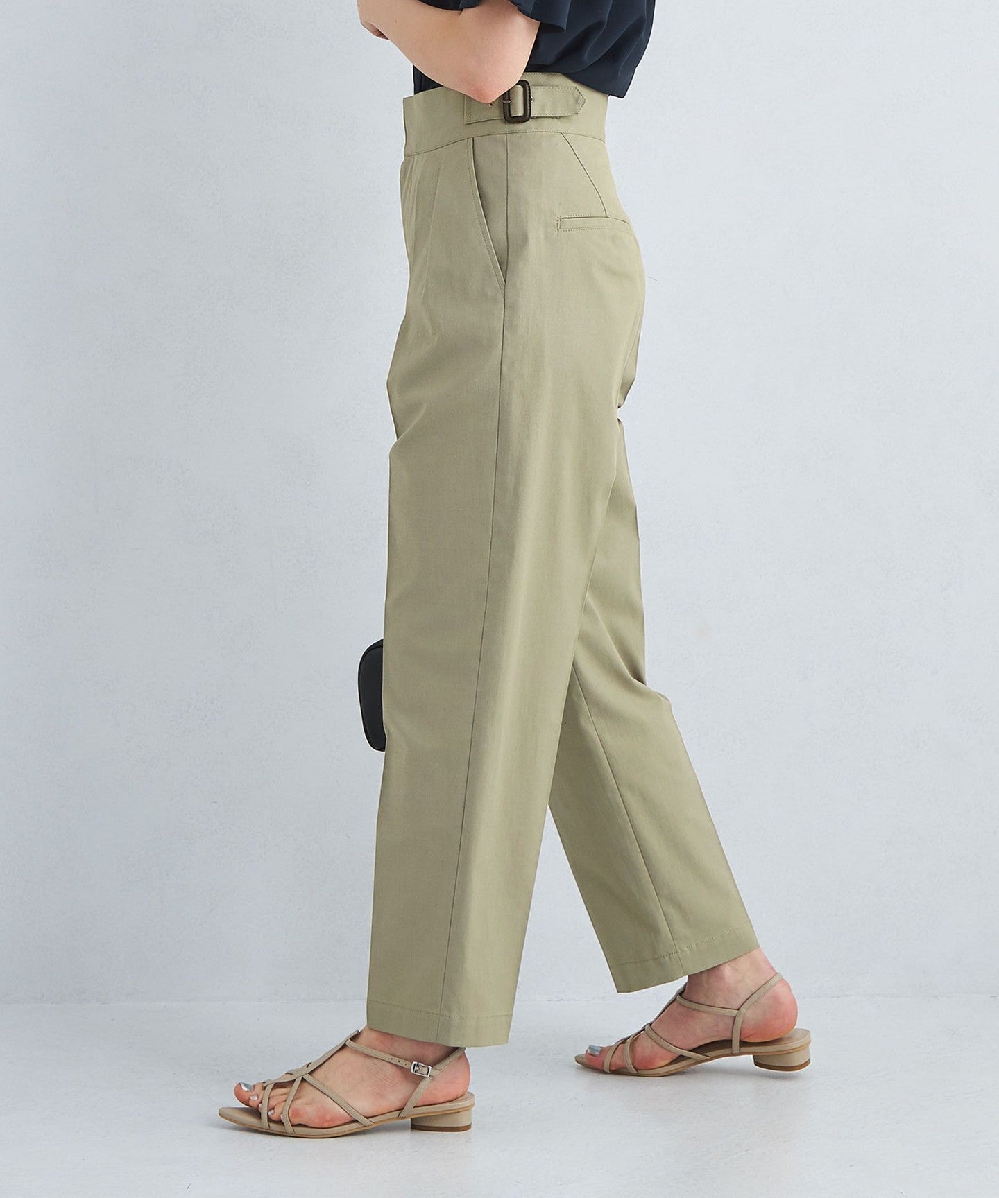 These pants have a loose fit around the waist and a silhouette that gradually tapers towards the hem.