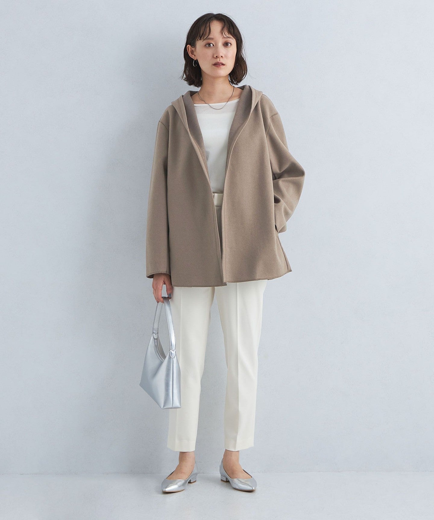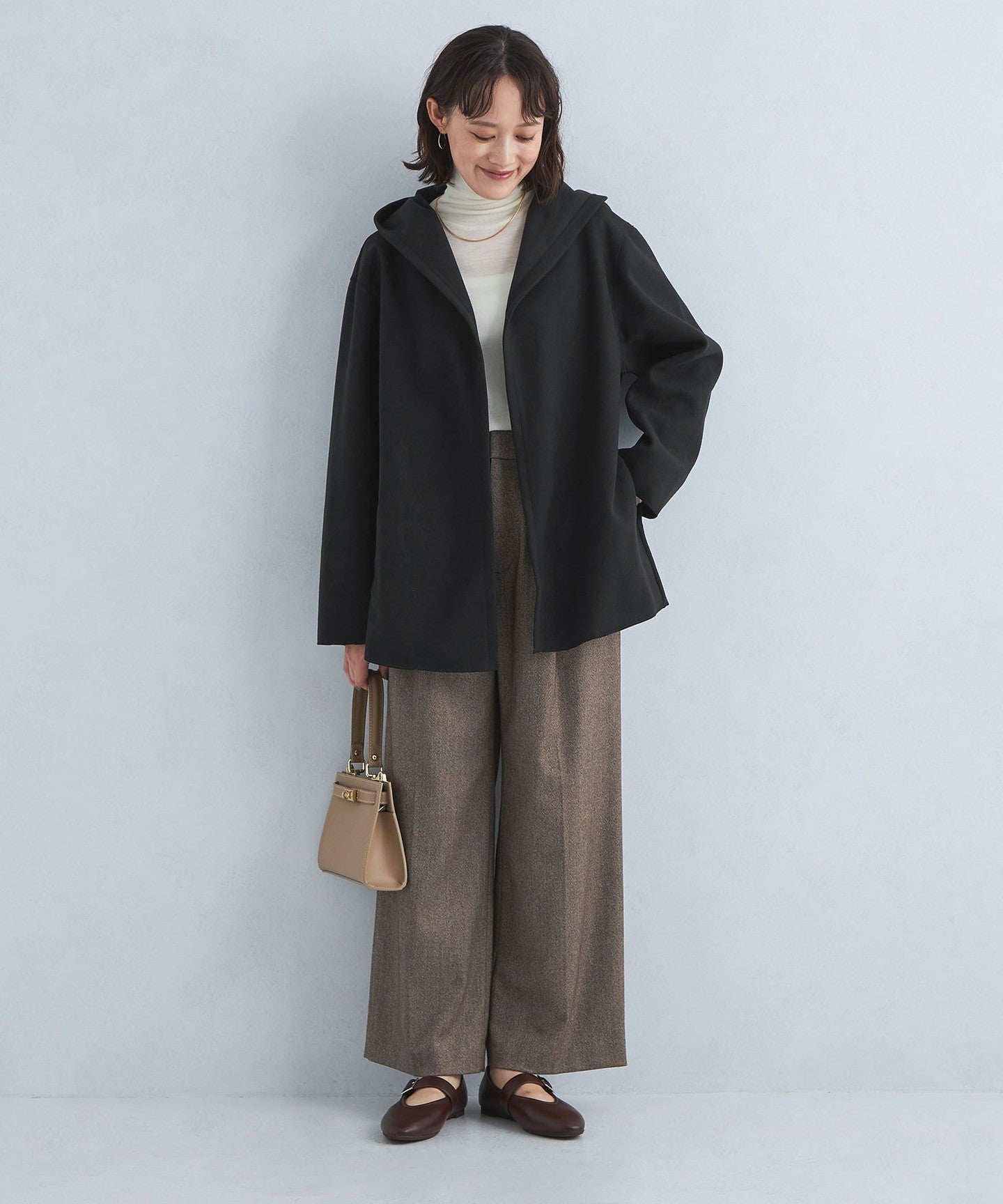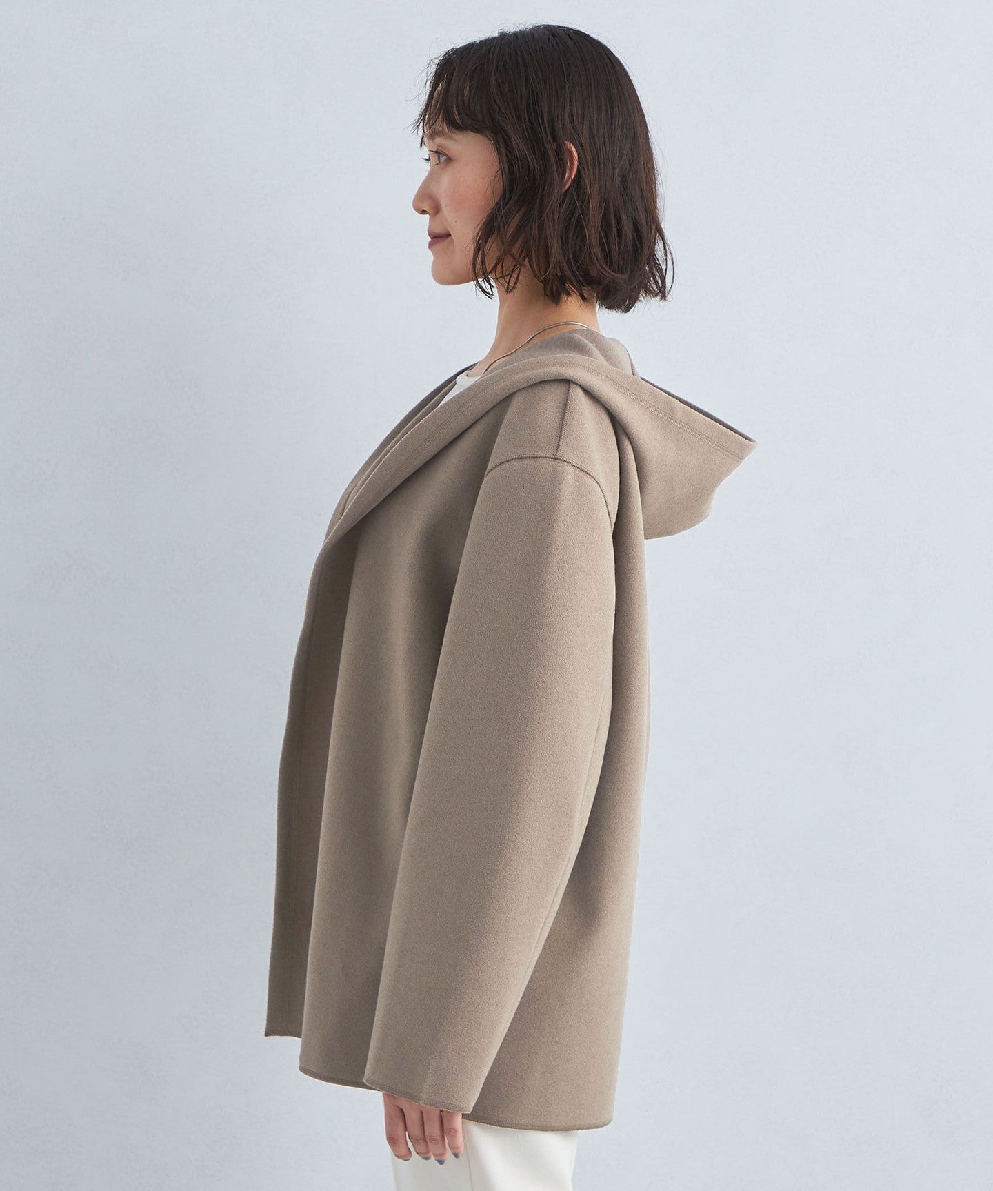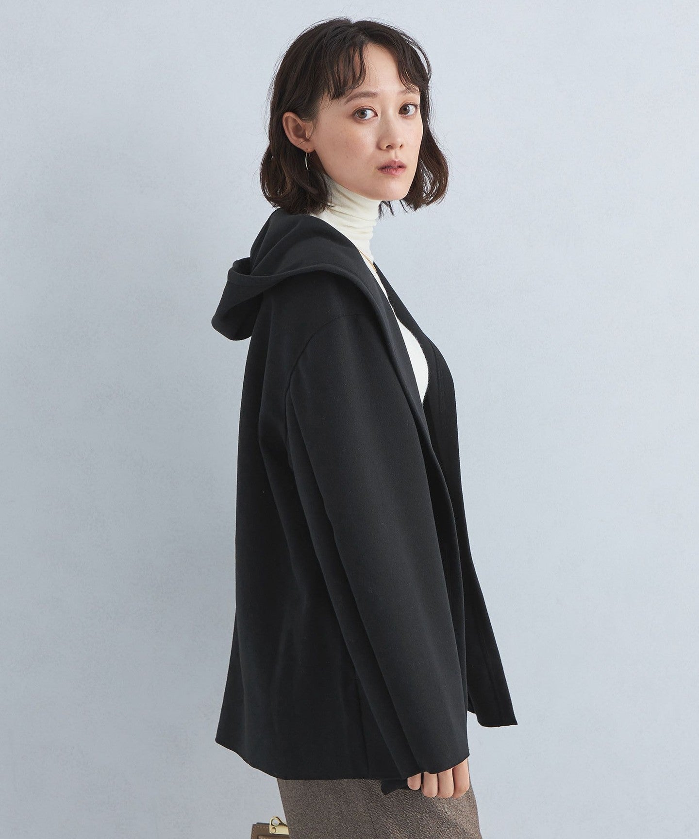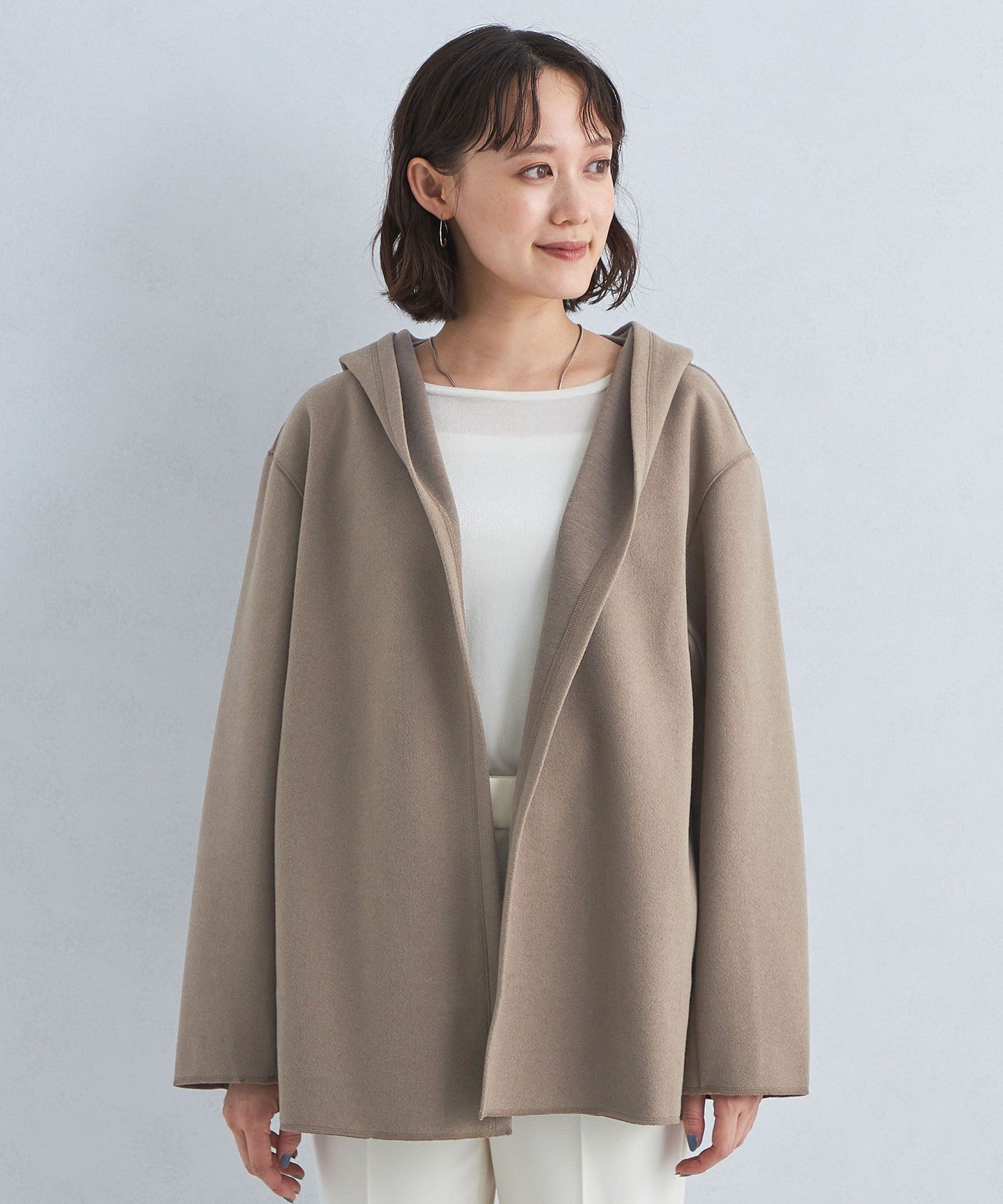 A hooded cardigan that can be worn casually and easily.