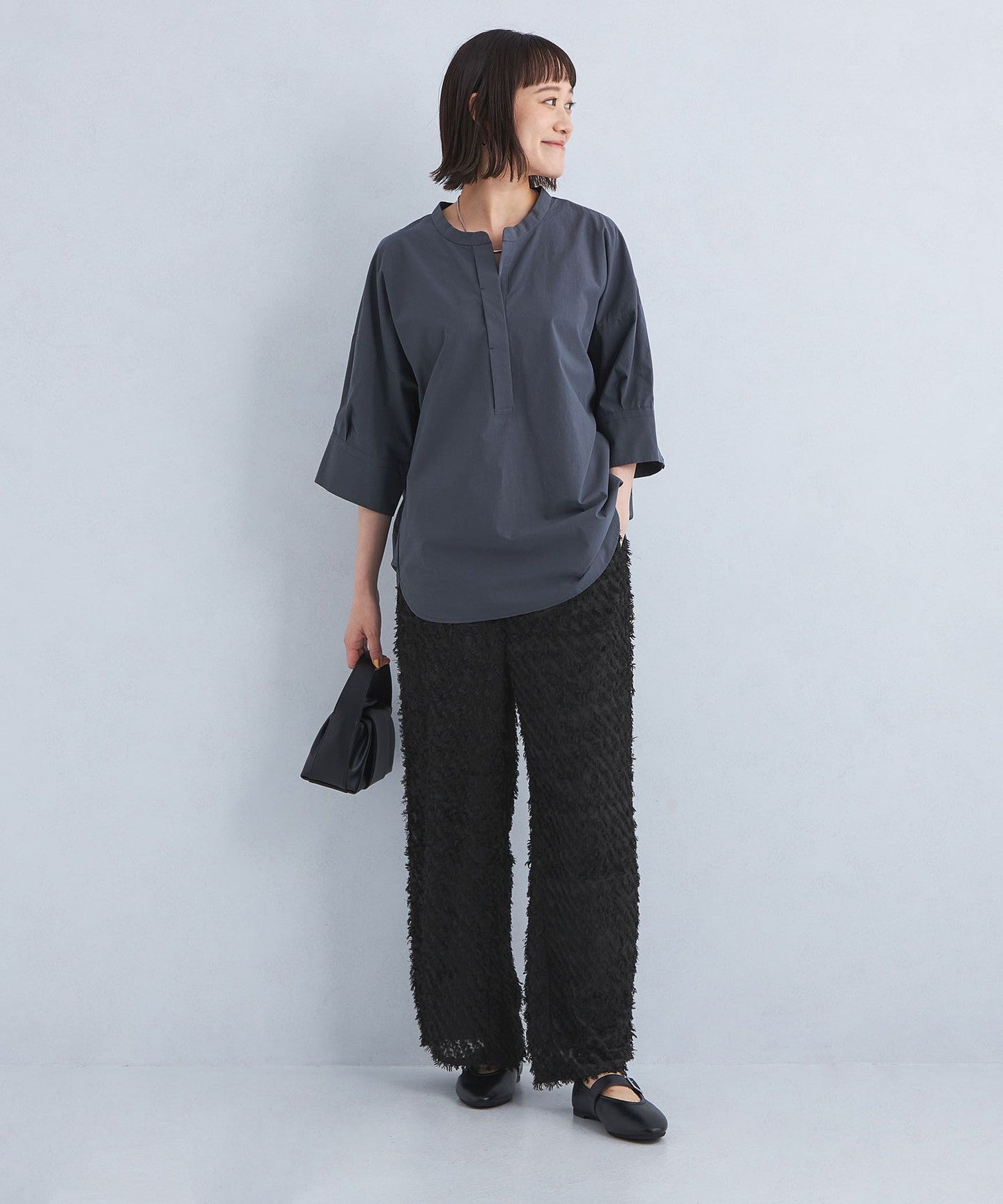 It can be worn casually with a cut-and-sew top, or paired with a blouse for a feminine look.