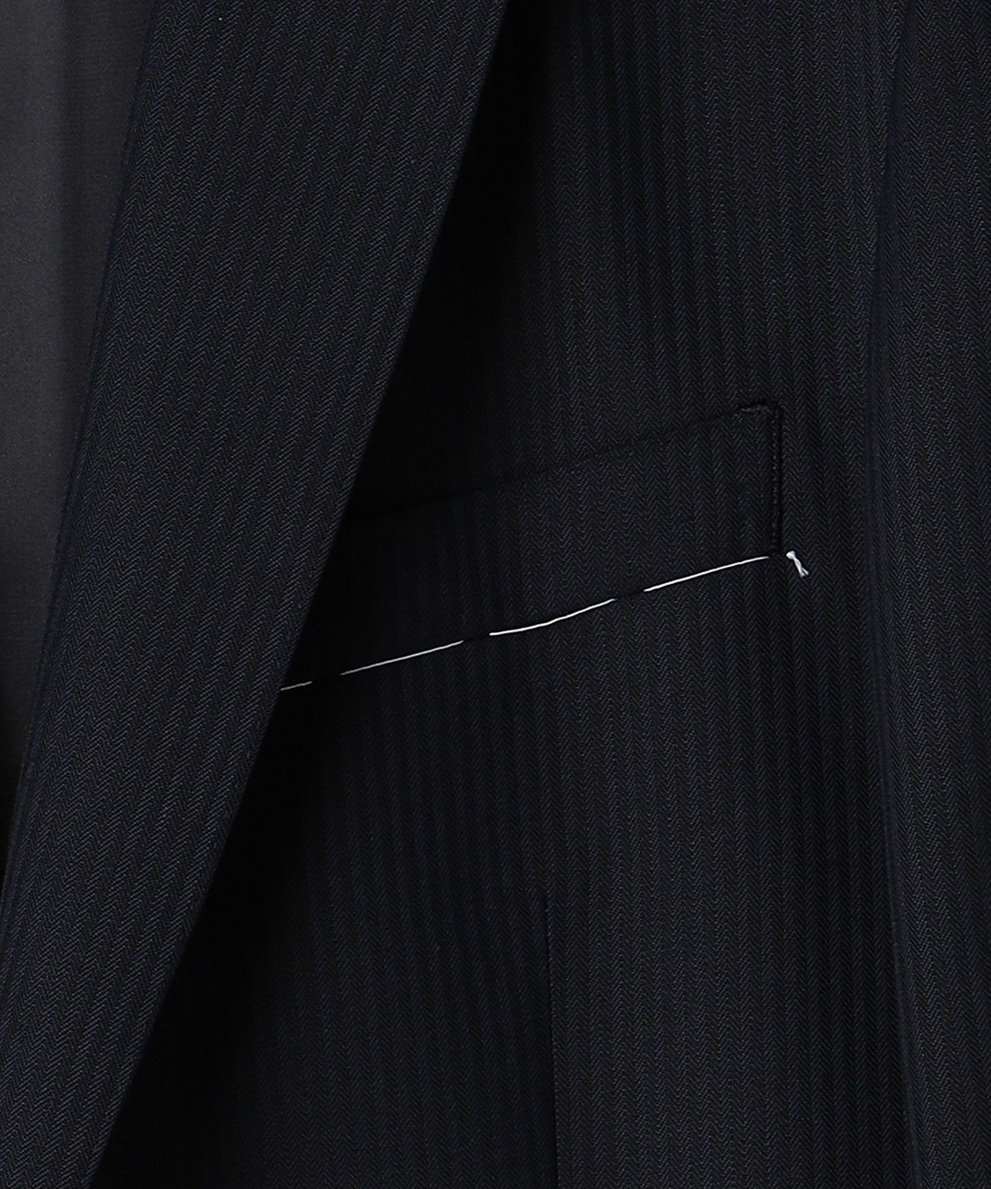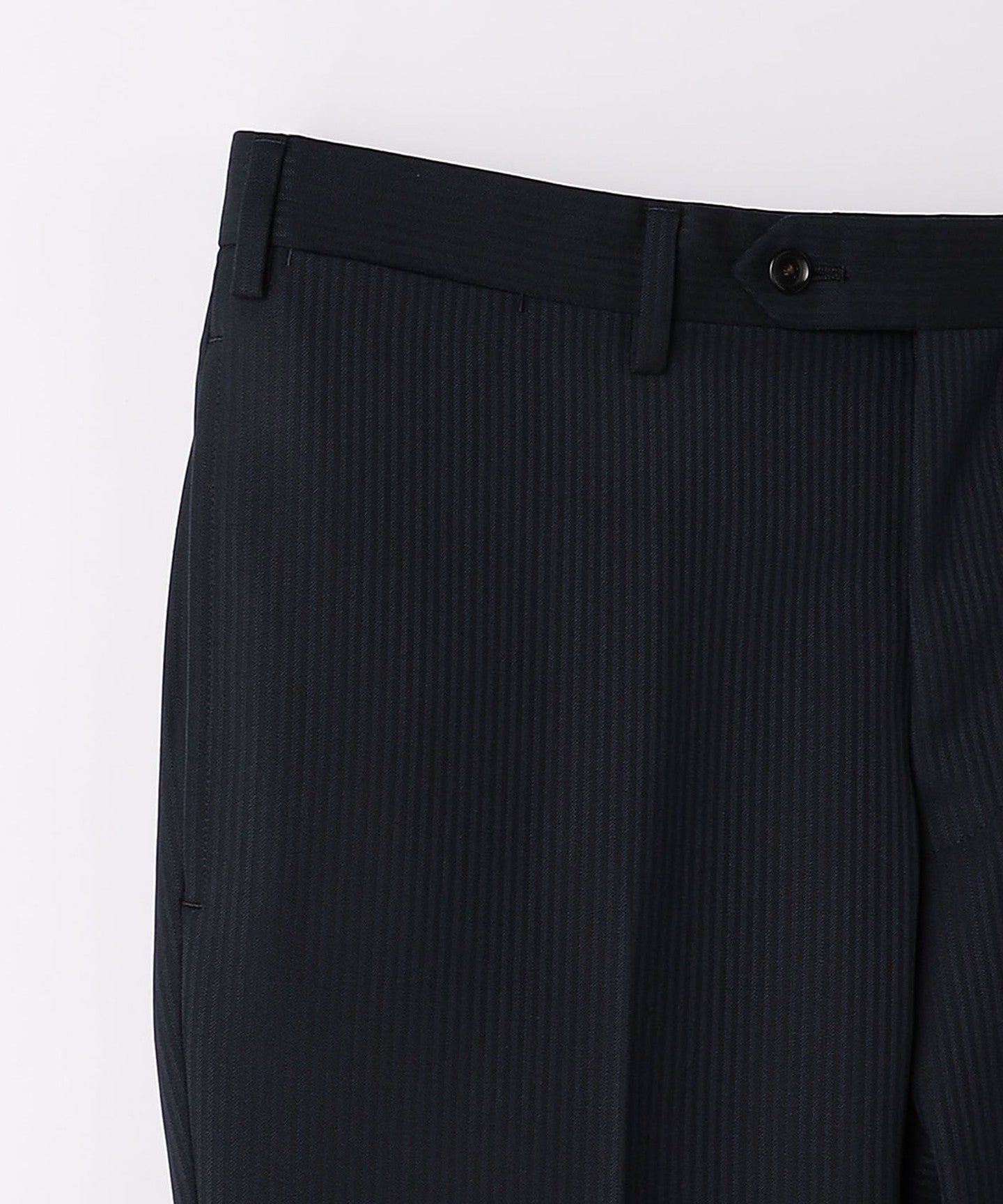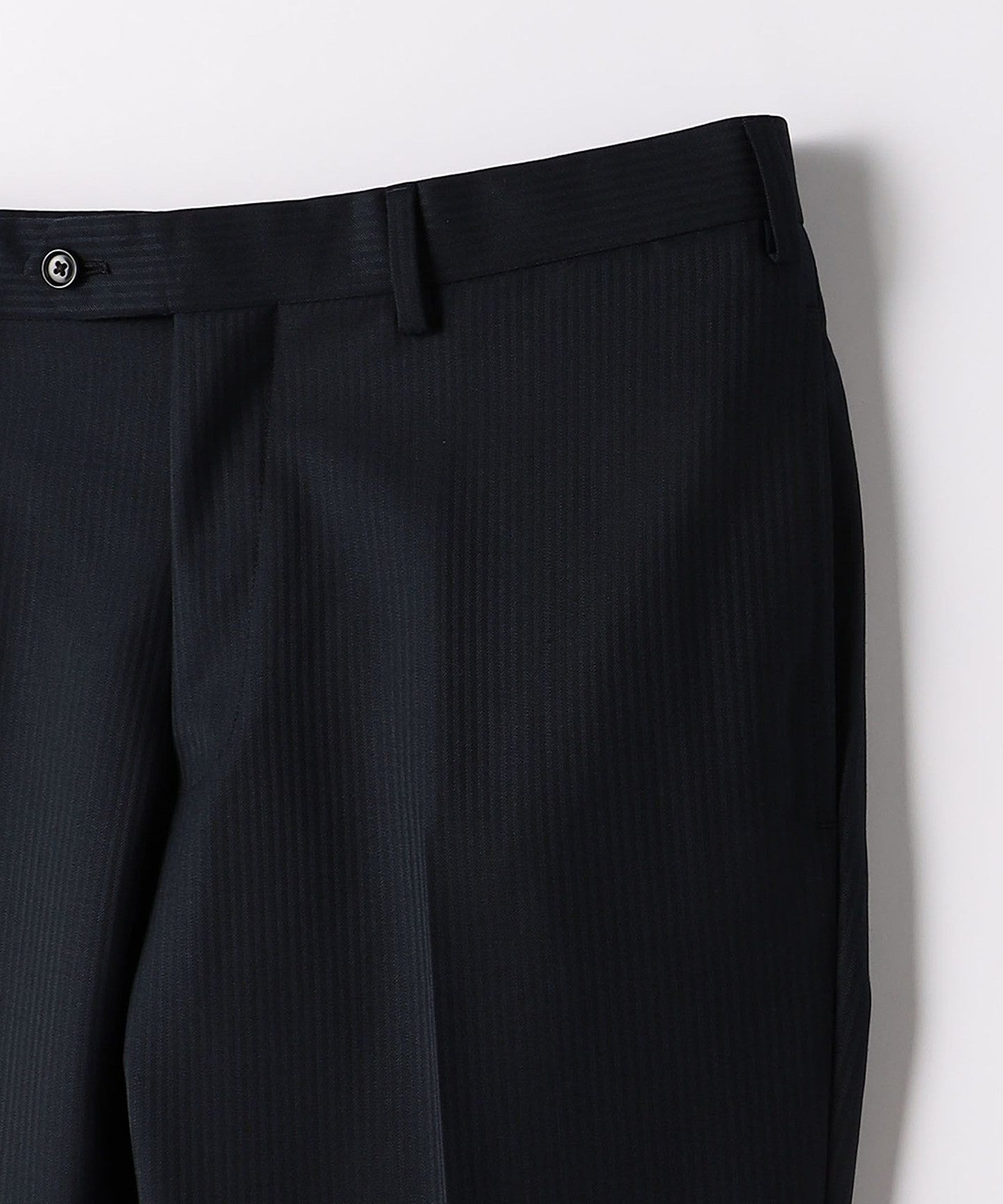 A subtle shadow stripe suit with a sophisticated look. Standard two-button and notch lapel. JACKET And a clean, no-pleat look PANTS The design is suitable for people of all ages and is also suitable for business occasions.