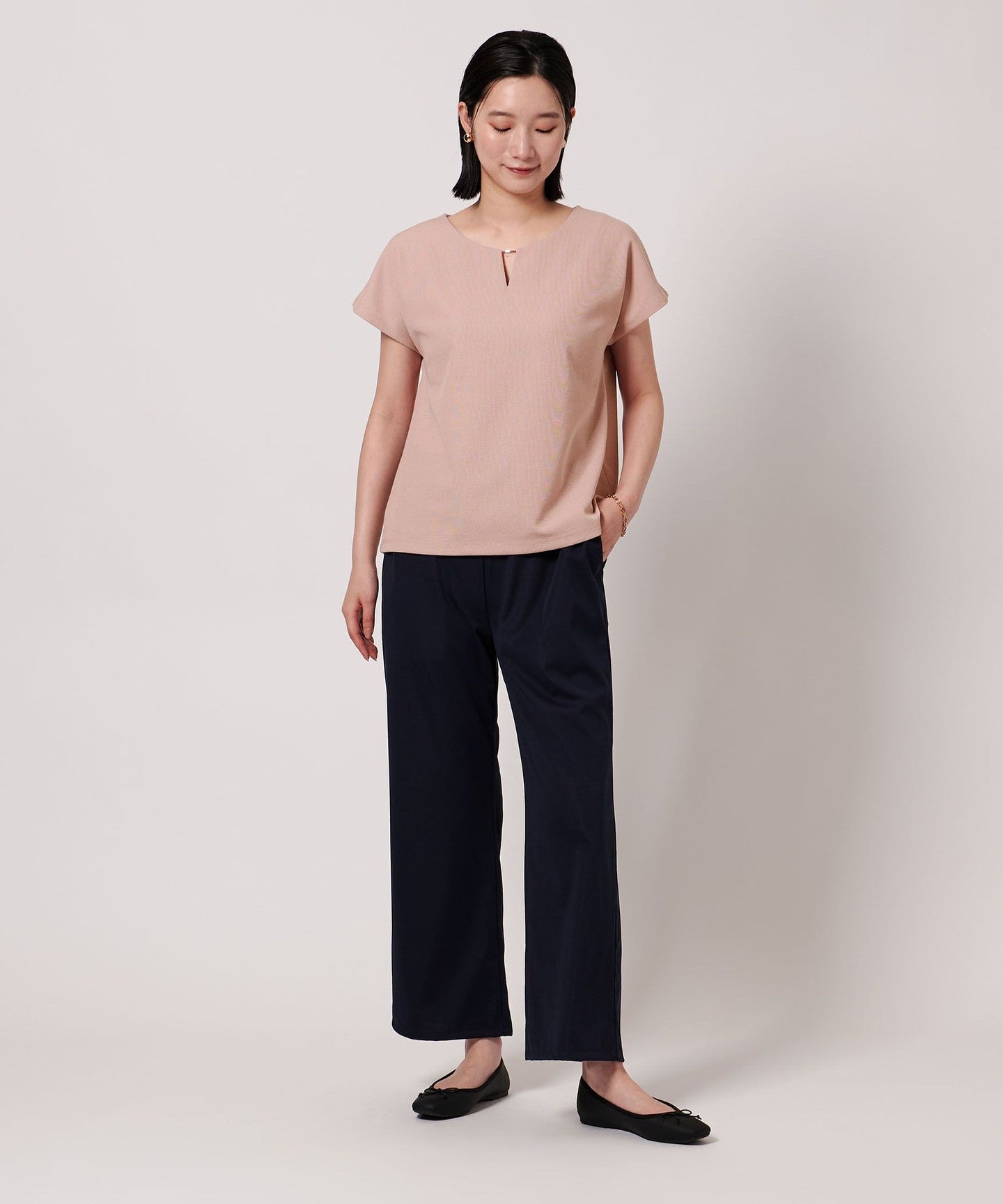 When you're off work, it also looks great when worn casually with relaxed wide pants and sandals.