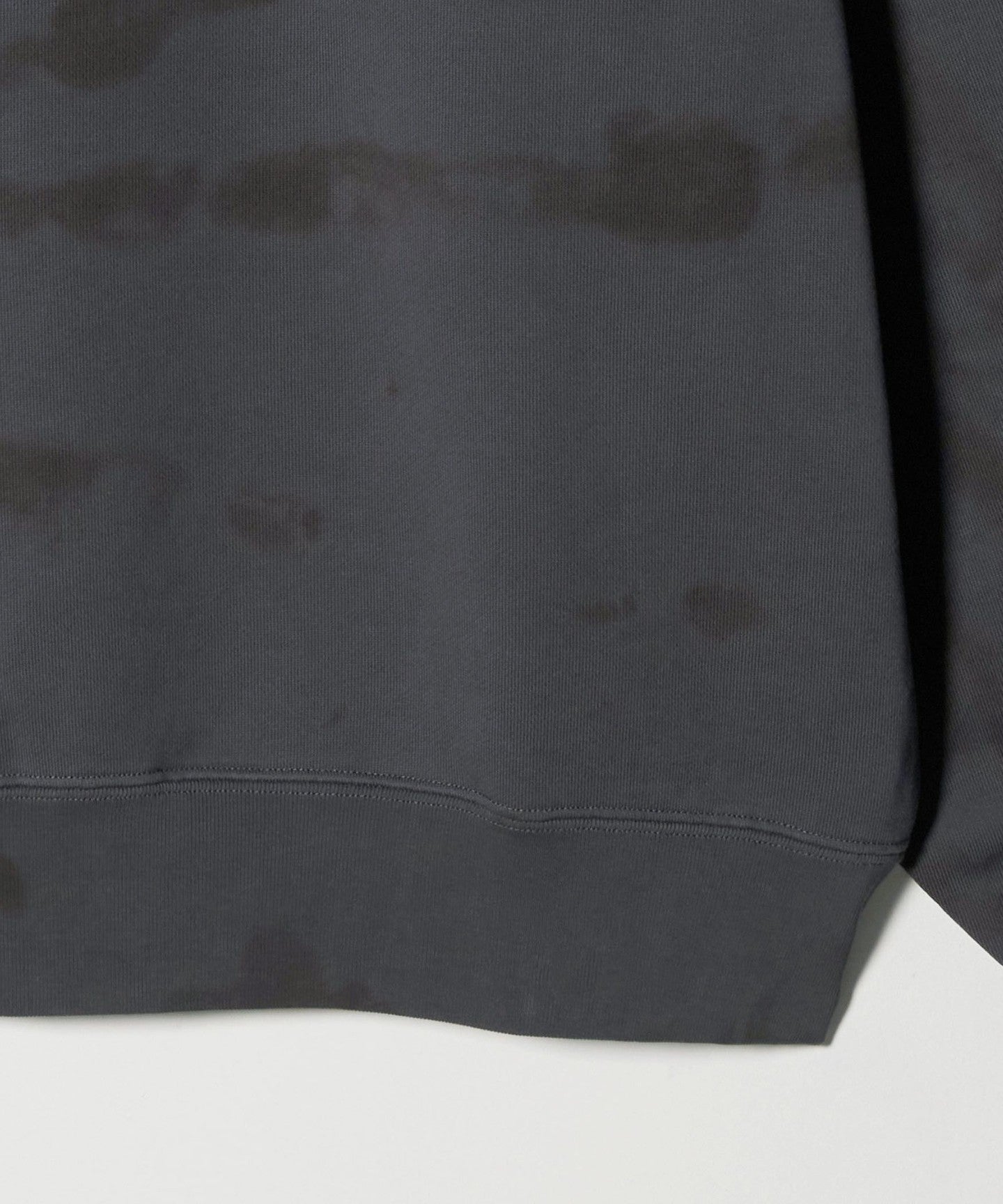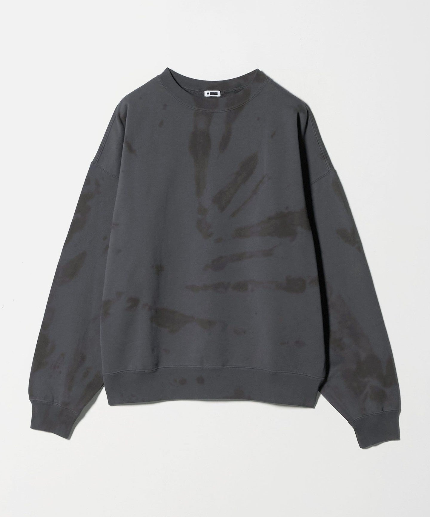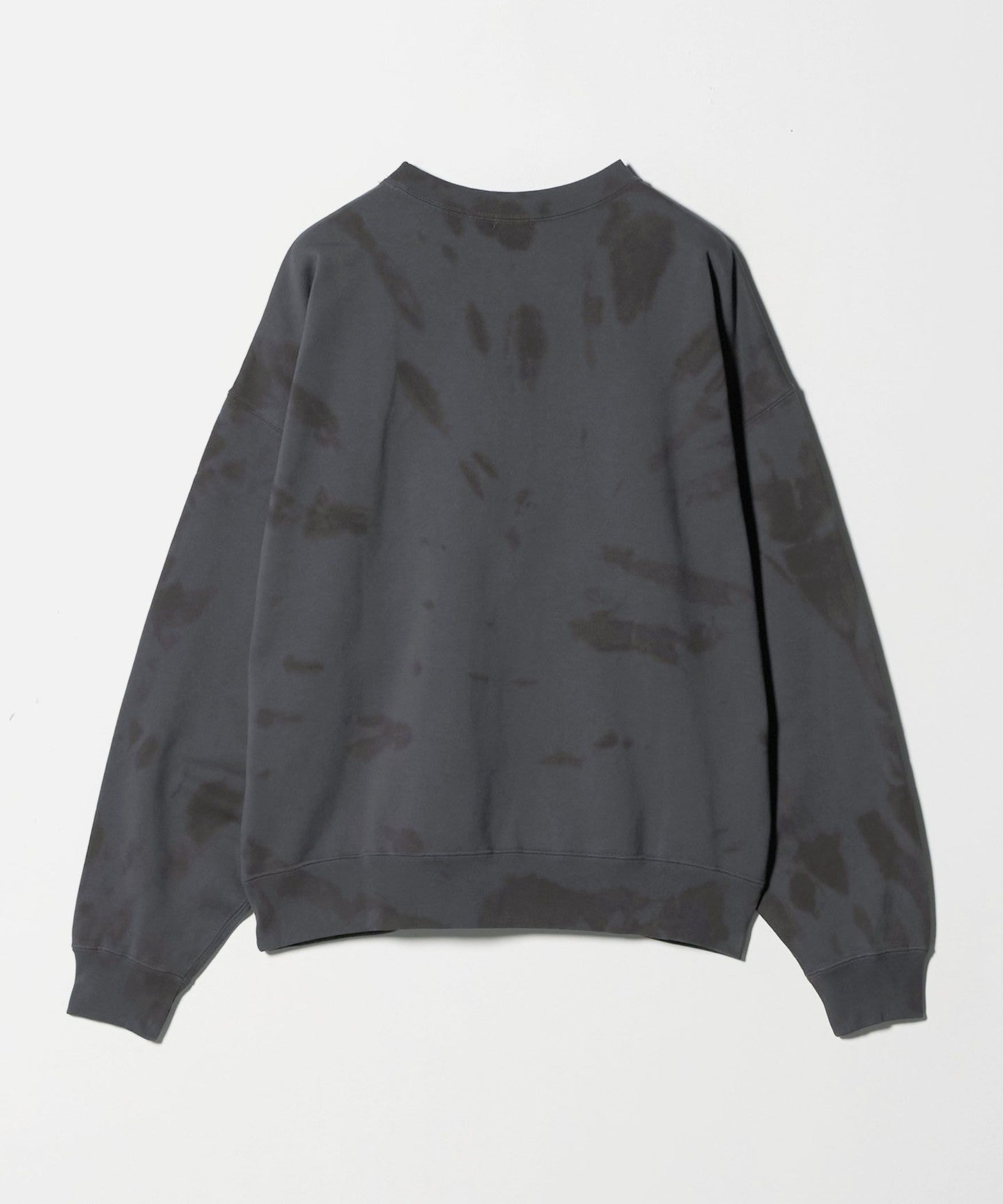 This sweatshirt pullover's eye-catching coloring and spiral pattern evokes a black hole. The clean texture of the mercerized finish and the rough dyed pattern add nuance to create a dynamic, casual feel, creating a fresh look. The relaxed, wide silhouette is cinched in with ribbing to create a rounded body, creating a comfortable balance that creates a sharp look. It adds just the right amount of casualness and impact to your outfit, leading to a free and unpretentious urban style.