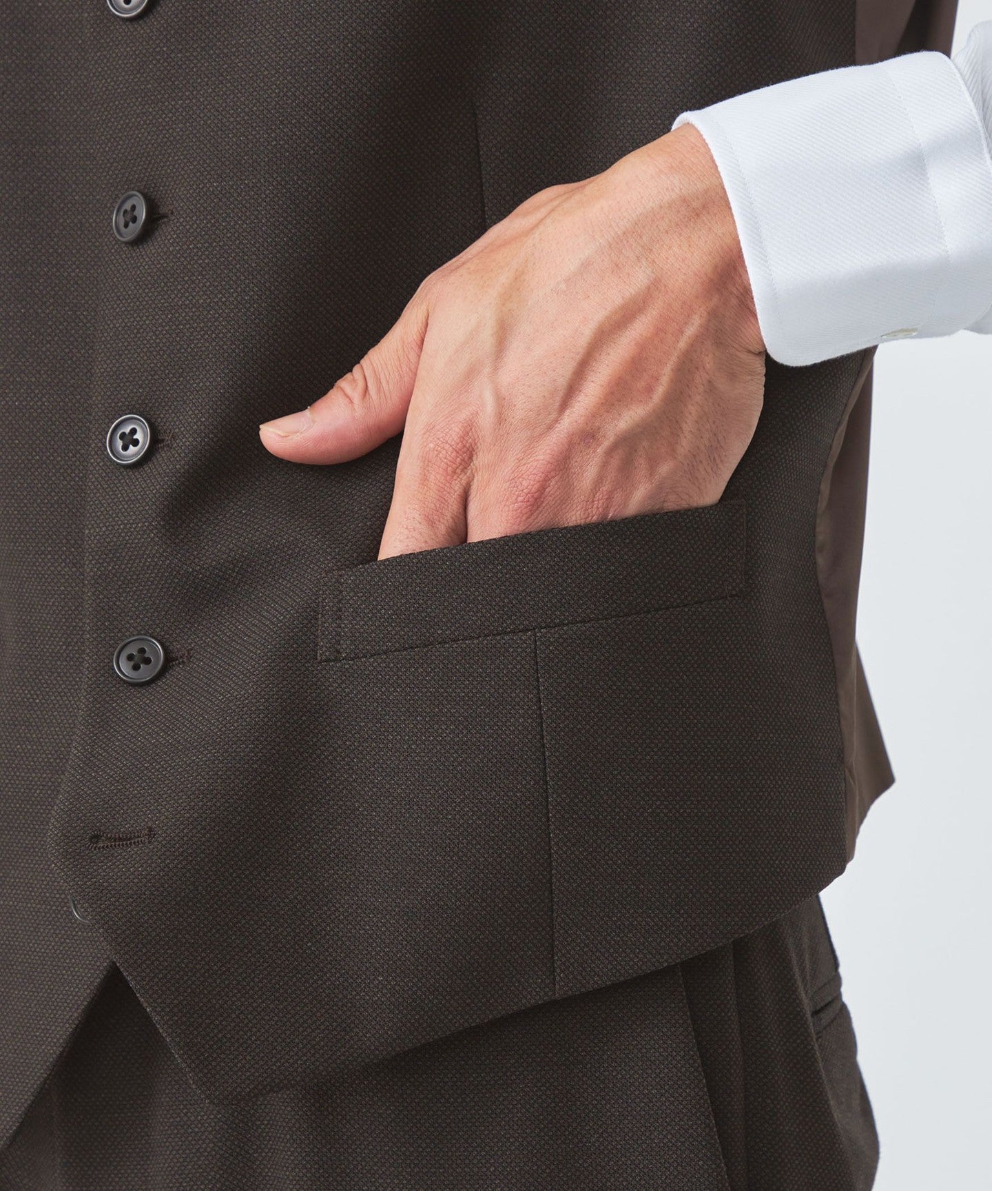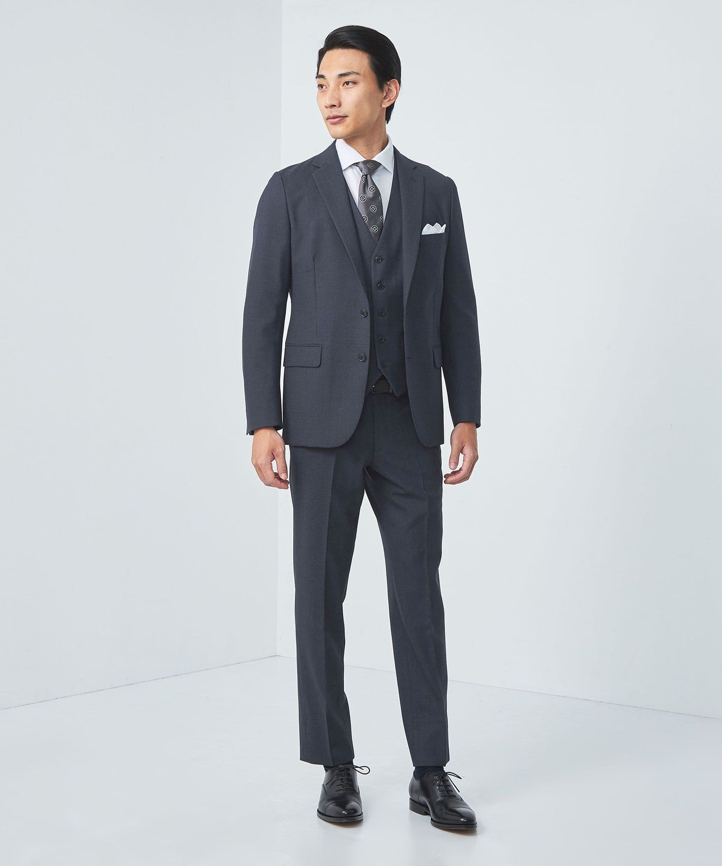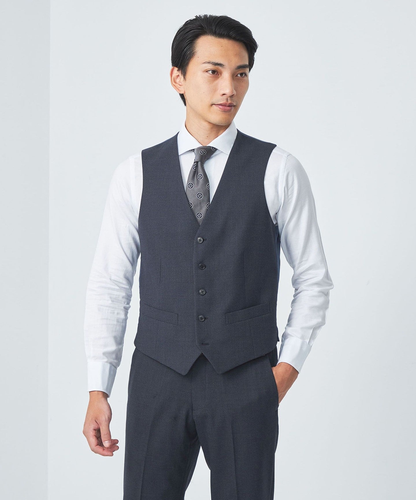 We recommend a three-piece suit style with matching pants and jacket made from the same material.