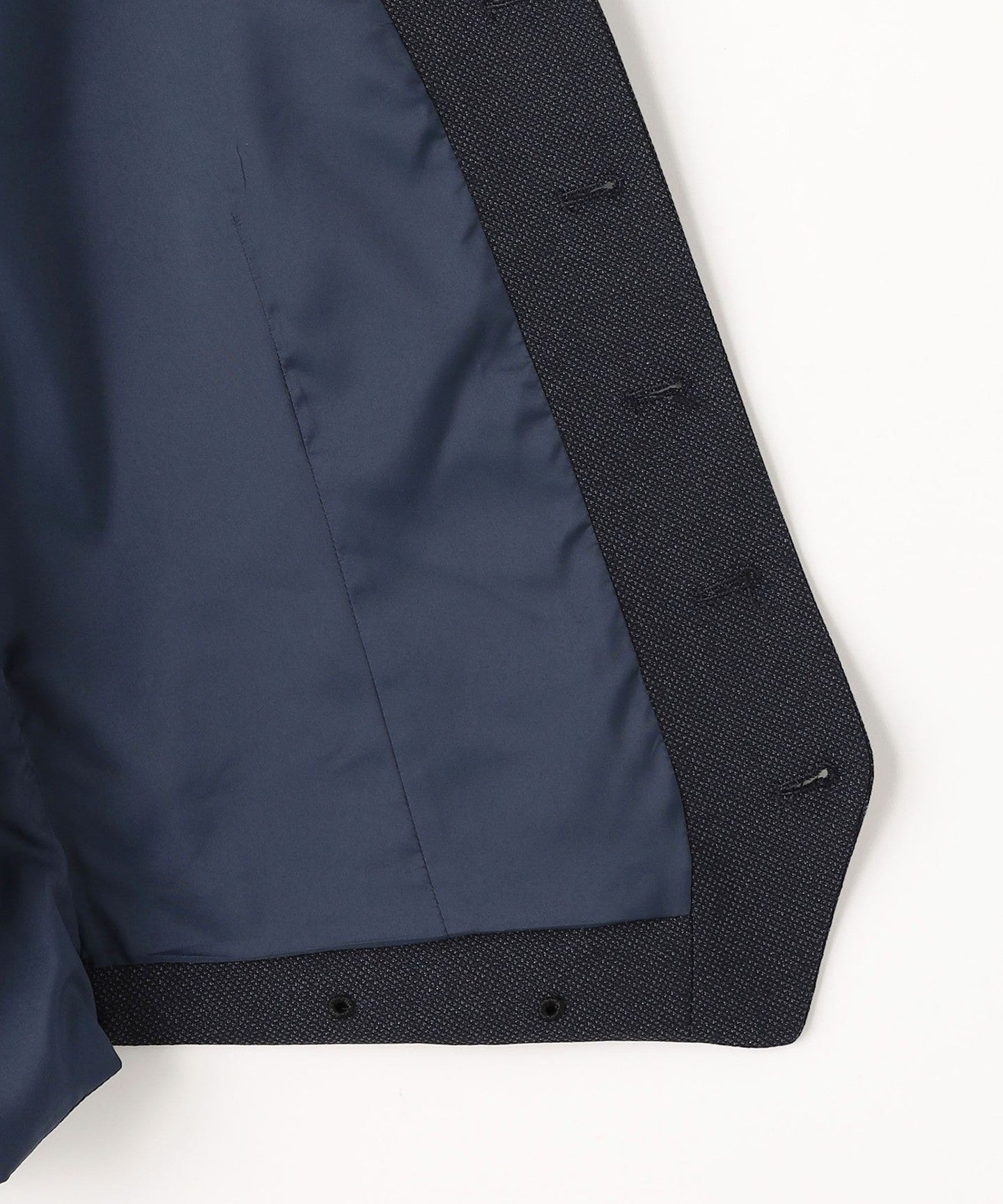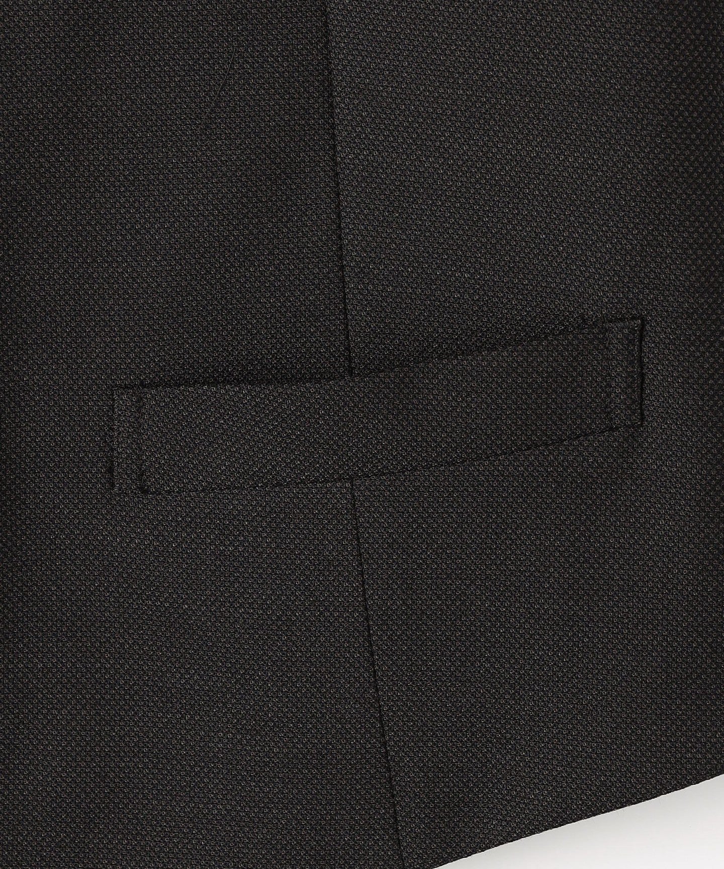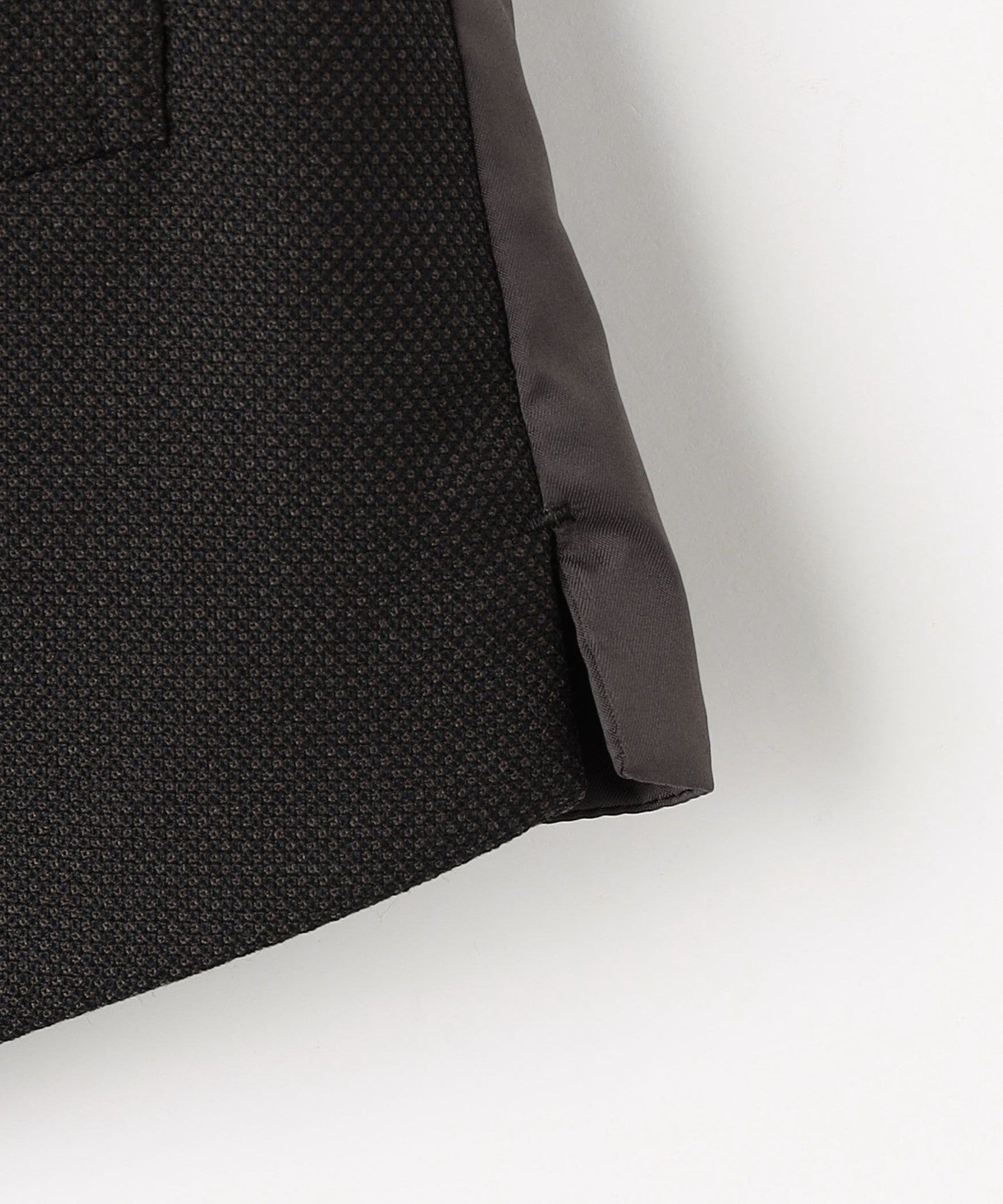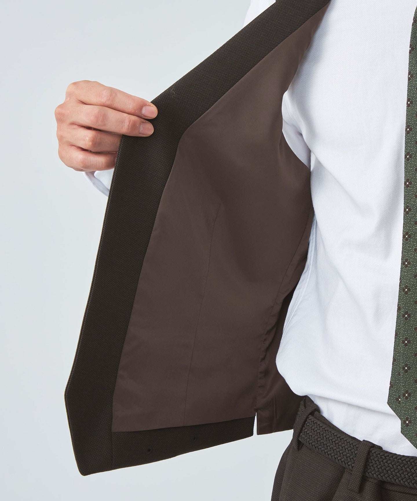 Birdseye fabric with a heathered texture made from polyester, wool, and polyurethane.