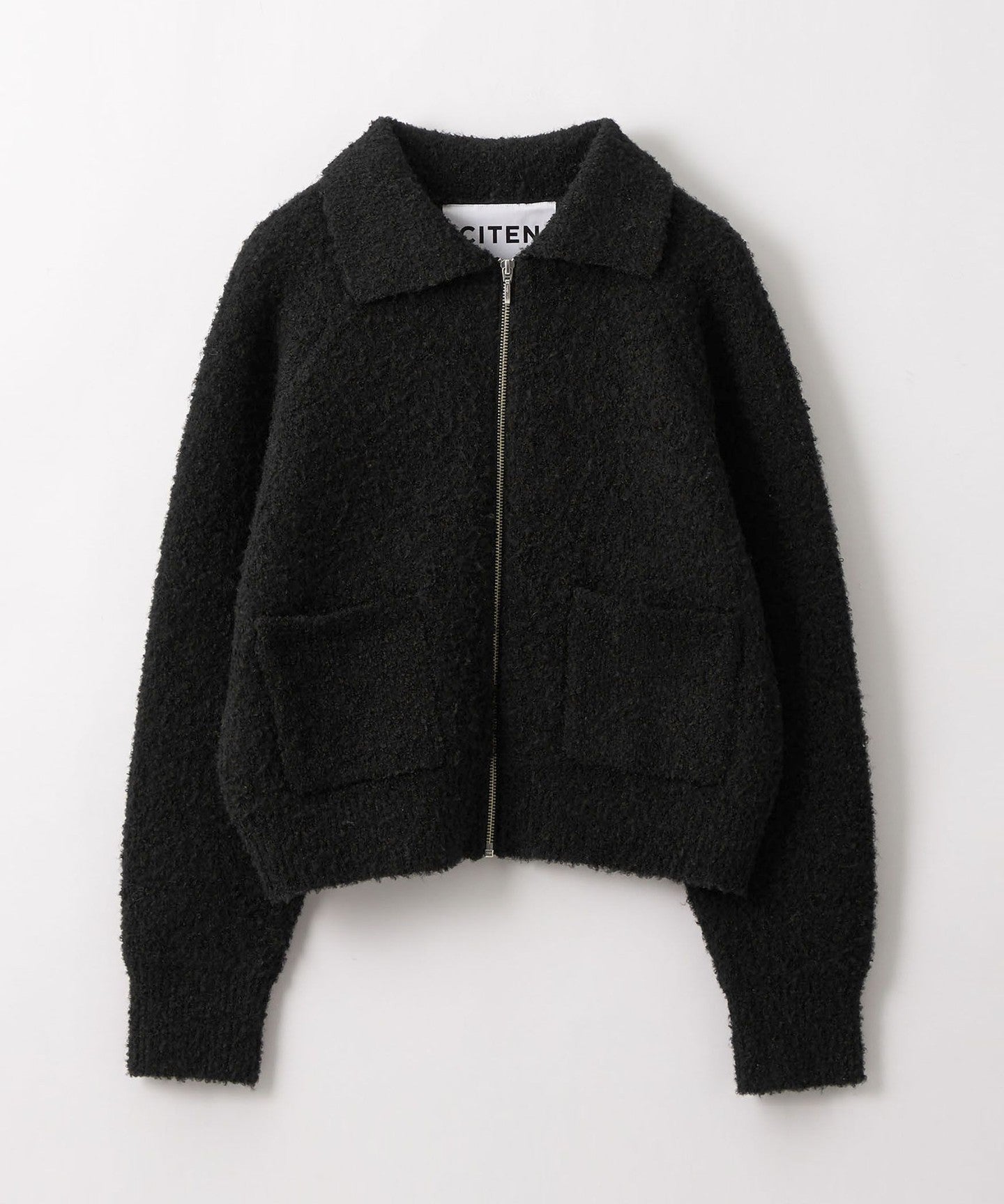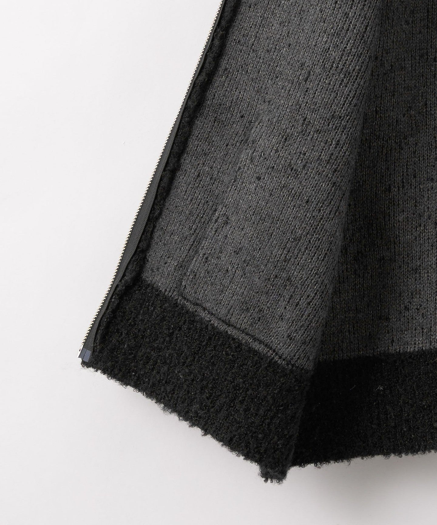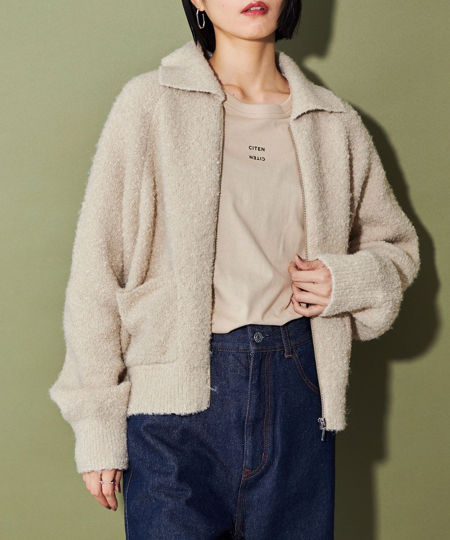 It is knitted in double phases using textured boucle yarn and straight yarn, so it is thick and the warm texture of the boucle is a highlight.