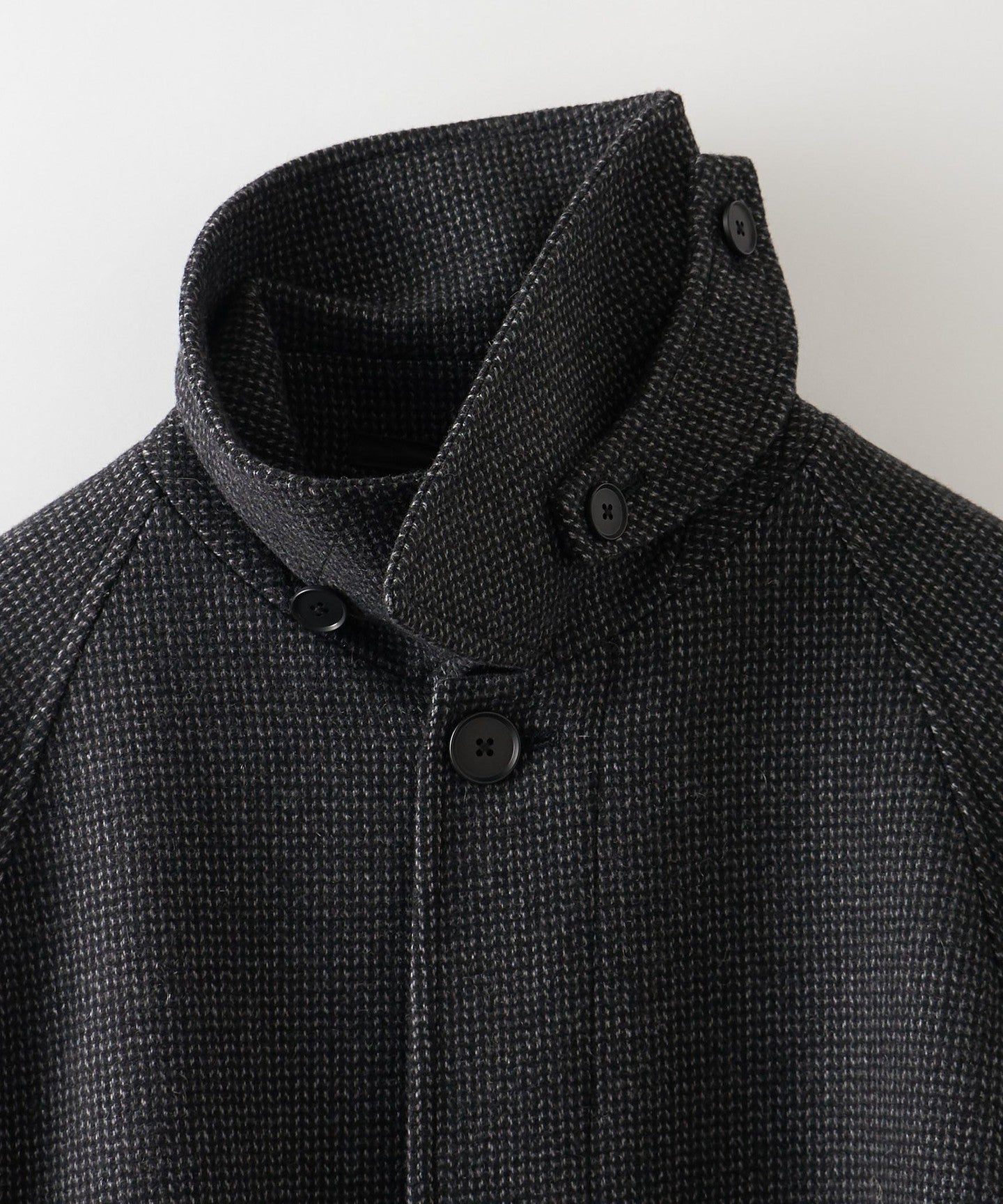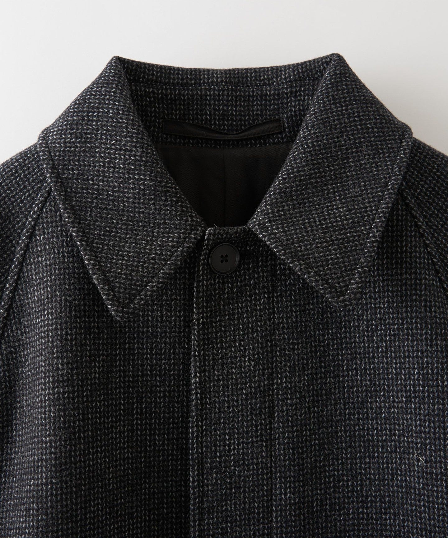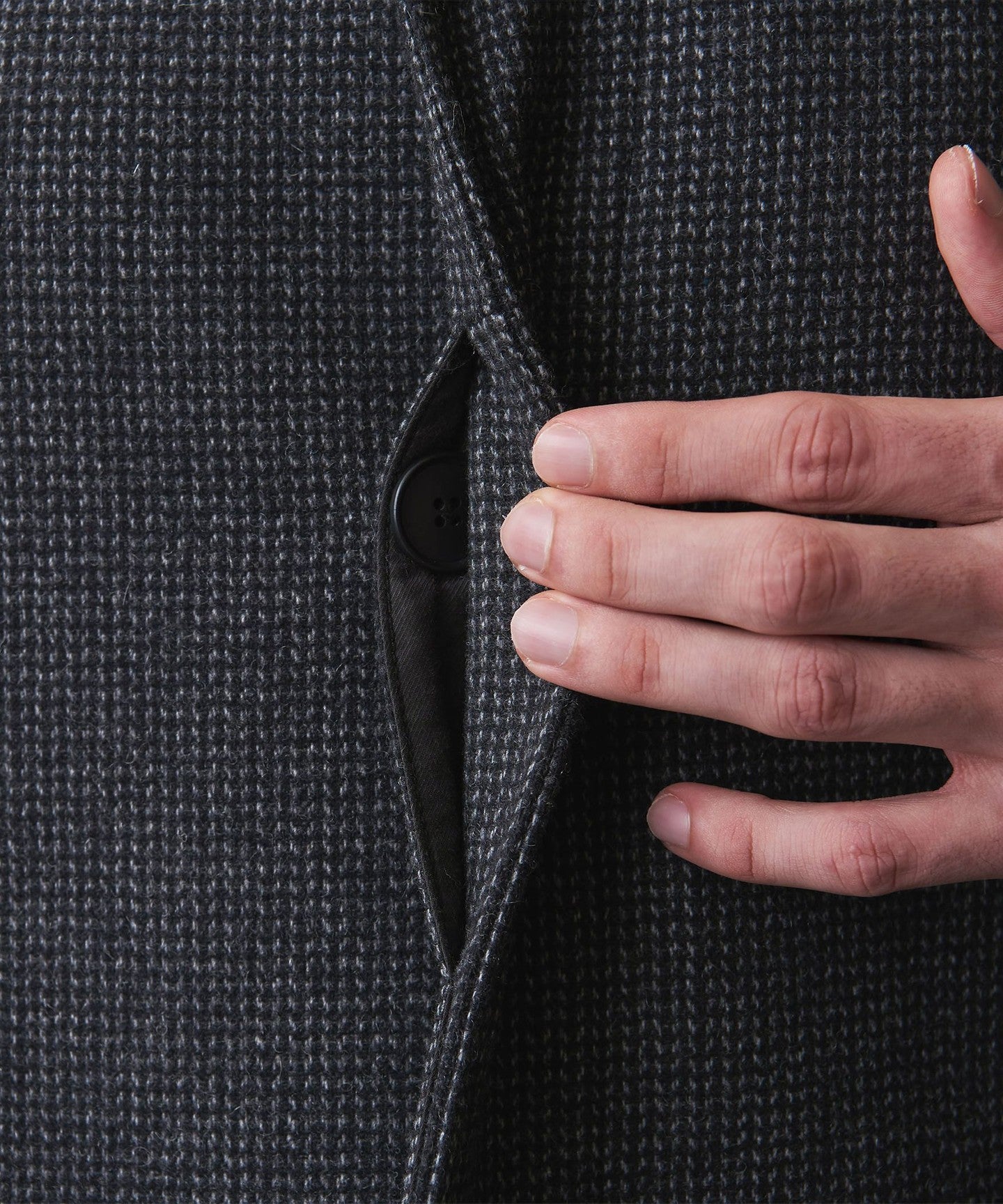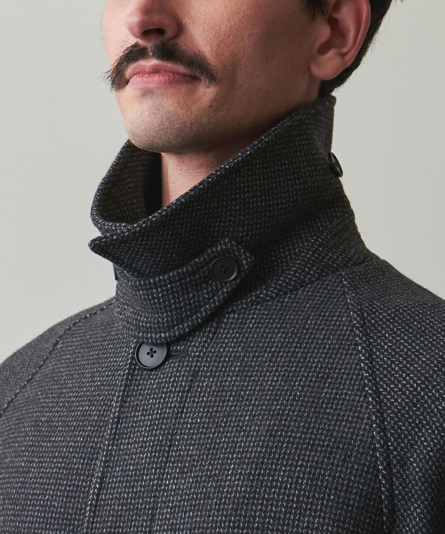 The soft tweed material is made from a catfoot weave of thick wool blend yarn from Italian textile manufacturer Manifattula Paola.