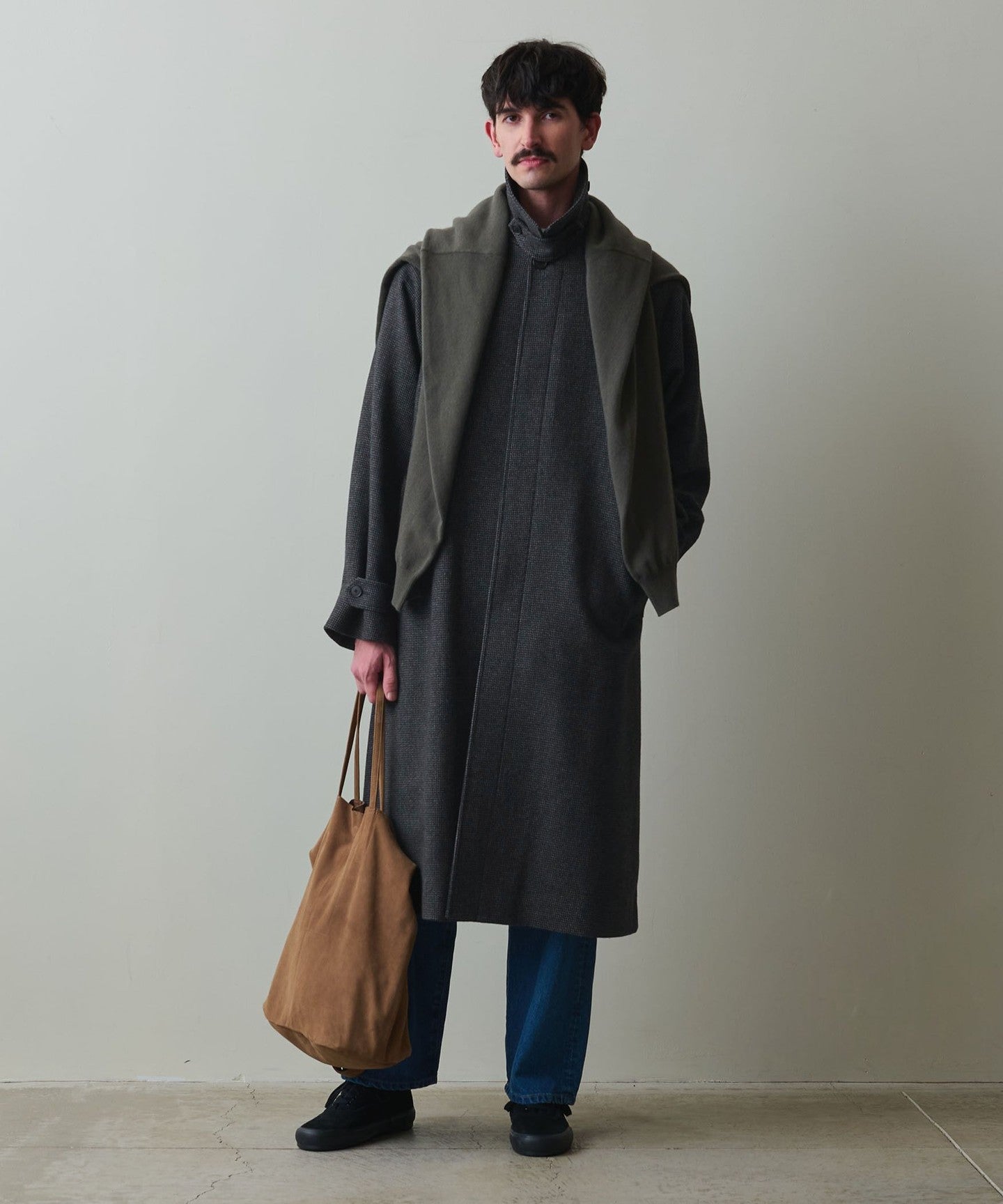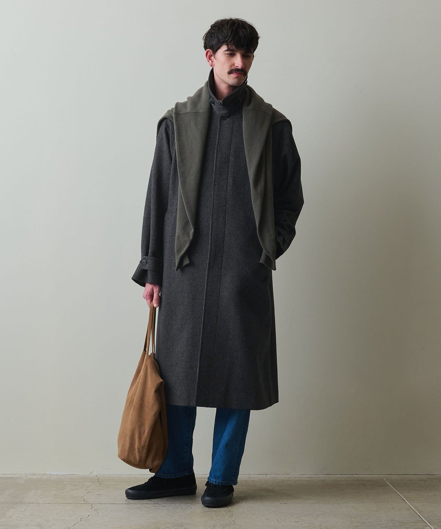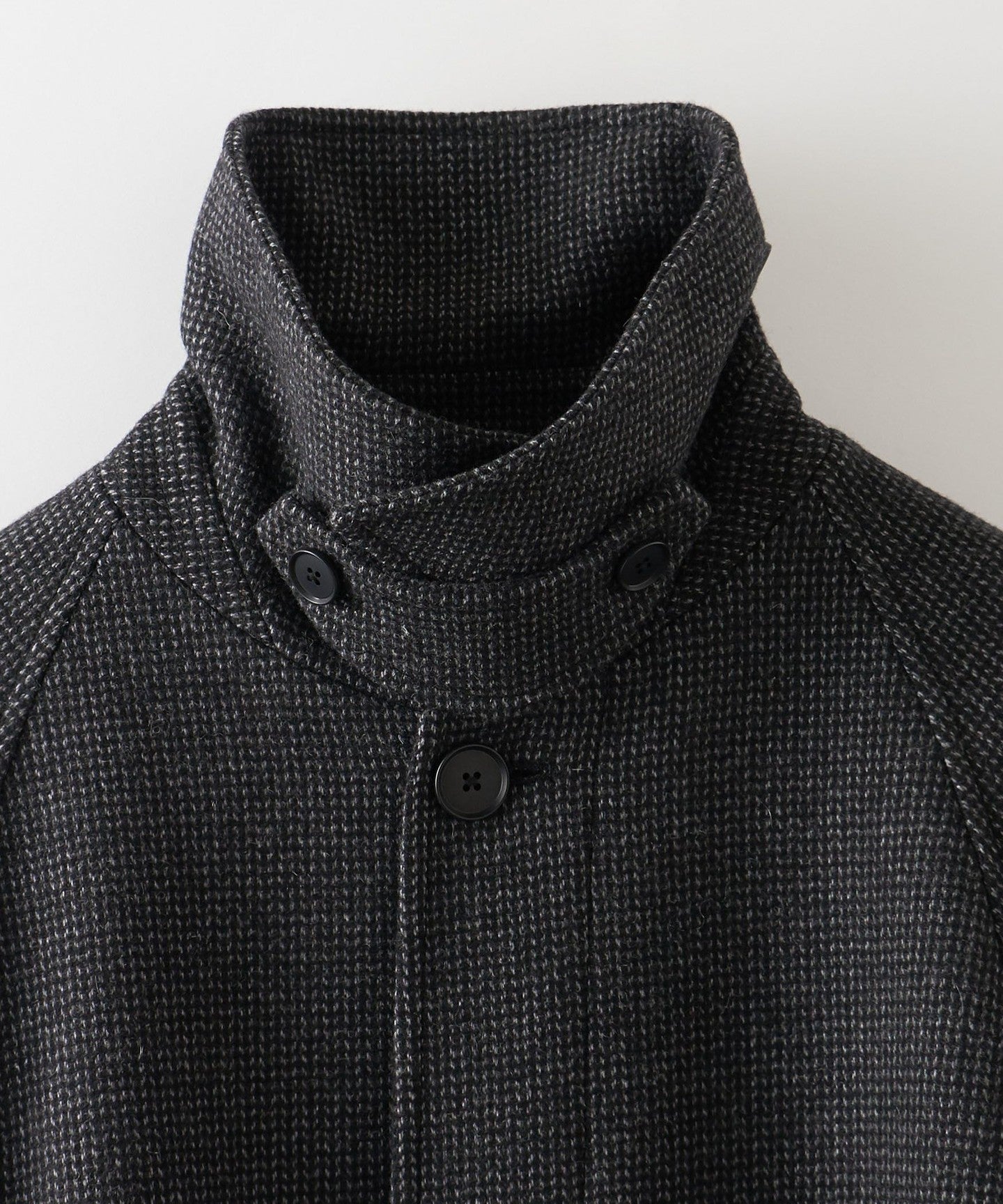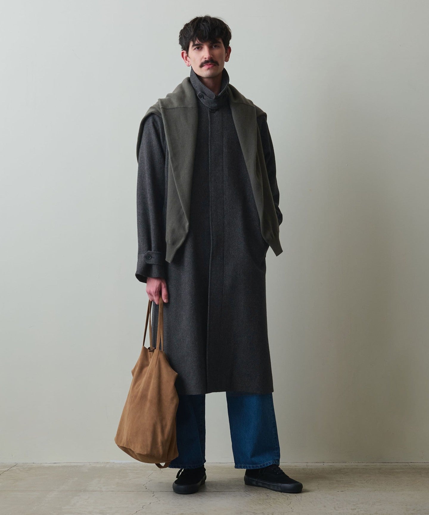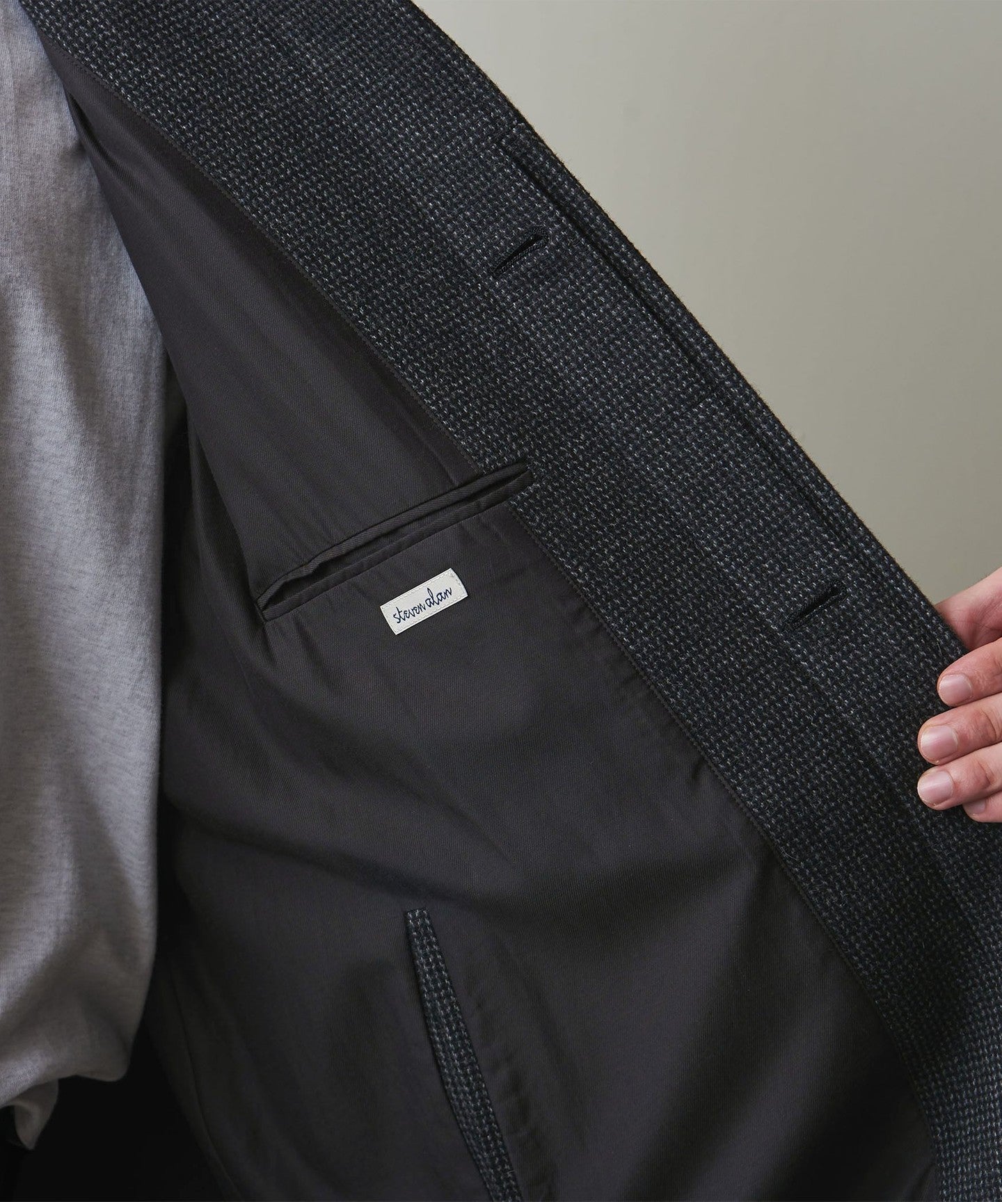 The soft tweed material is made from a catfoot weave of thick wool blend yarn from Italian textile manufacturer Manifattula Paola.