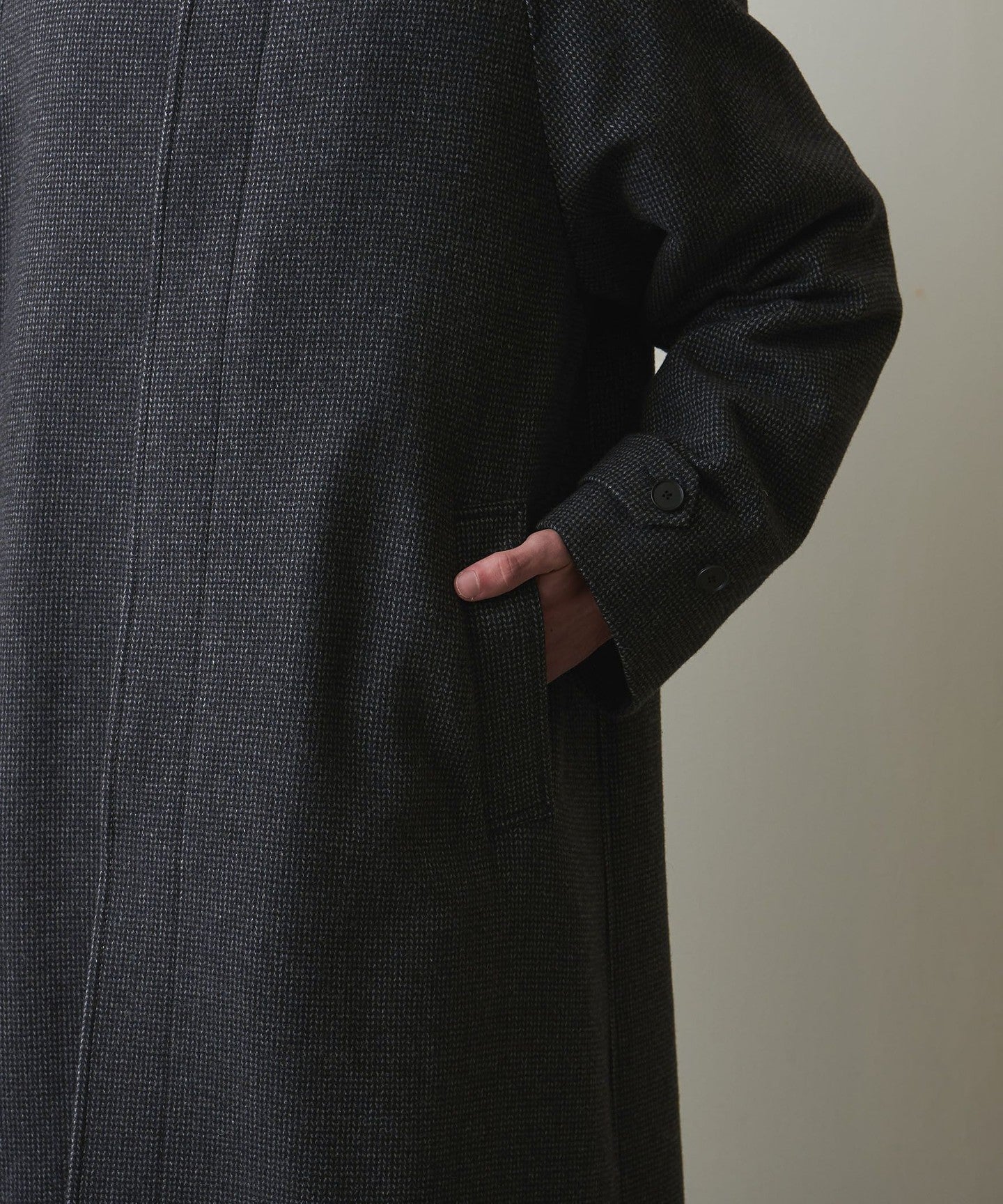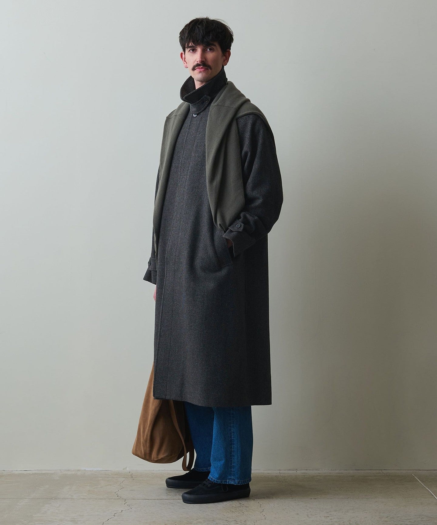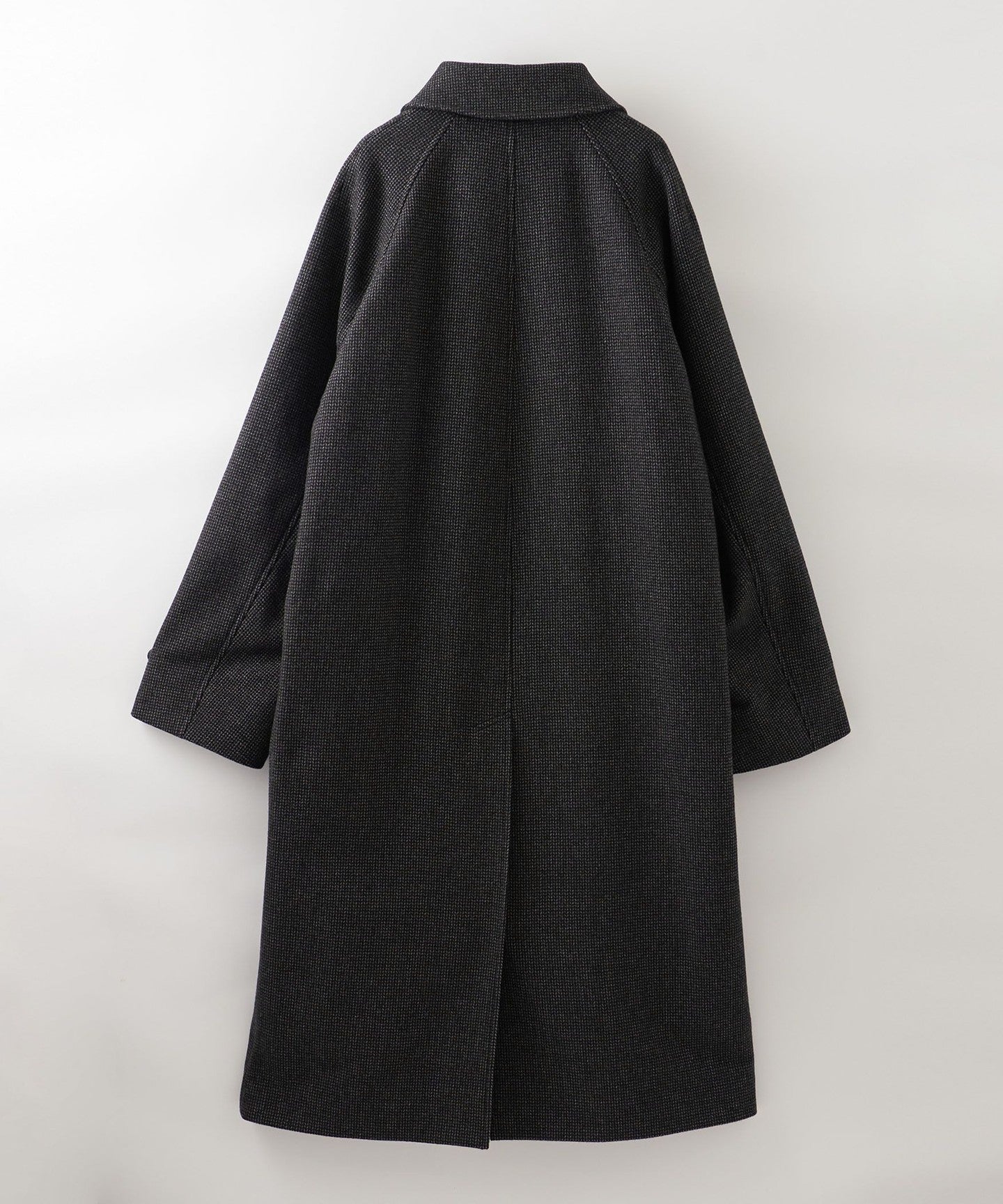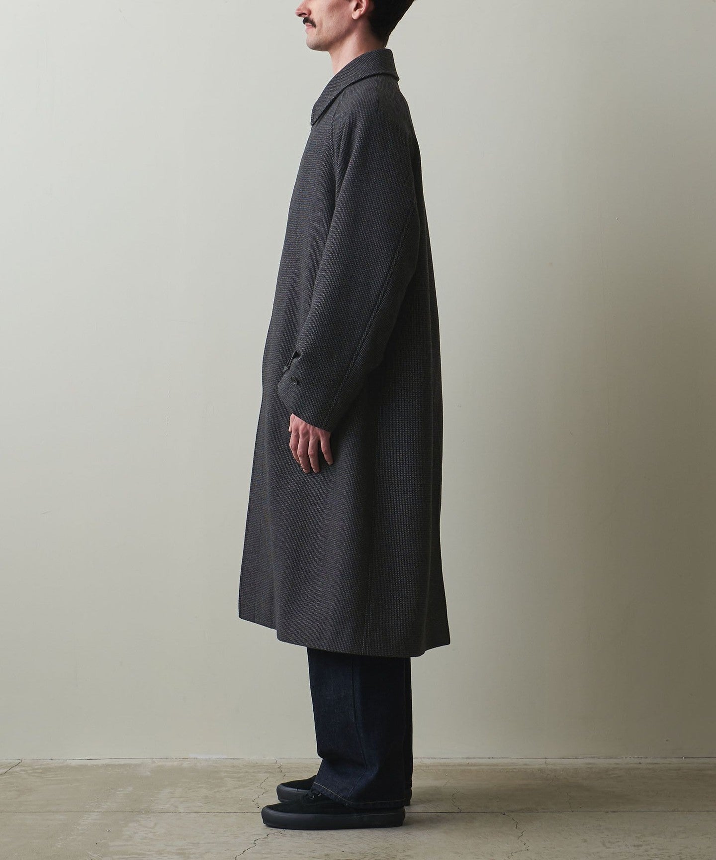 The soft tweed material is made from a catfoot weave of thick wool blend yarn from Italian textile manufacturer Manifattula Paola.