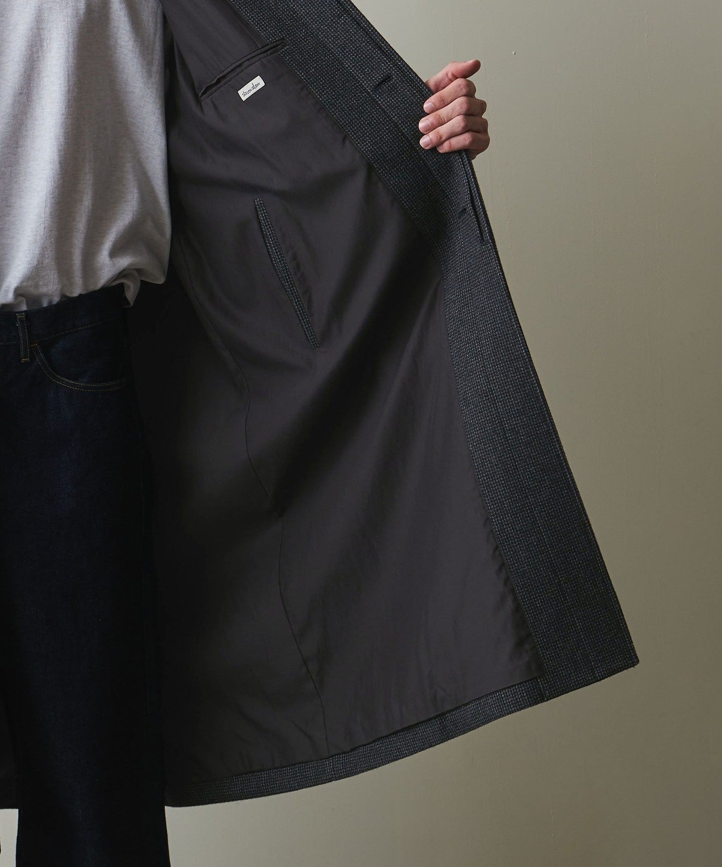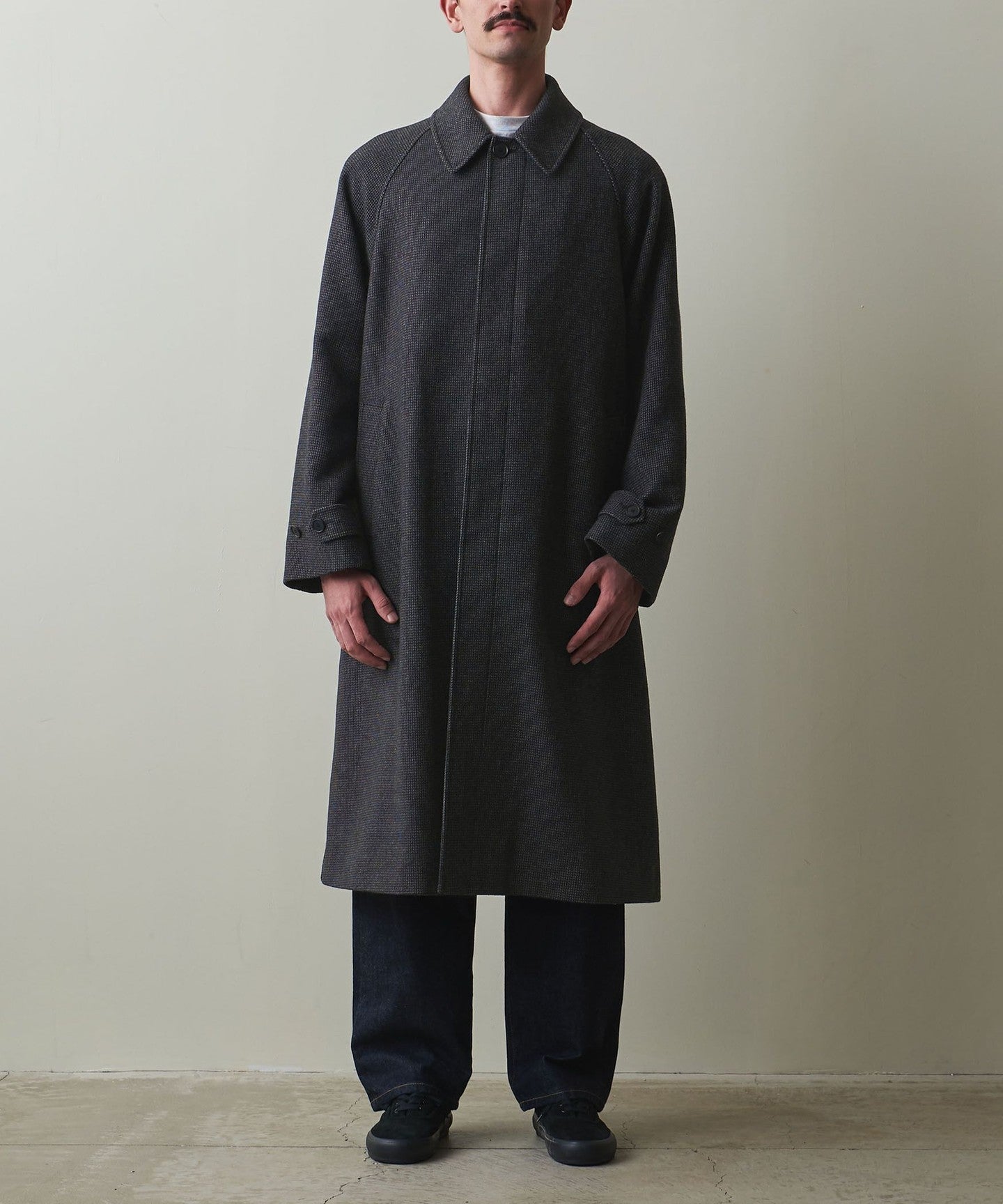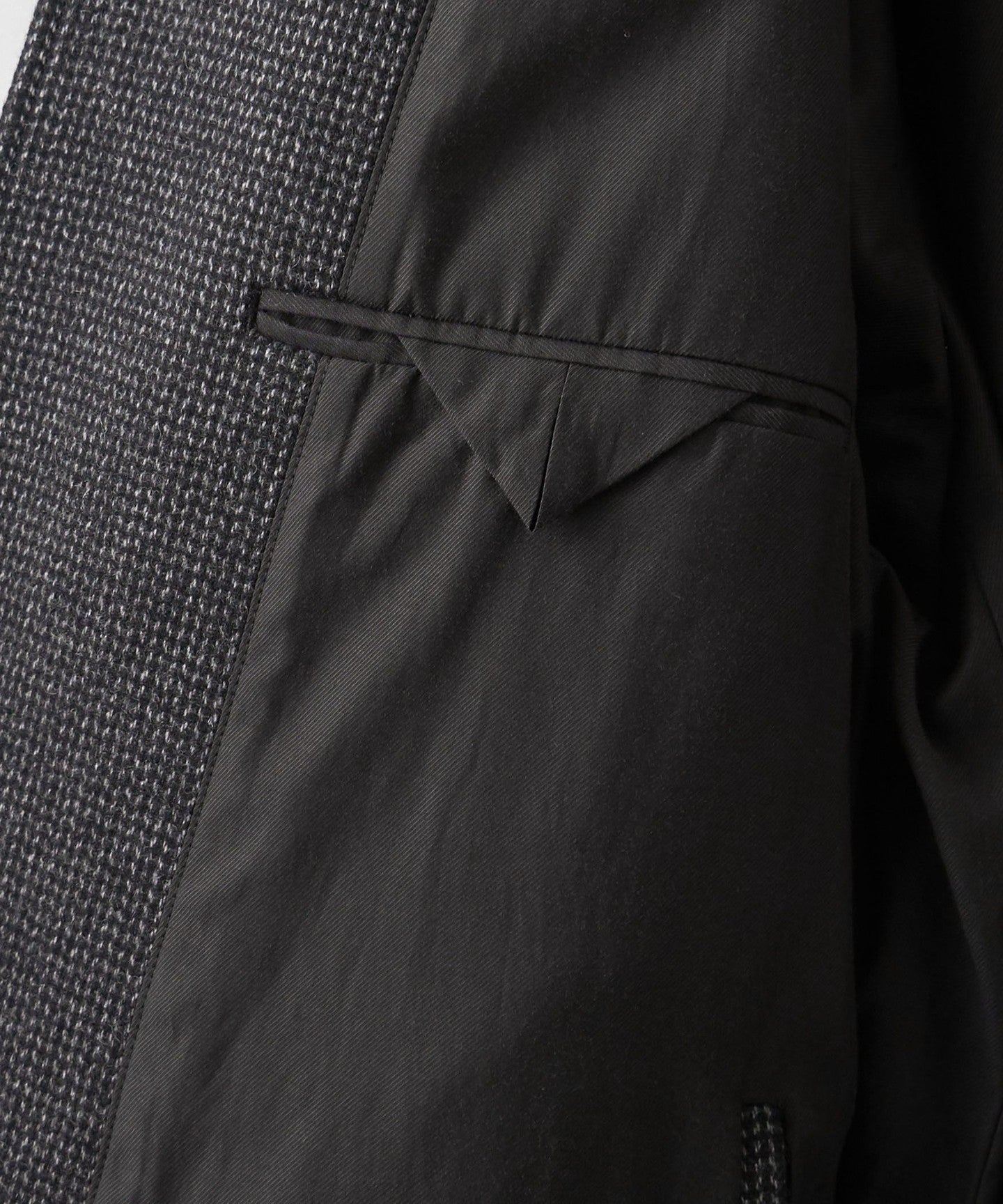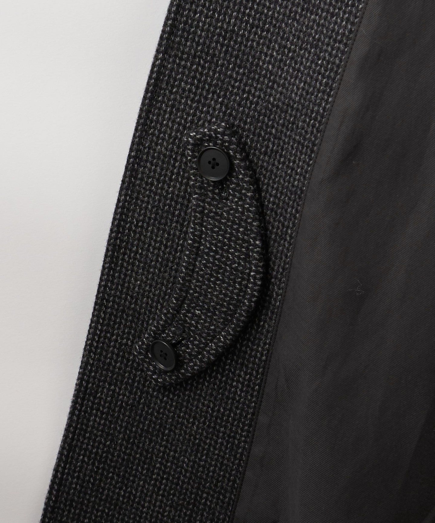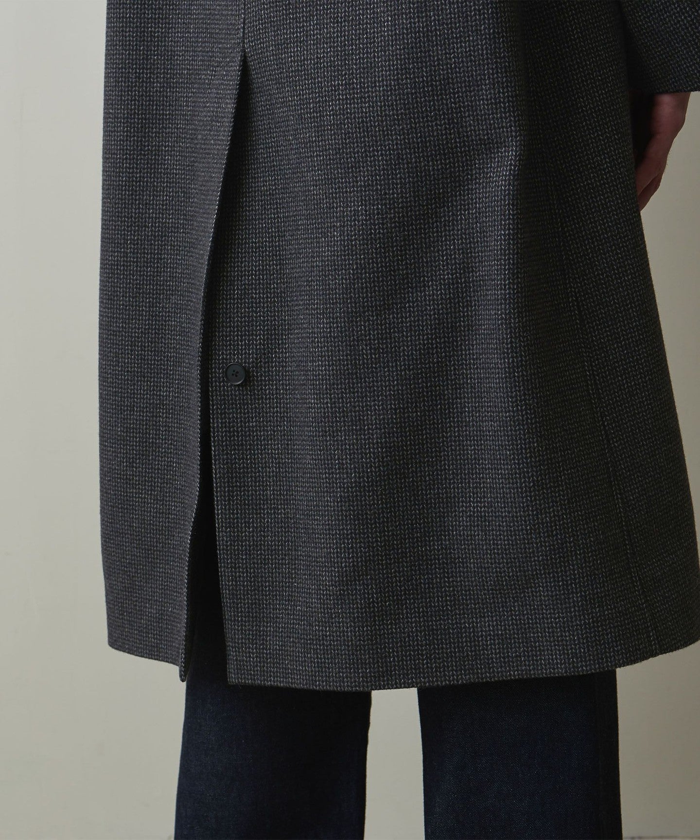 The soft tweed material is made from a catfoot weave of thick wool blend yarn from Italian textile manufacturer Manifattula Paola.