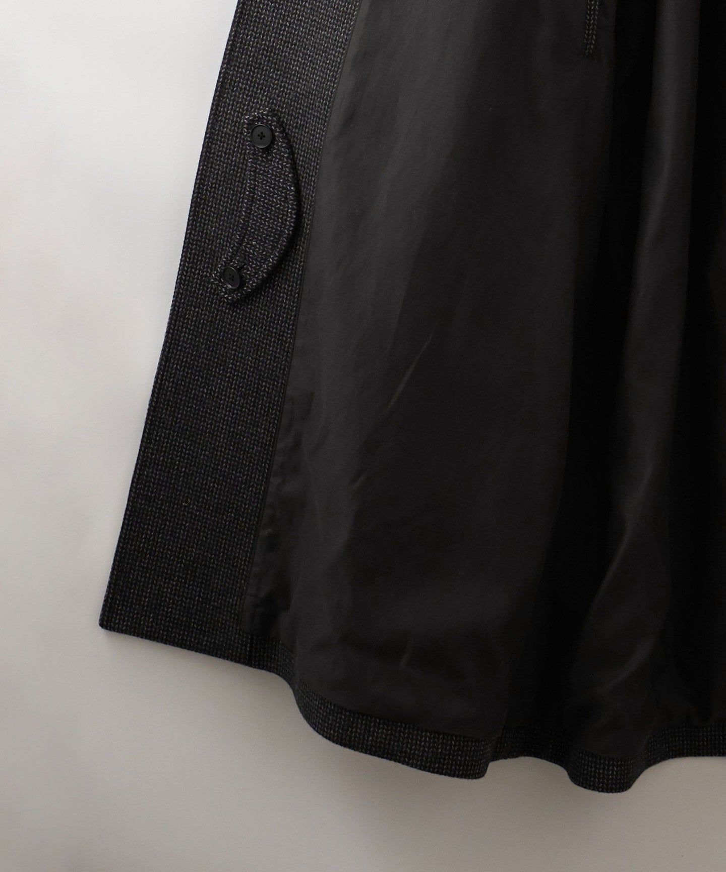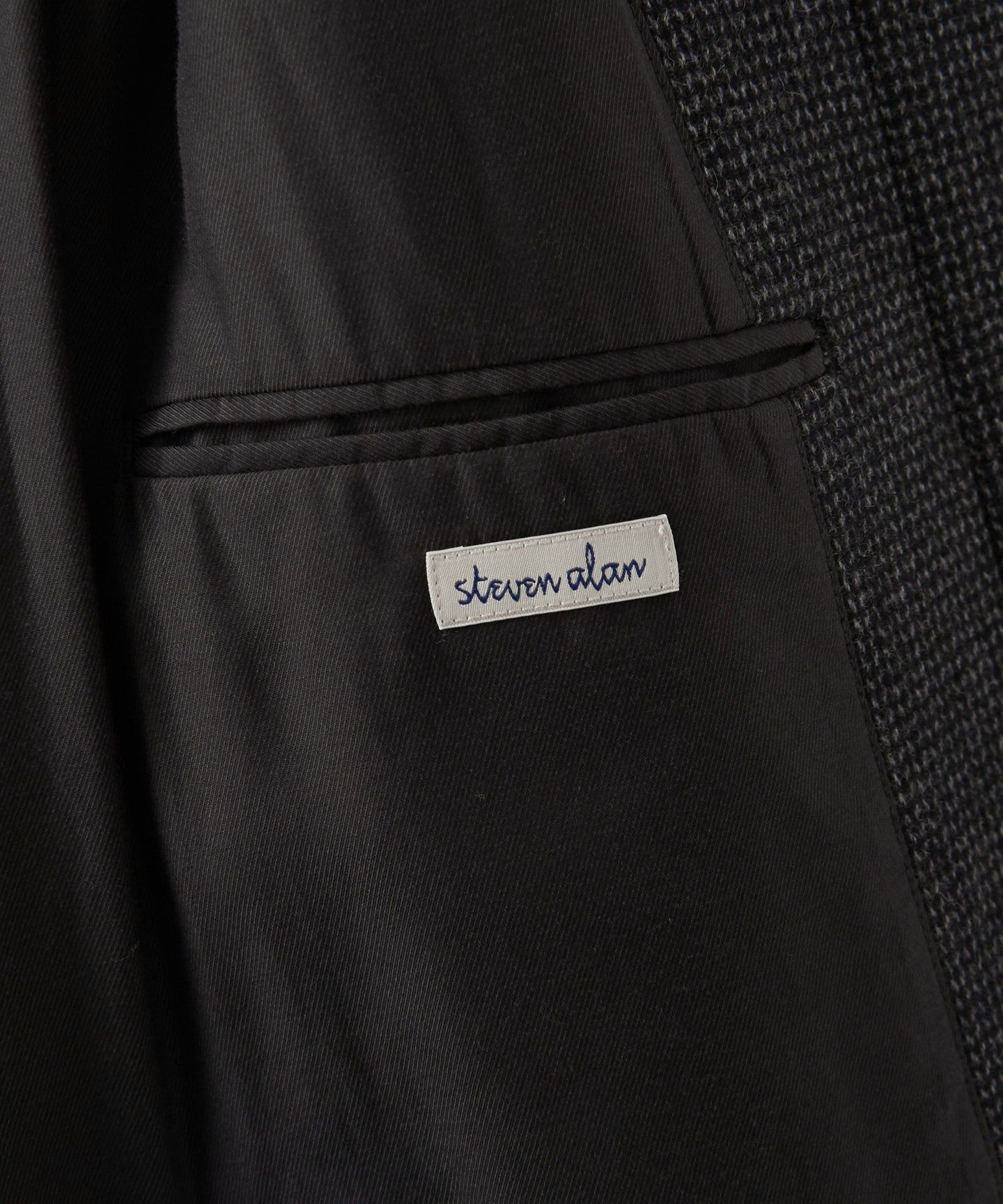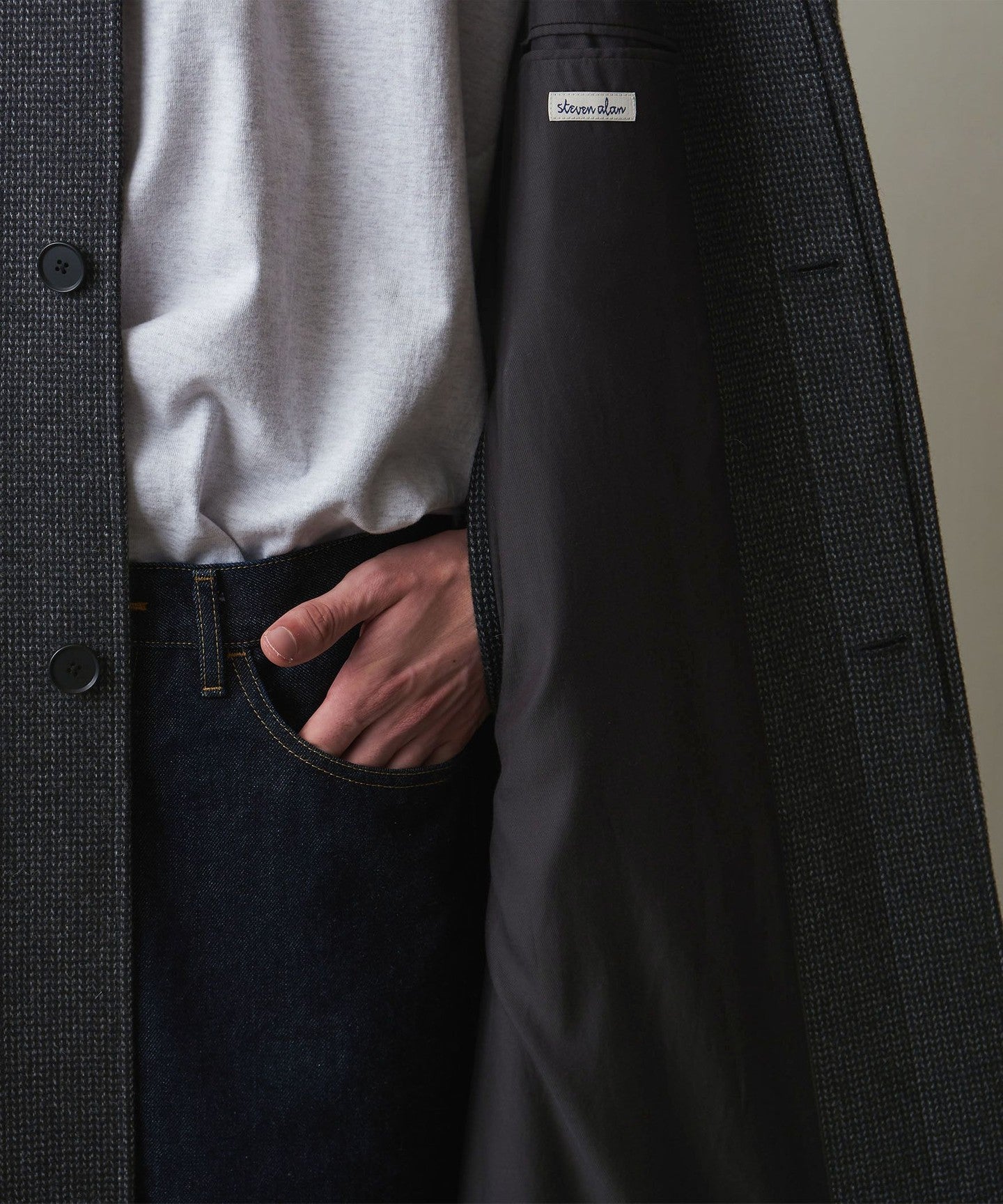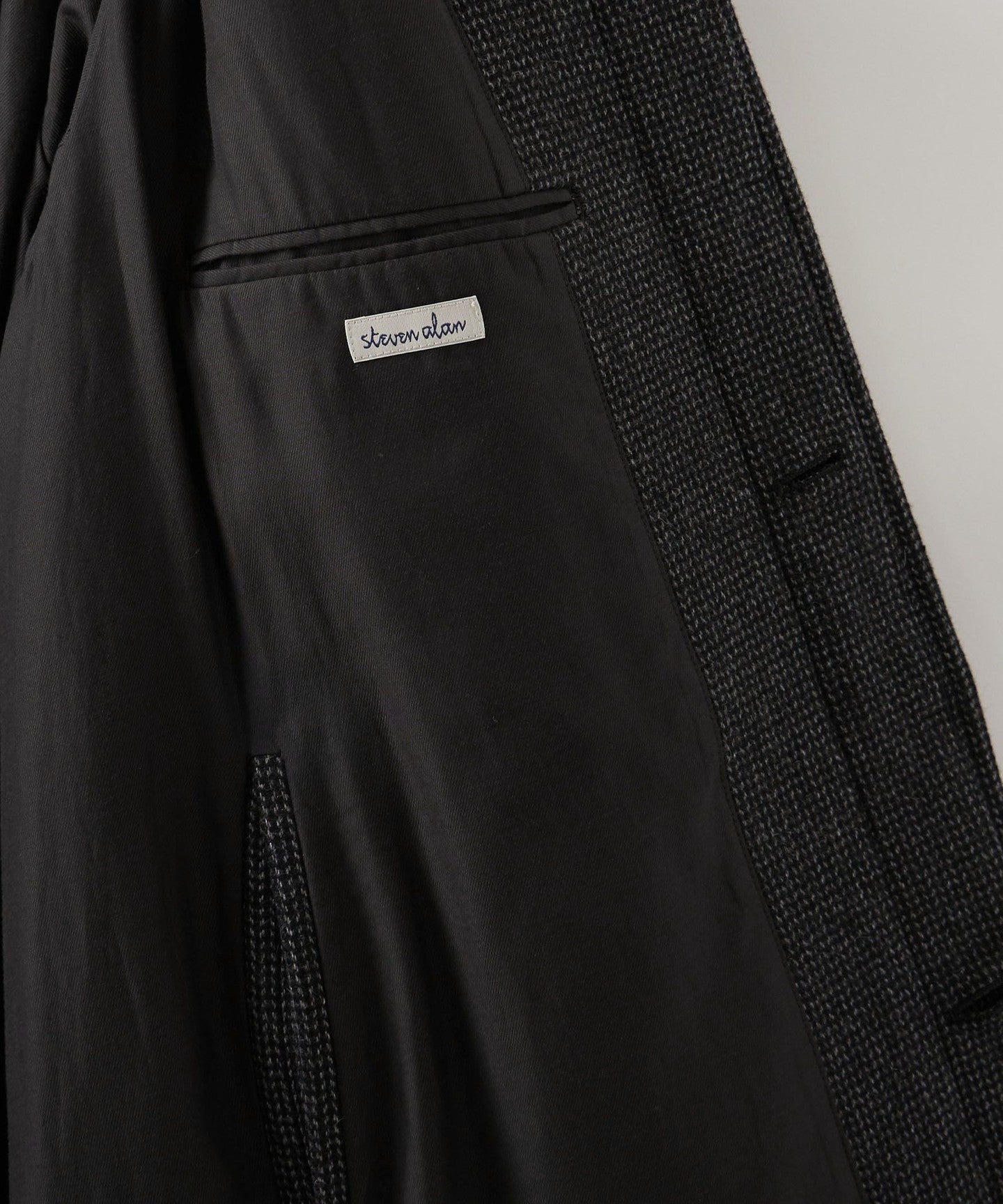 The soft tweed material is made from a catfoot weave of thick wool blend yarn from Italian textile manufacturer Manifattula Paola.